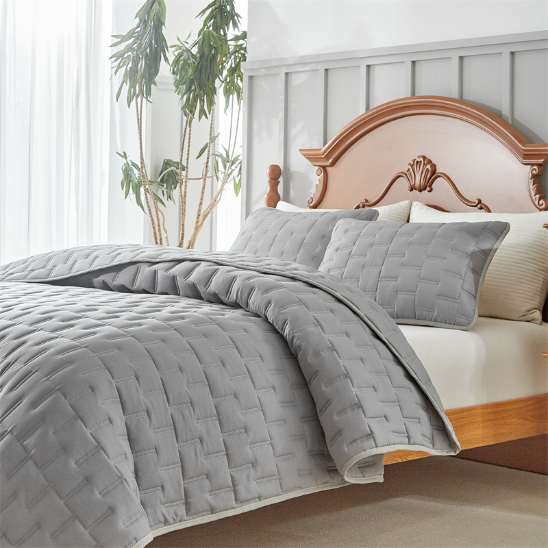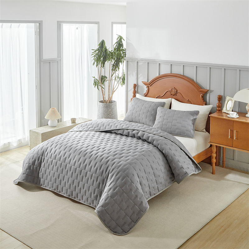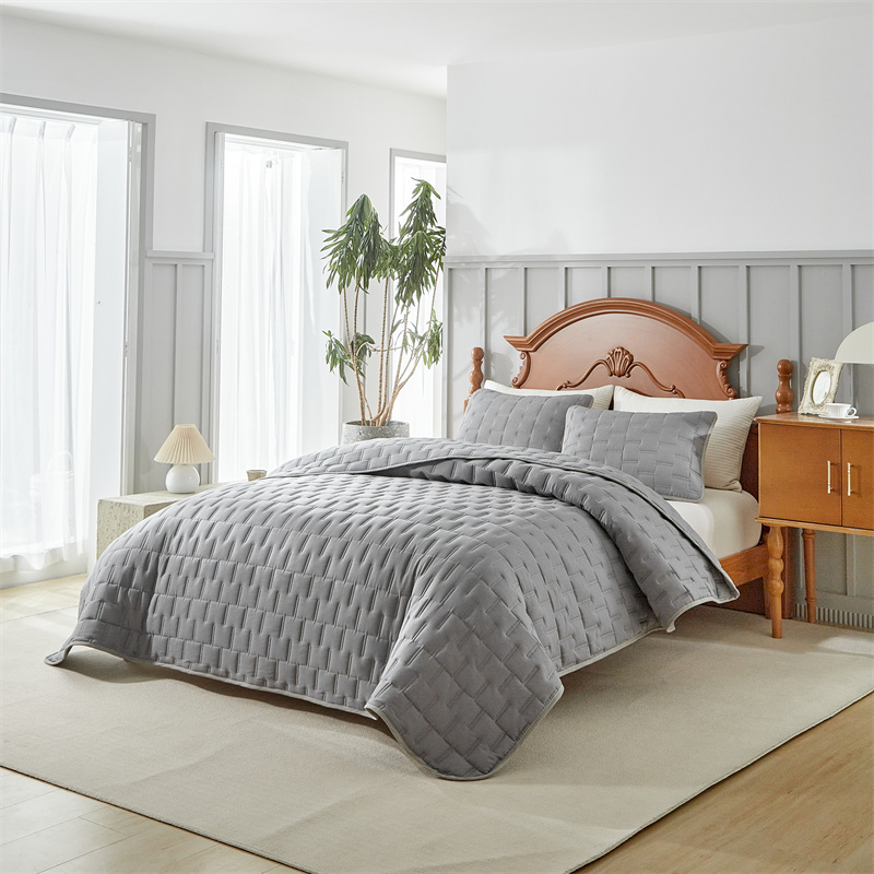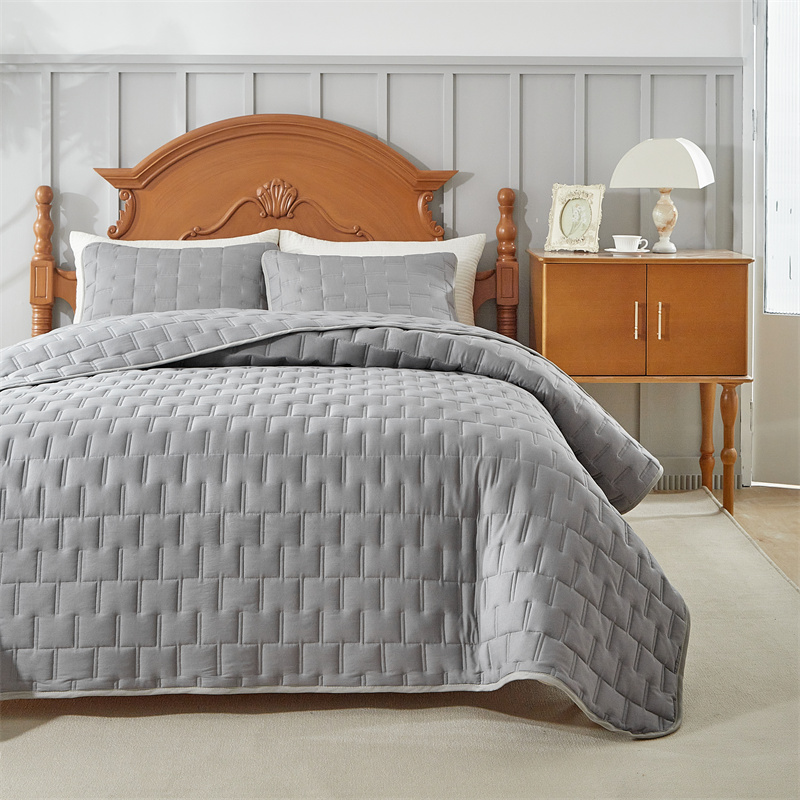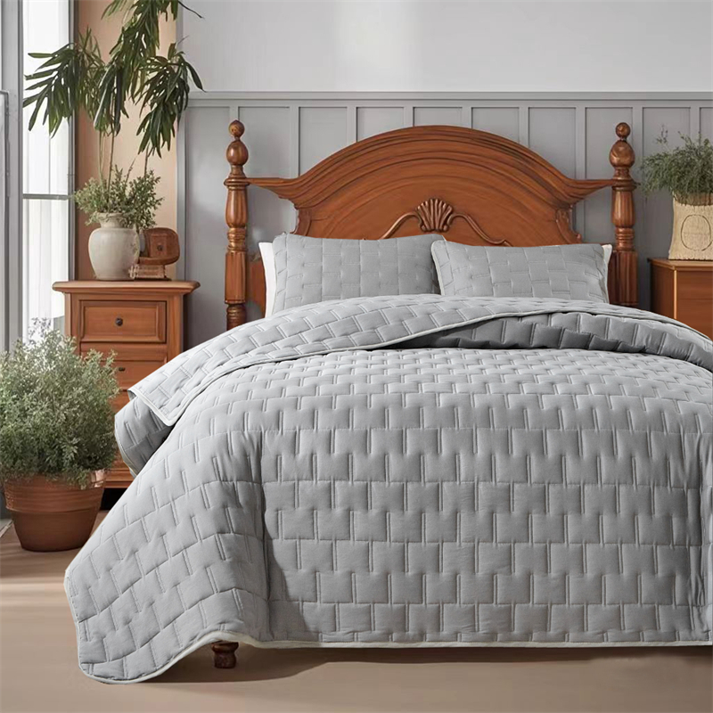 商品名称:温宁2025新款 跨境外贸专供山字格床盖 银灰