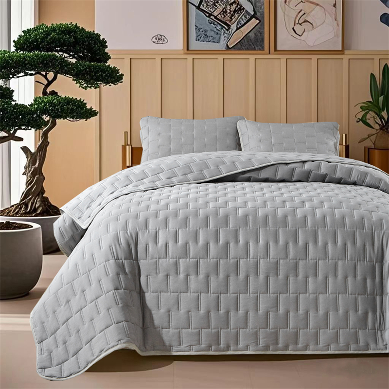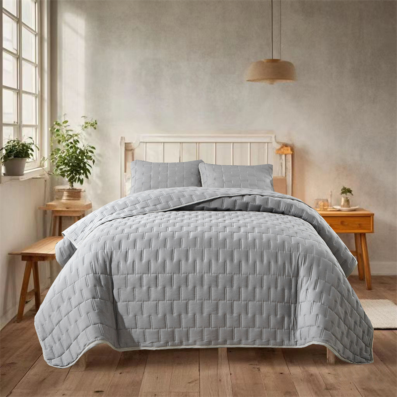 温宁2025新款 跨境外贸专供山字格床盖 银灰