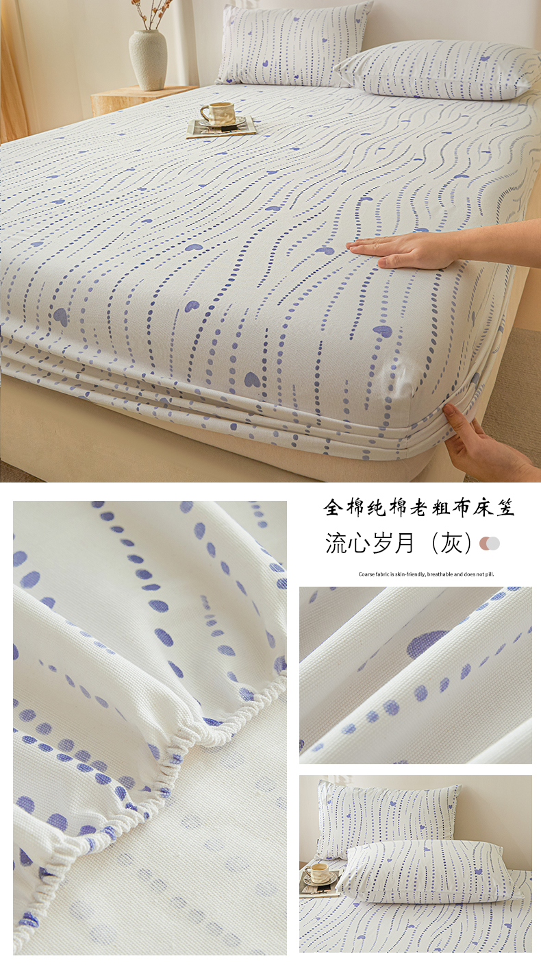 鑫钰2025新款纯棉全棉老粗布床笠--北欧风 胡里奥(灰)