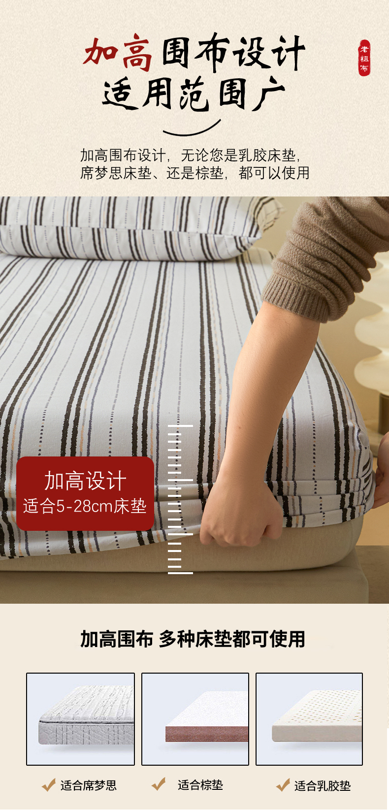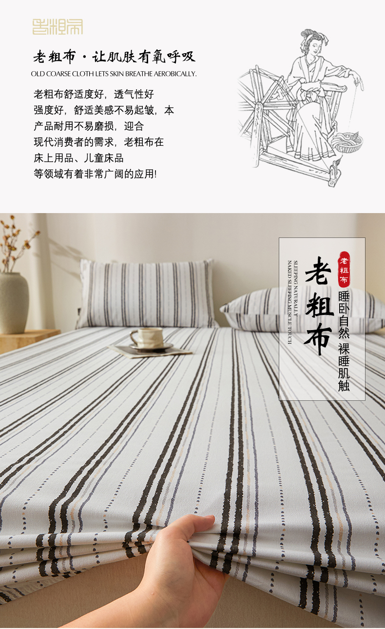 • 91家纺网 家纺一手货源 找家纺 鑫钰2025新款纯棉全棉老粗布床笠--北欧风 胡里奥(灰)