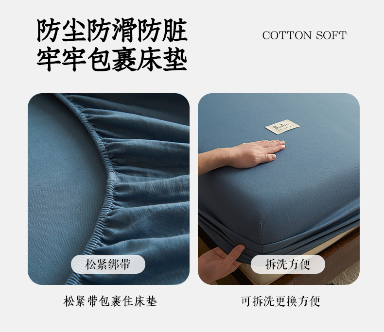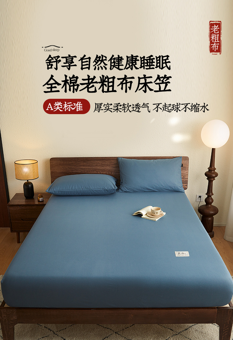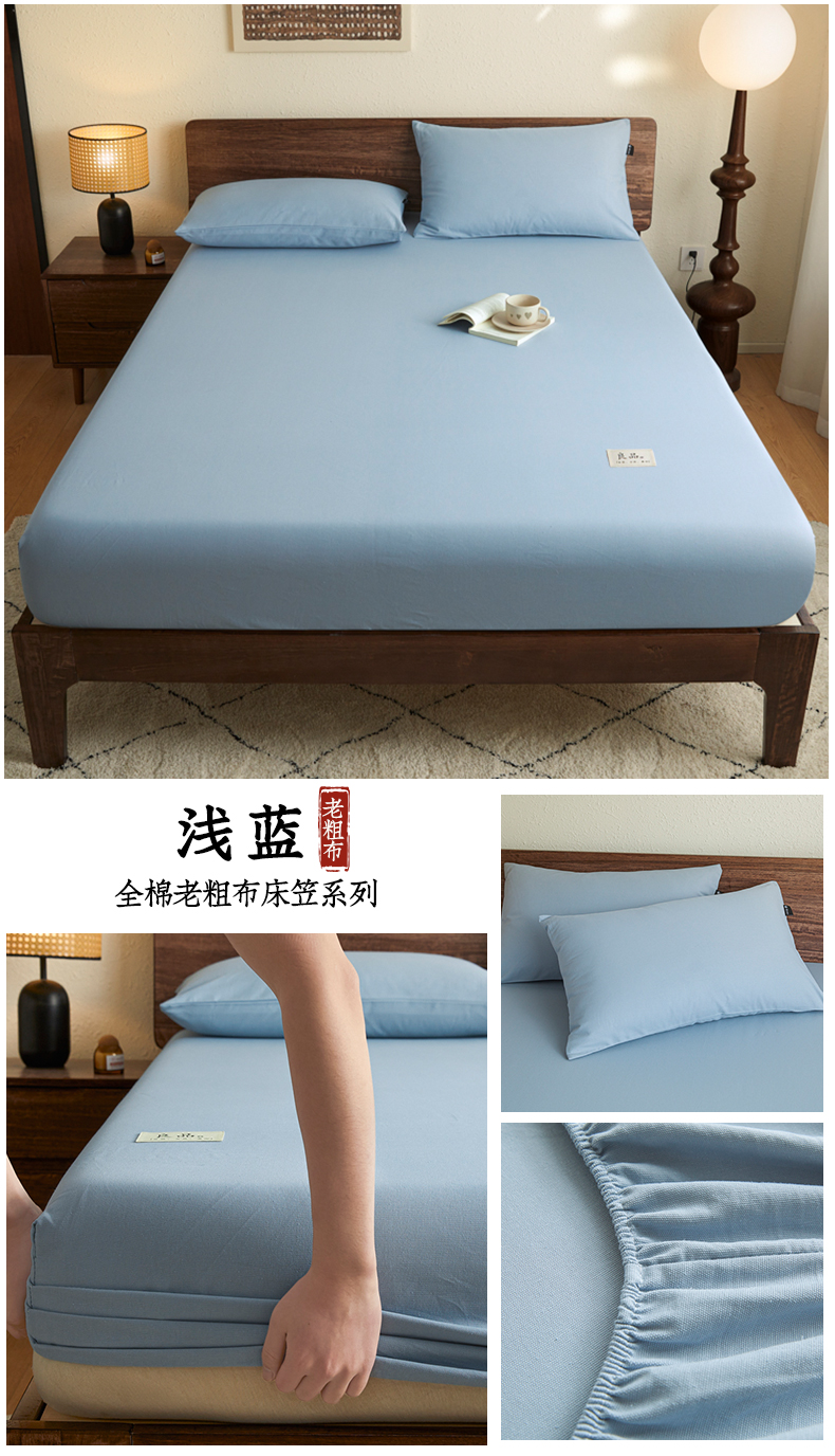 • 91家纺网 家纺一手货源 找家纺 鑫钰2025新款纯棉全棉老粗布床笠--LP纯色系列 宝蓝