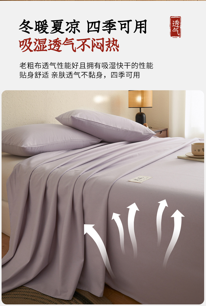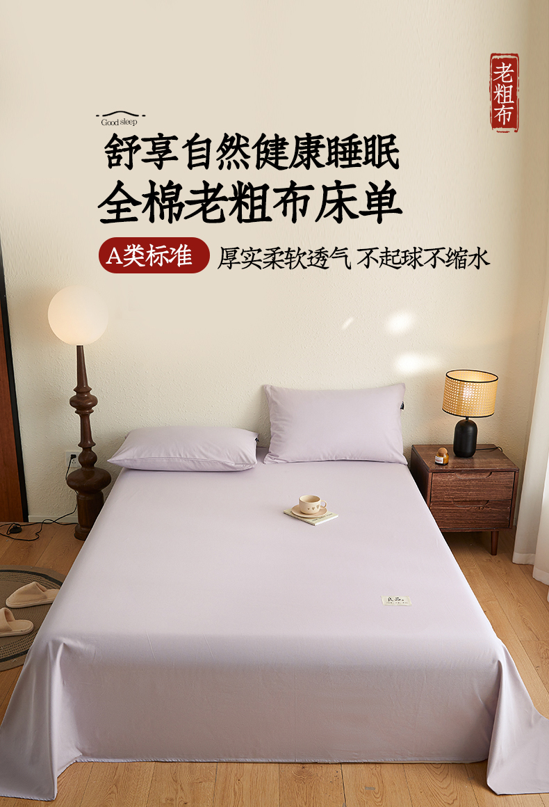 鑫钰2025新款纯棉全棉老粗布床单--LP纯色系列 黛紫