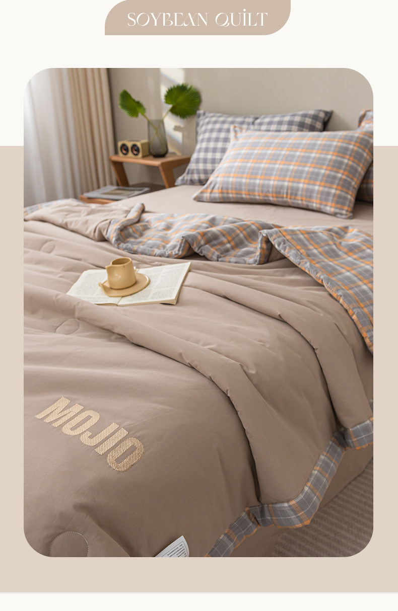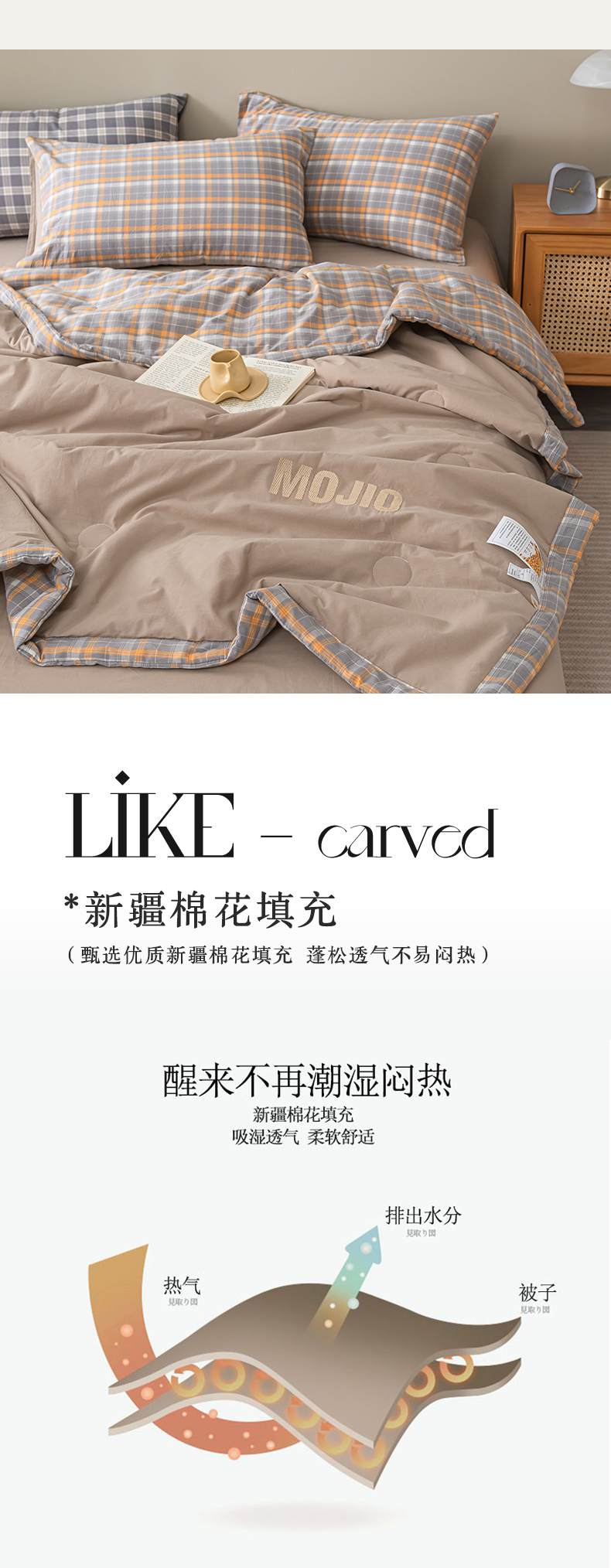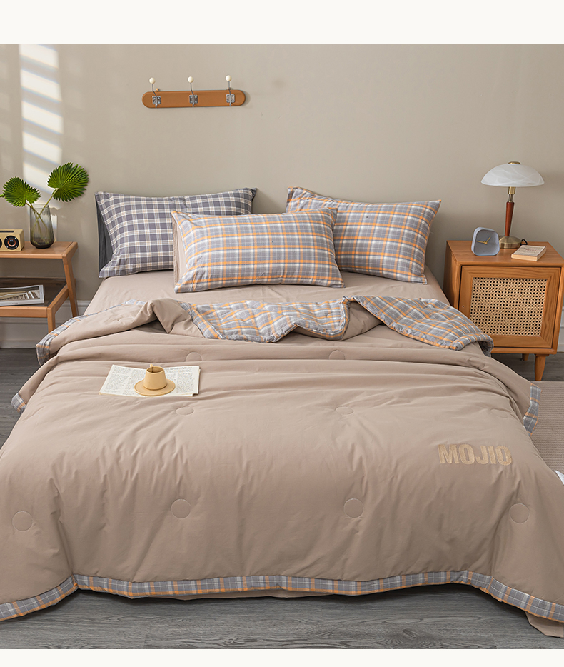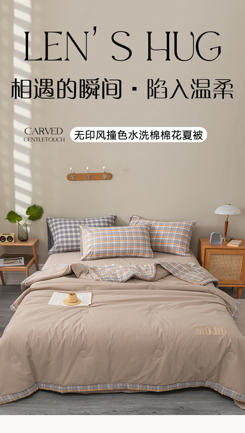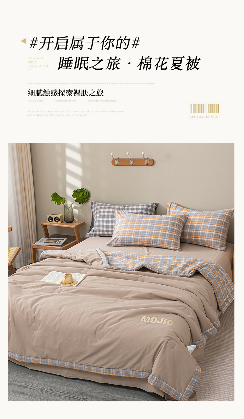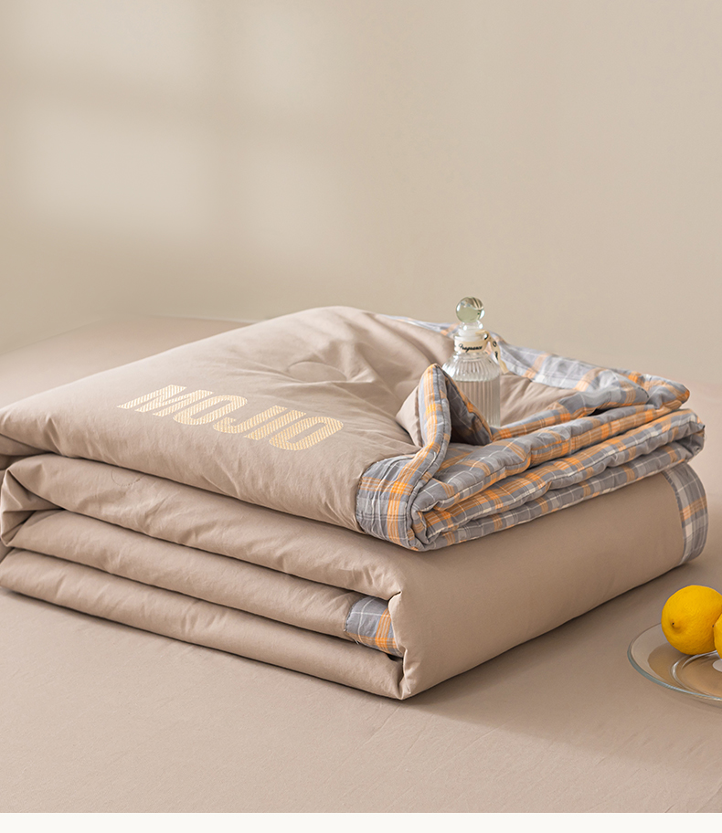 商品名称:水云缦2025新款字母烫画无印风50%棉花被(填充100克每平方) 卡其色