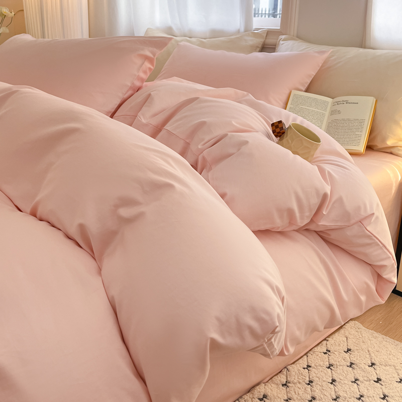 耀悦家纺 2025新款A类纯棉60支拼色四件套 少女粉