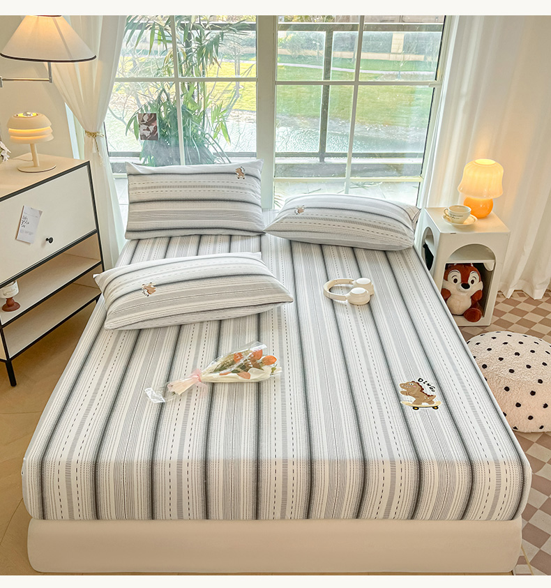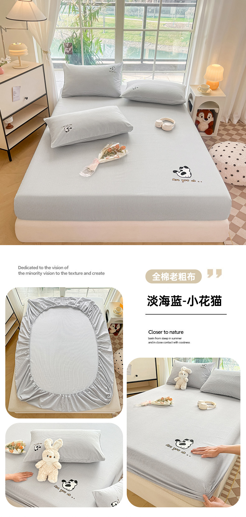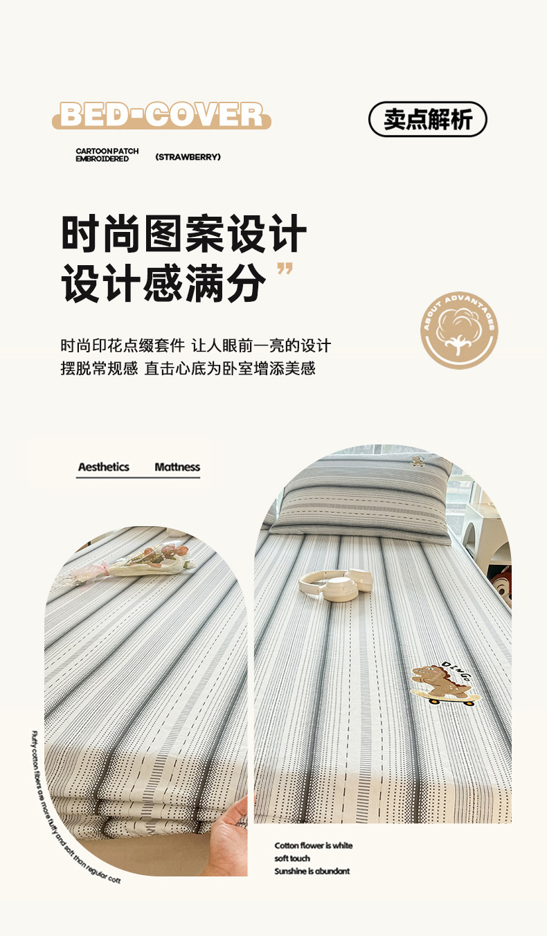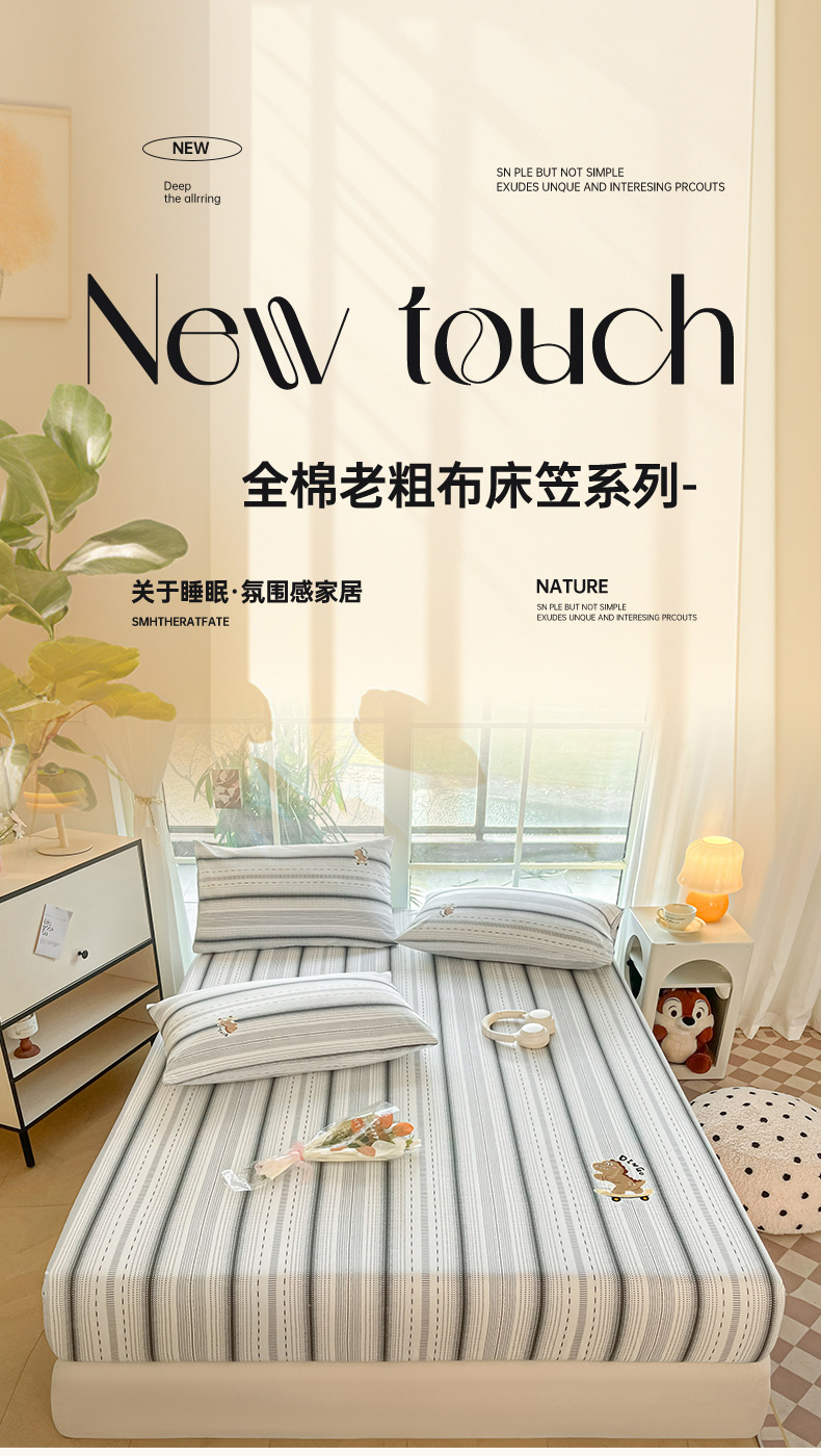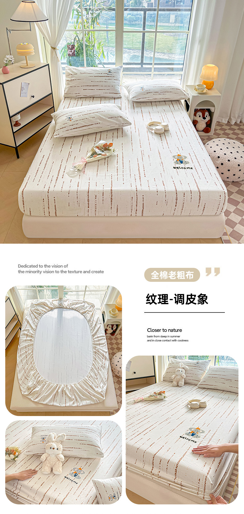 • 91家纺网 家纺一手货源 找家纺 博雅 2025新款全棉老粗布烫画床笠系列 条纹-滑板龙
