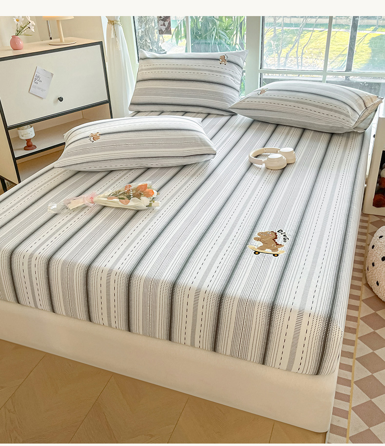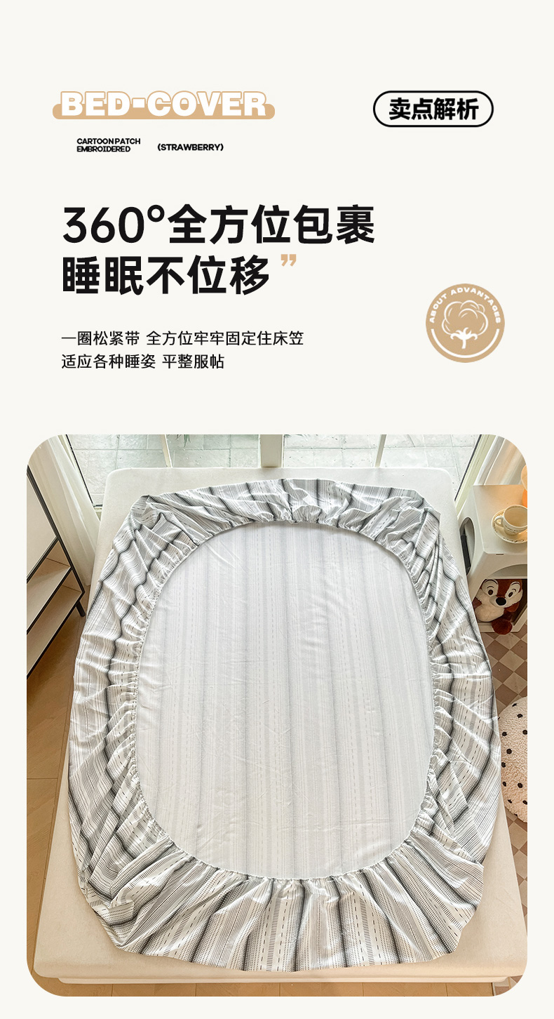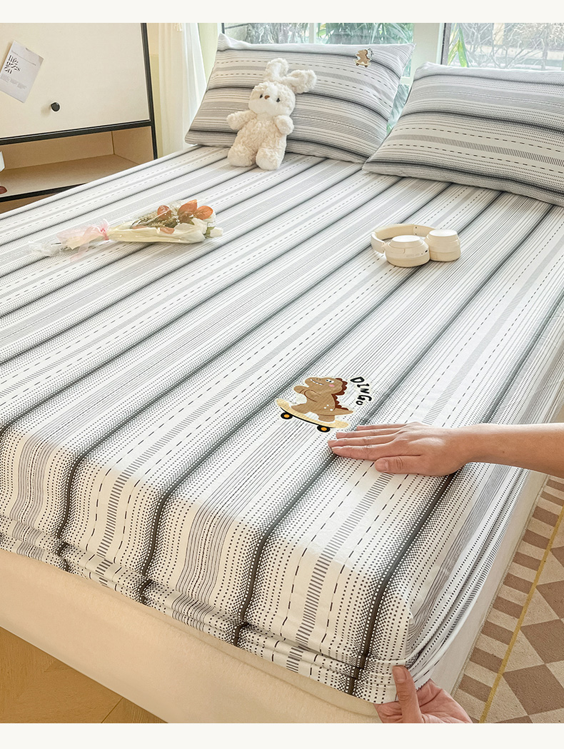 博雅 2025新款全棉老粗布烫画床笠系列 条纹-滑板龙