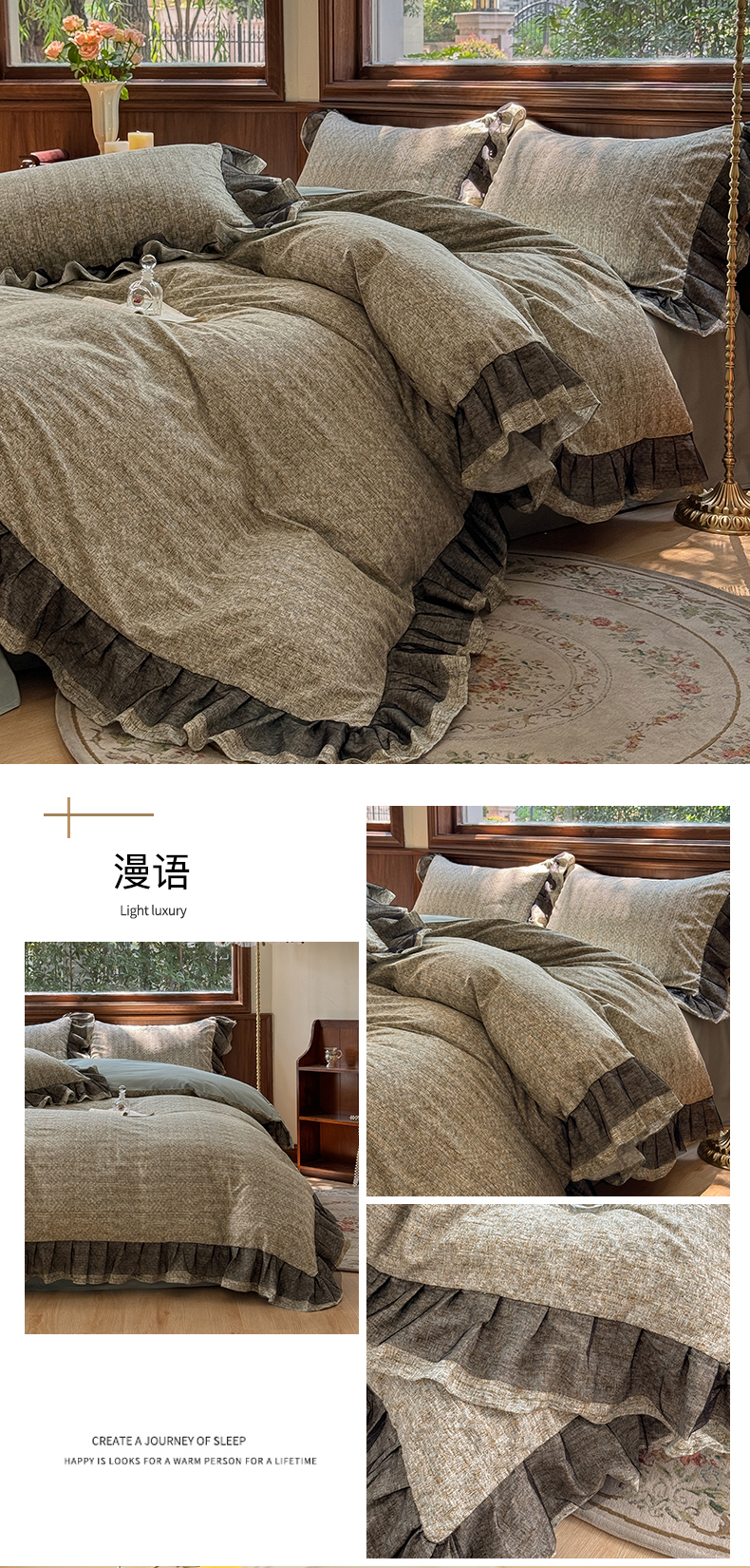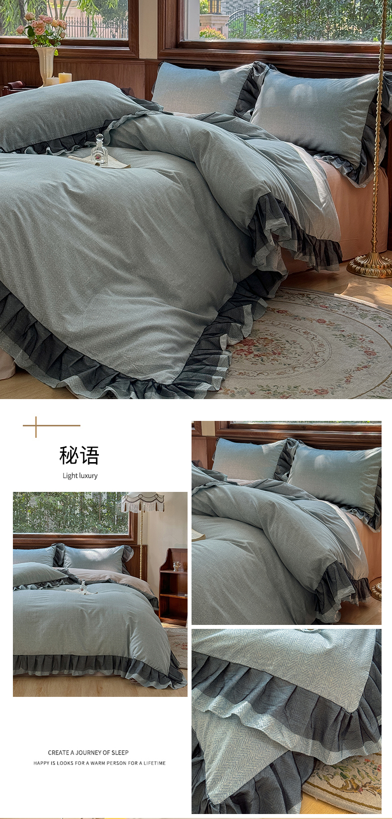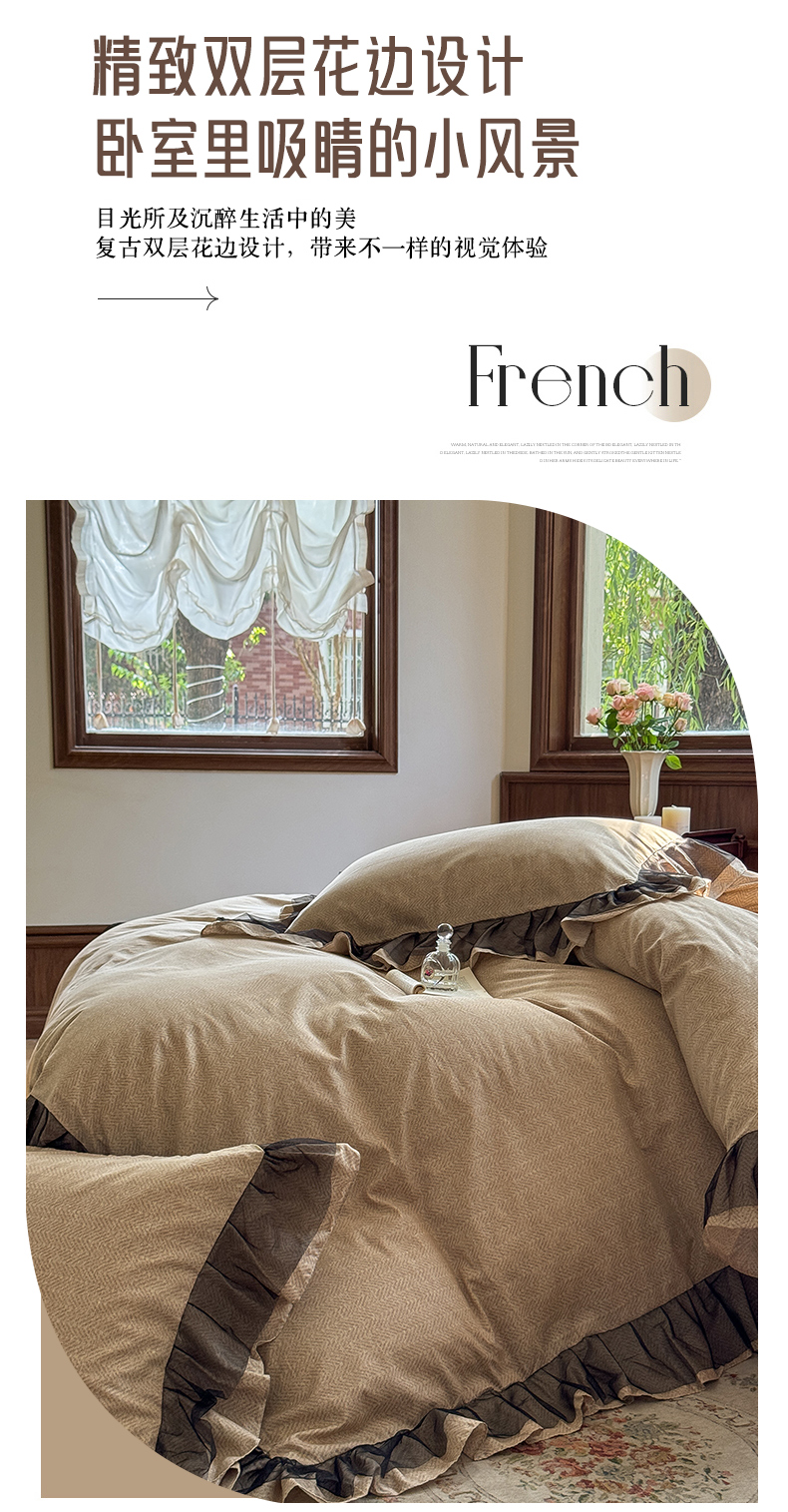 商品名称:TT.one 塔塔家居 2025新款全棉法式浪漫双层花边四件套-森野系列 梦语