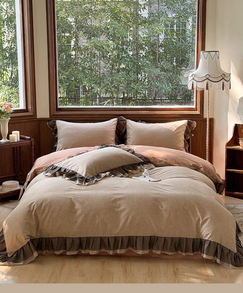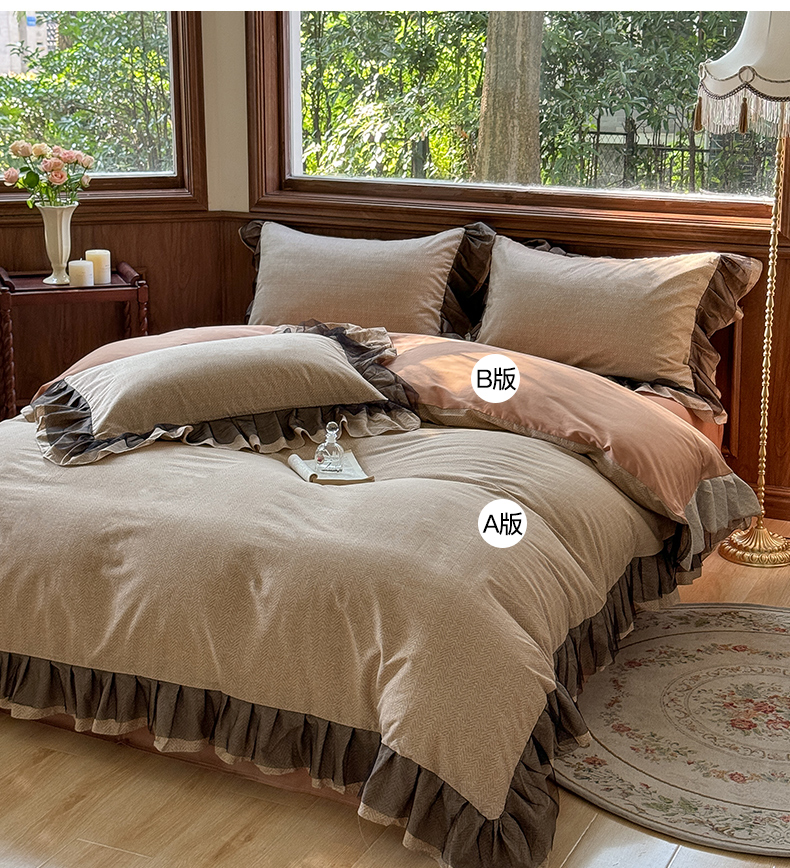 (总)塔塔 2025新款洛丽塔全棉拼接嵌边打褶四件套,蛋糕小熊,甜心派对