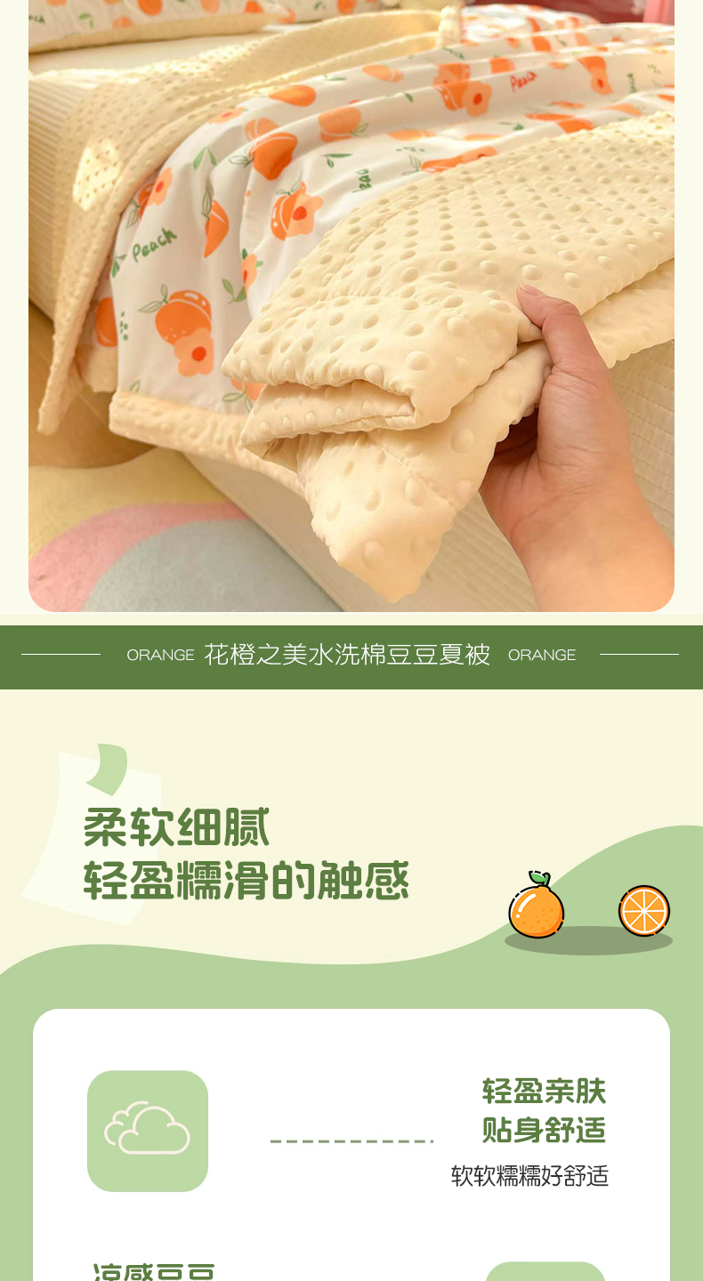 商品名称:恒畅 2025新款A类水洗棉印花豆豆被抗菌夏被夏凉被空调被 花橙之美