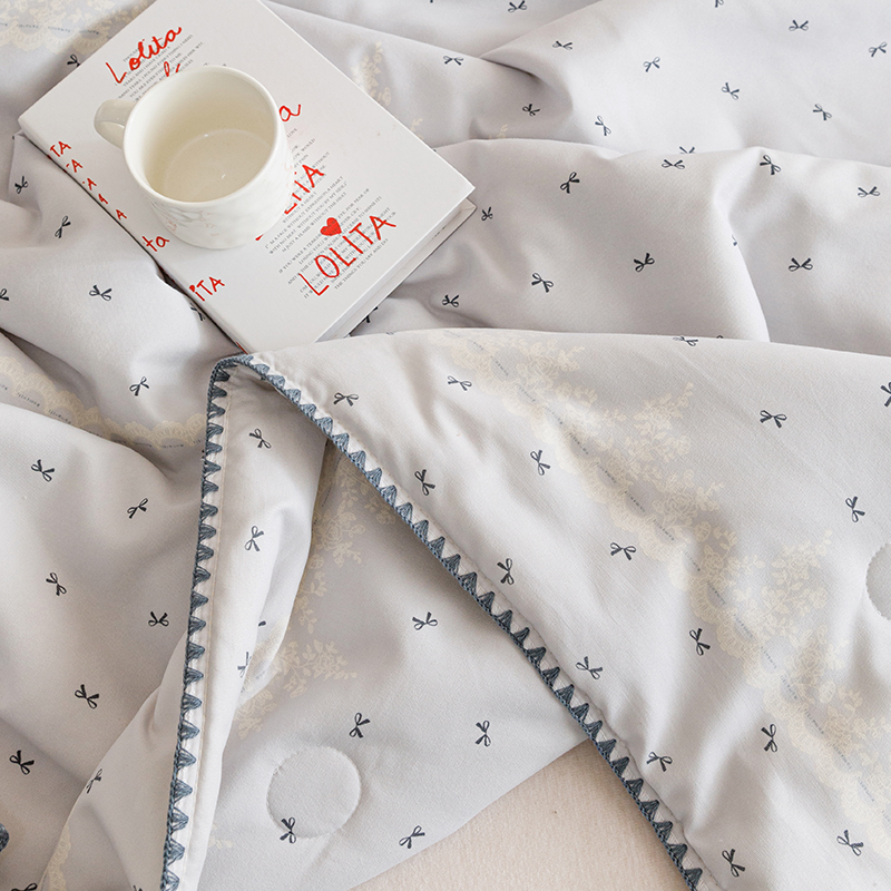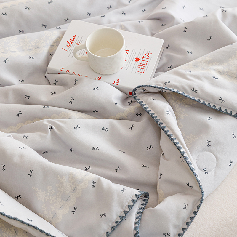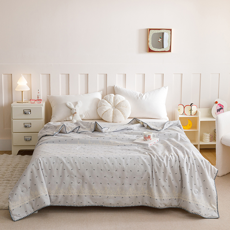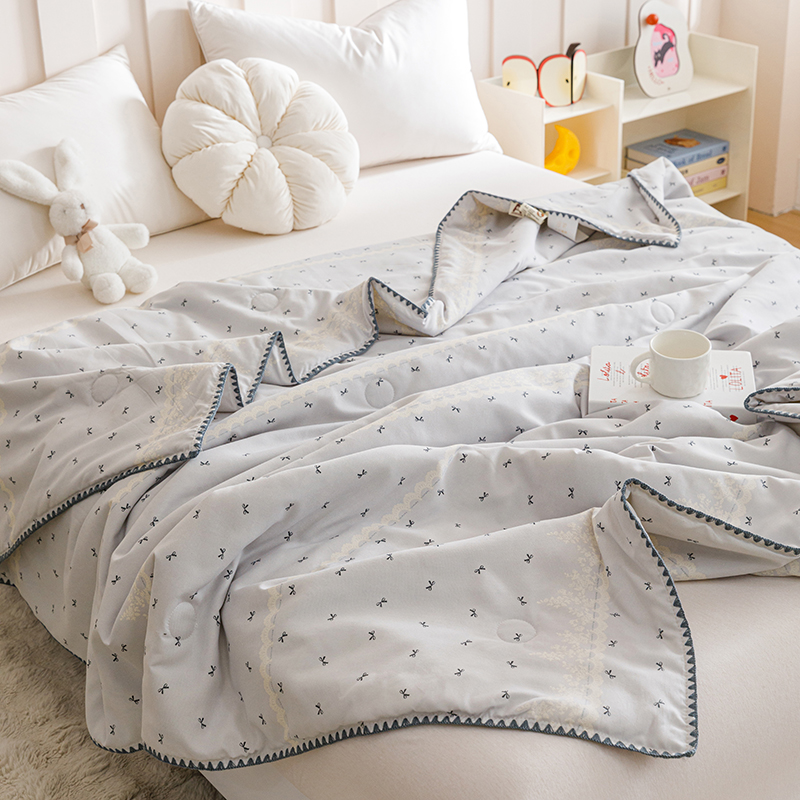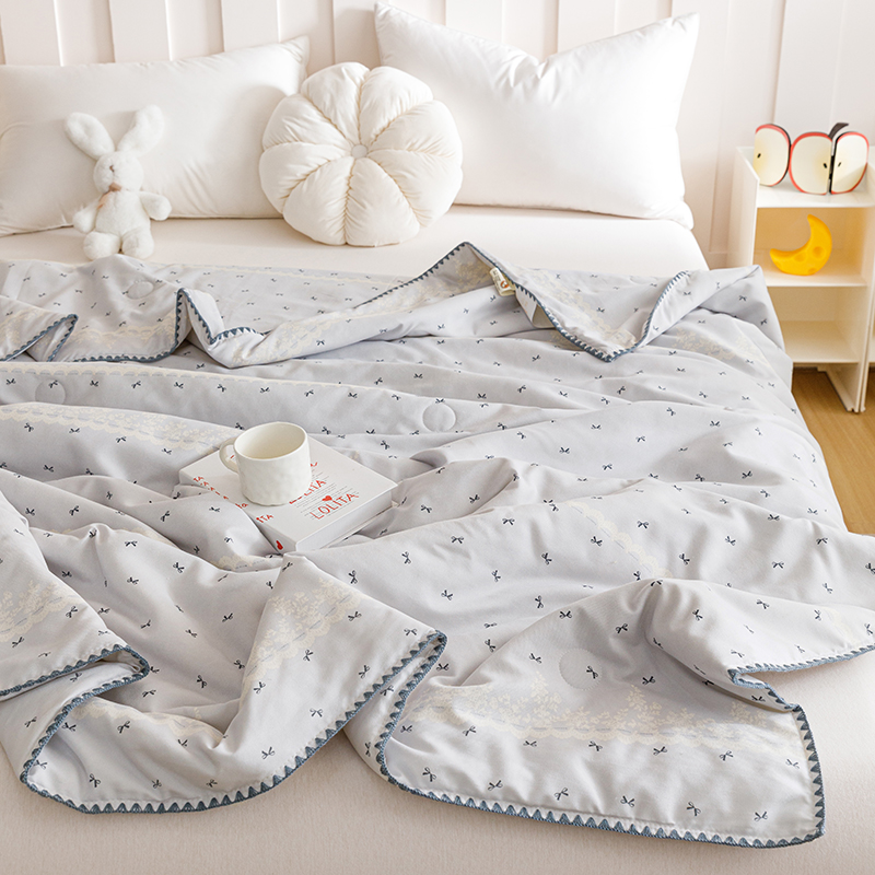 商品名称:优被业 2025新款A类针织有氧双层纱夏被10%大豆夏被空调被夏凉被 蕾丝蝴蝶结