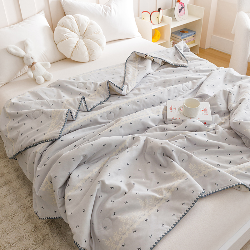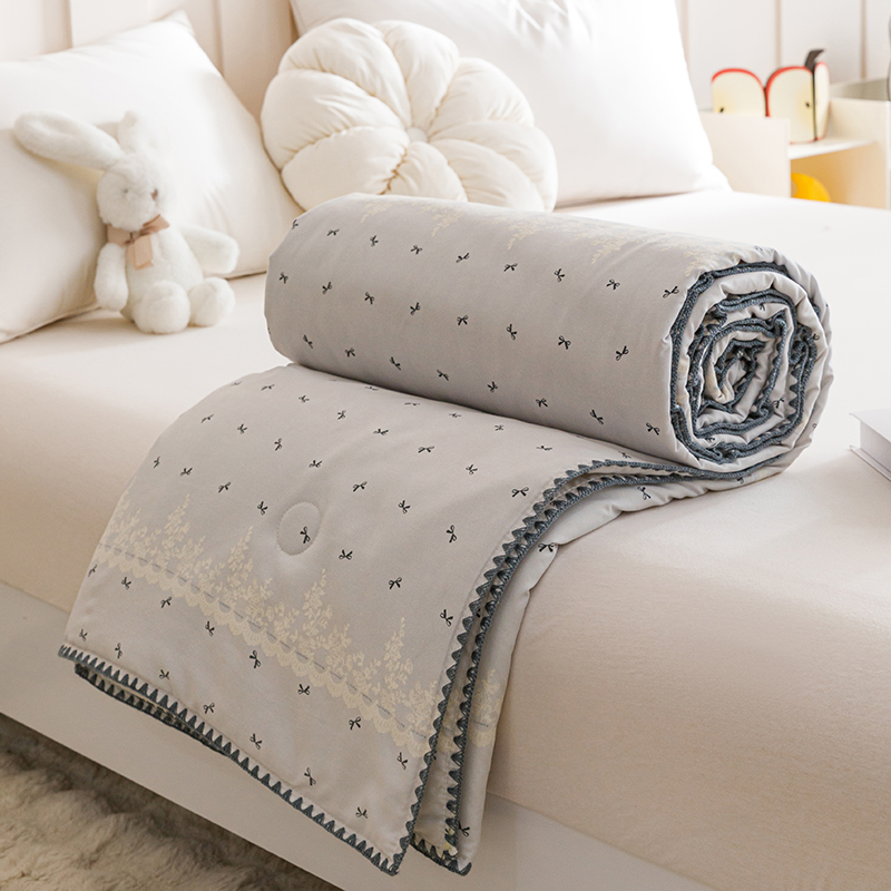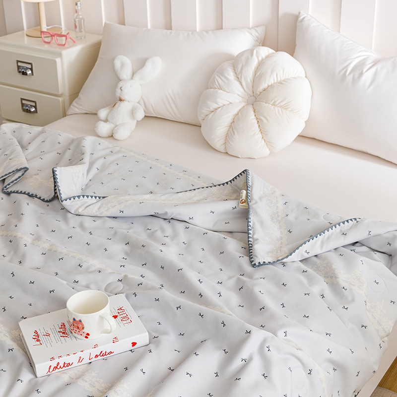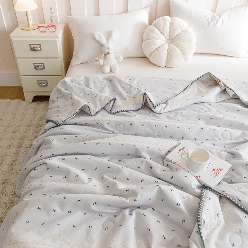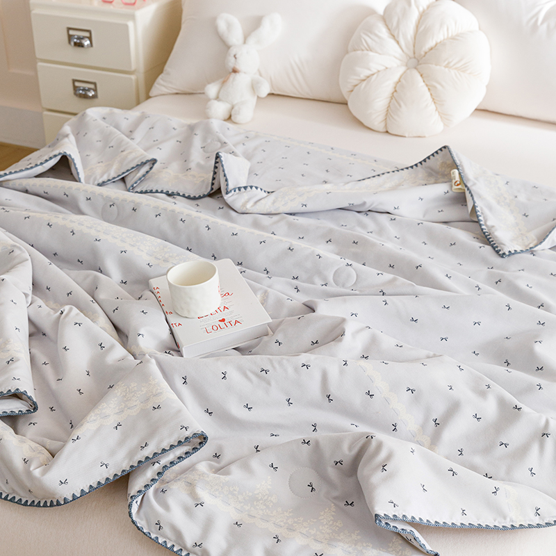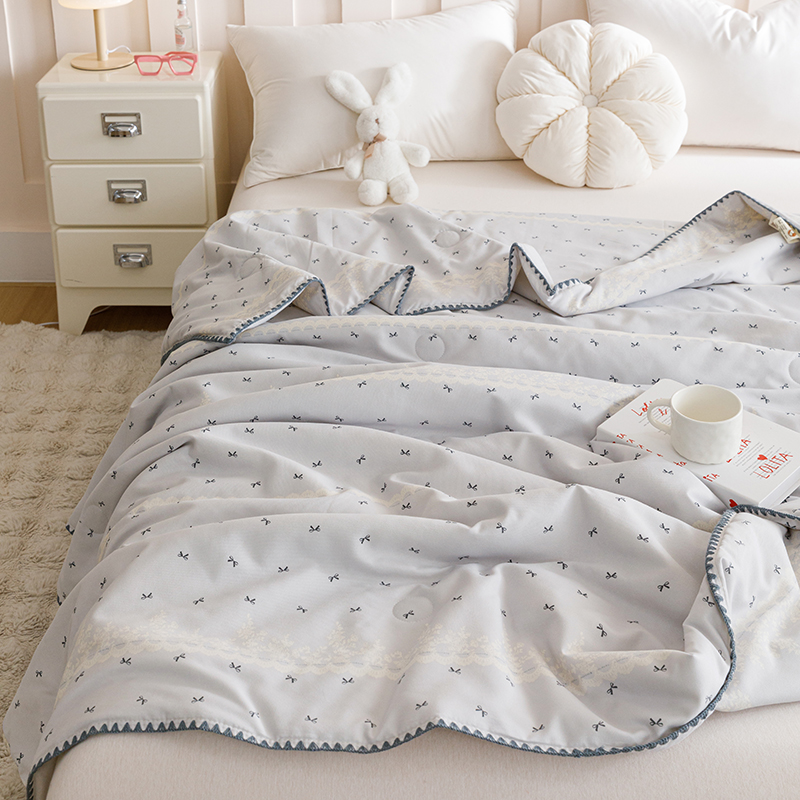 优被业 2025新款A类针织有氧双层纱夏被10%大豆夏被空调被夏凉被 蕾丝蝴蝶结