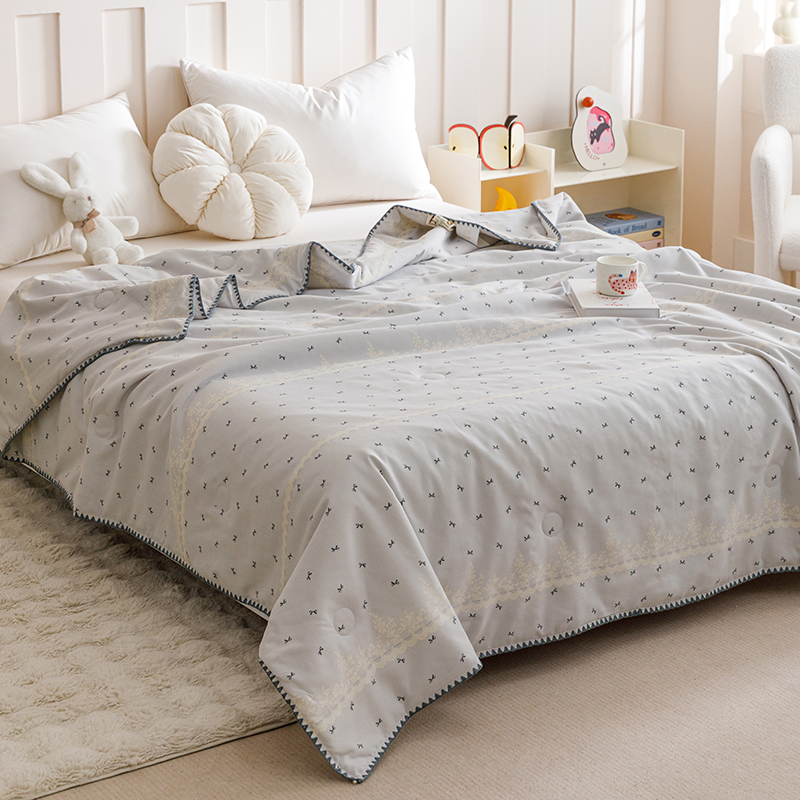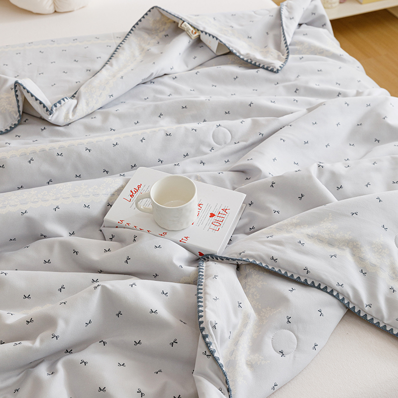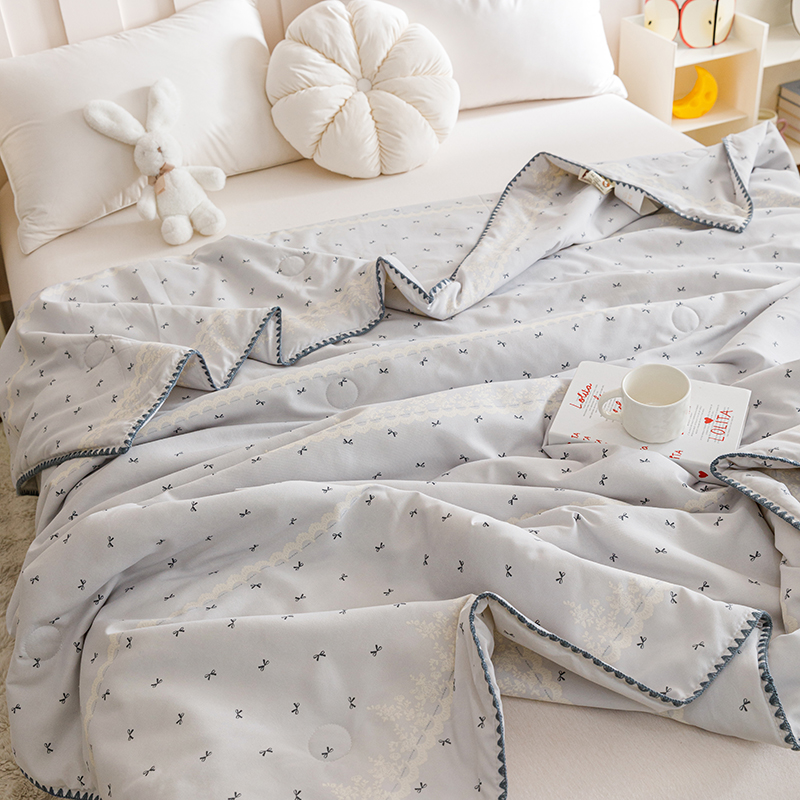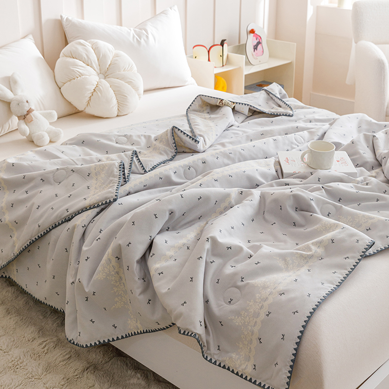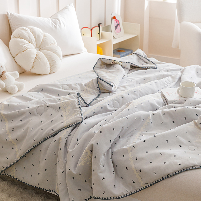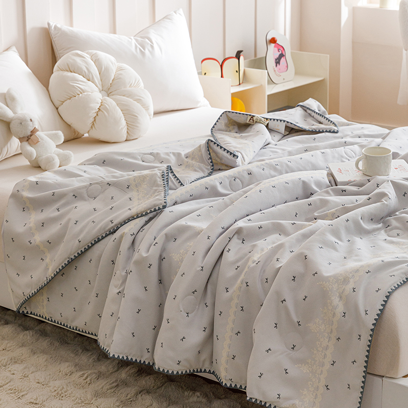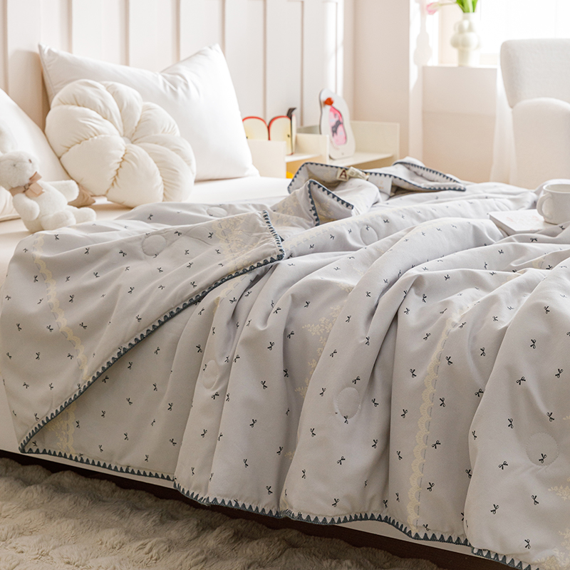 优被业 2025新款A类针织有氧双层纱夏被10%大豆夏被空调被夏凉被 蕾丝蝴蝶结
