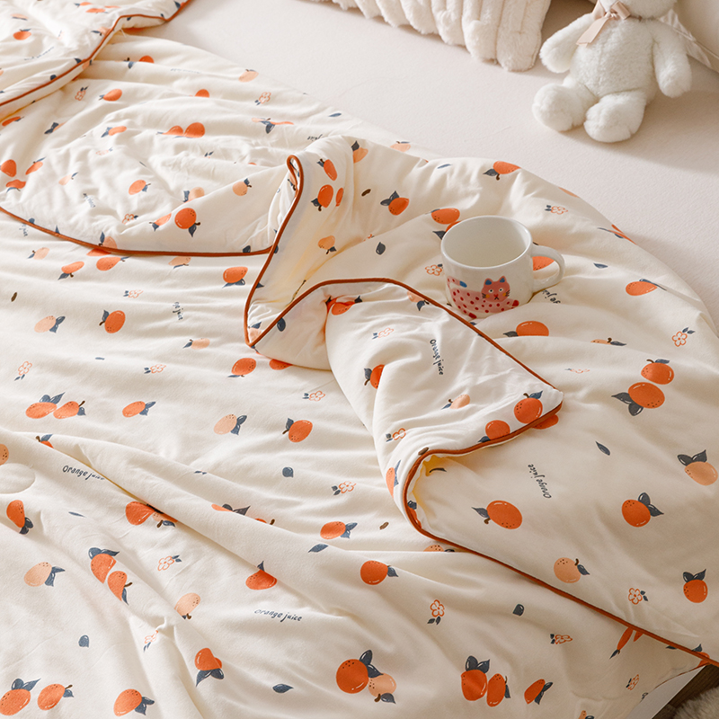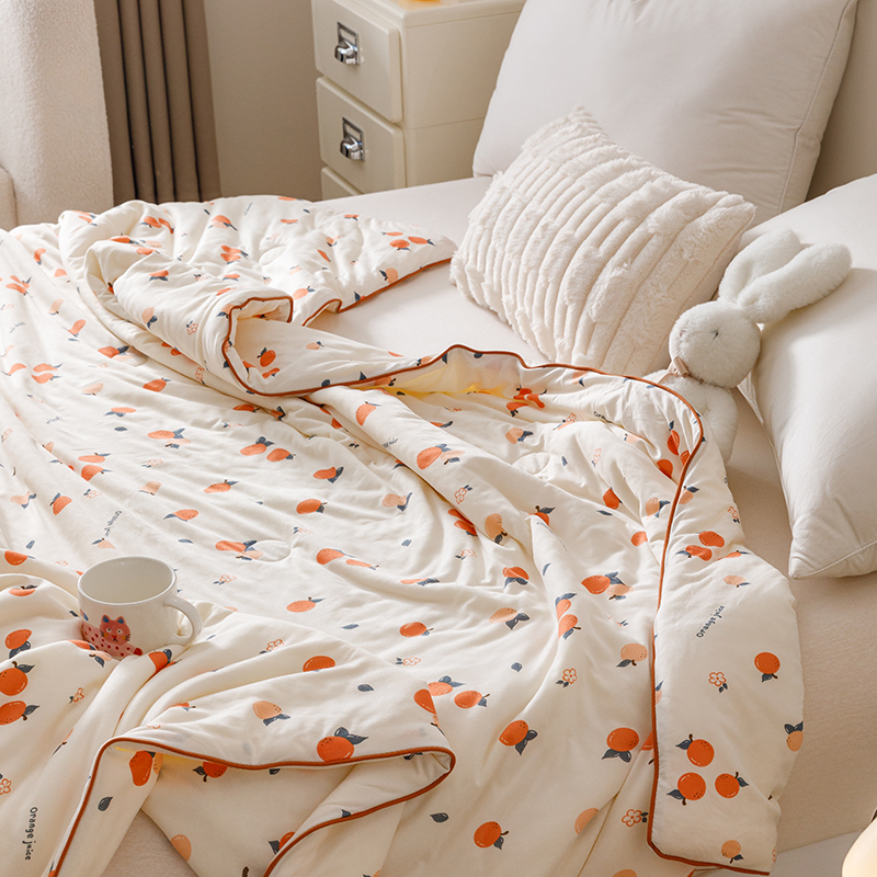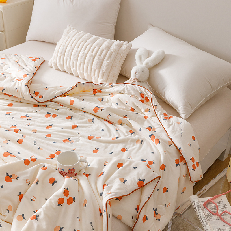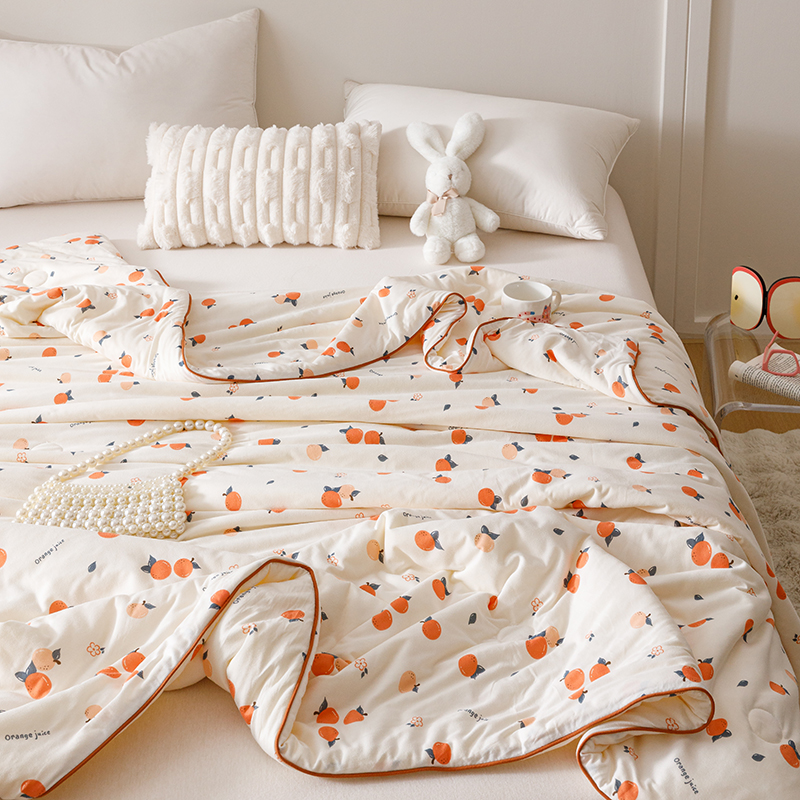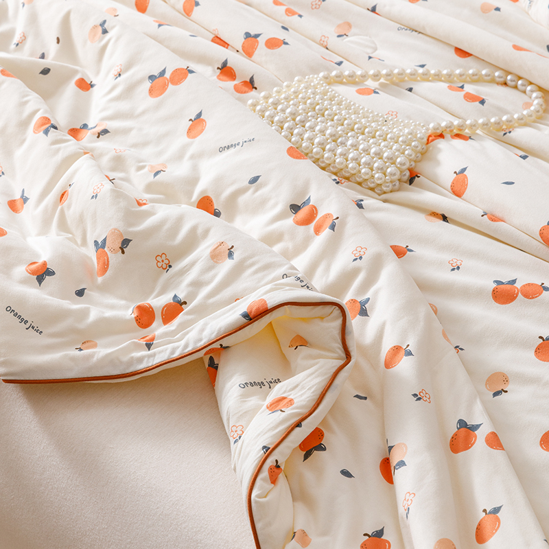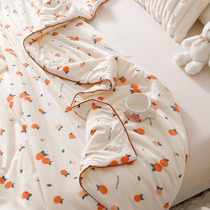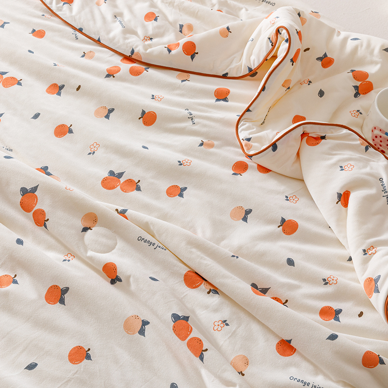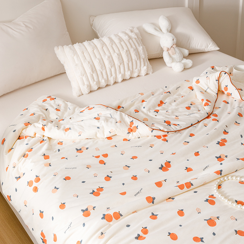 商品名称:优被业 2025新款A类牛奶丝针织棉夏被20%大豆(四周踩棉)软糯夏凉被空调被 甜橙气泡