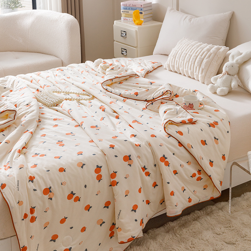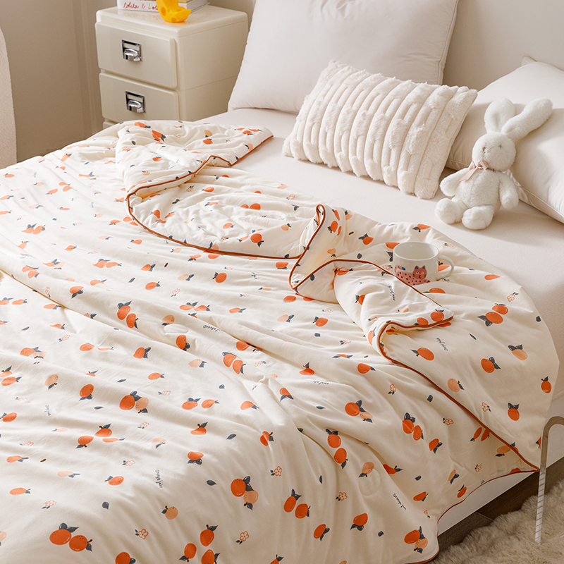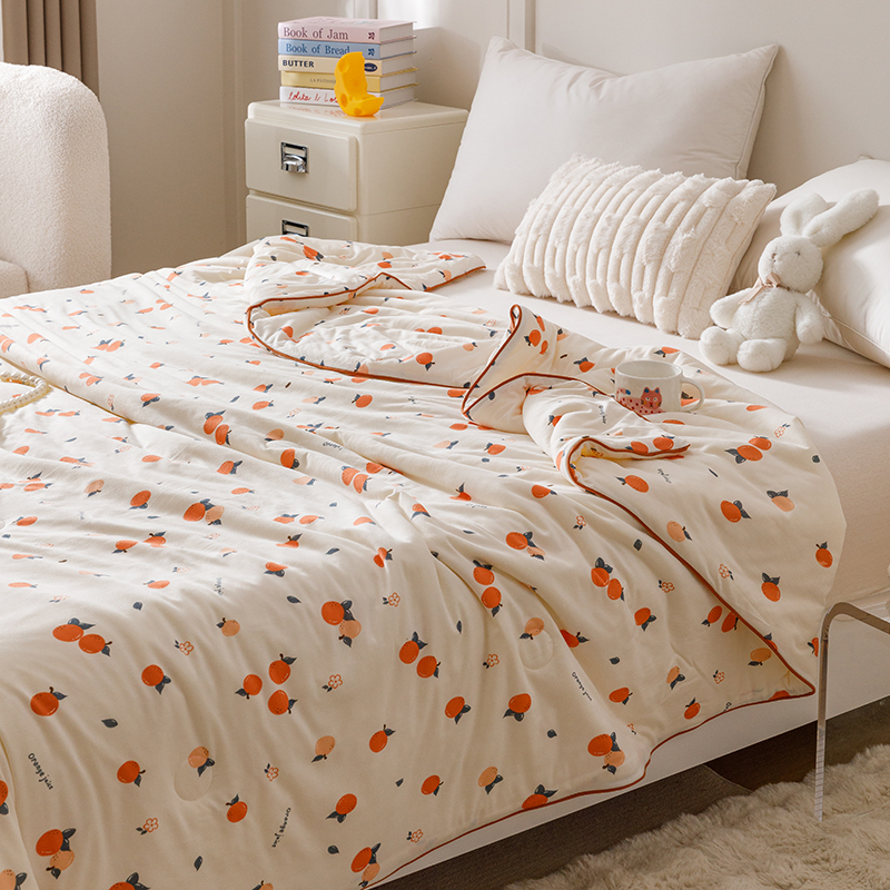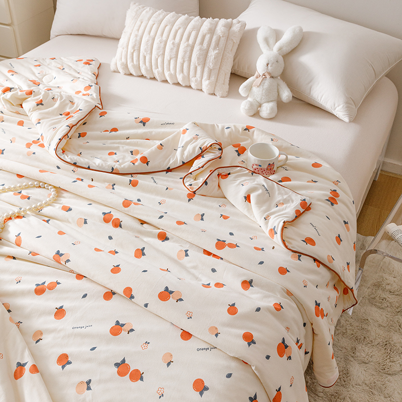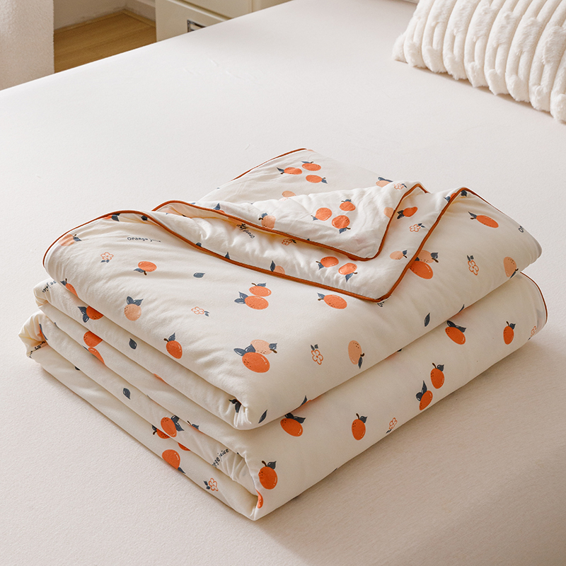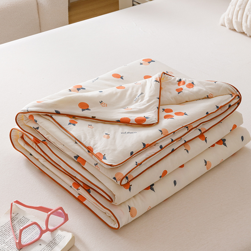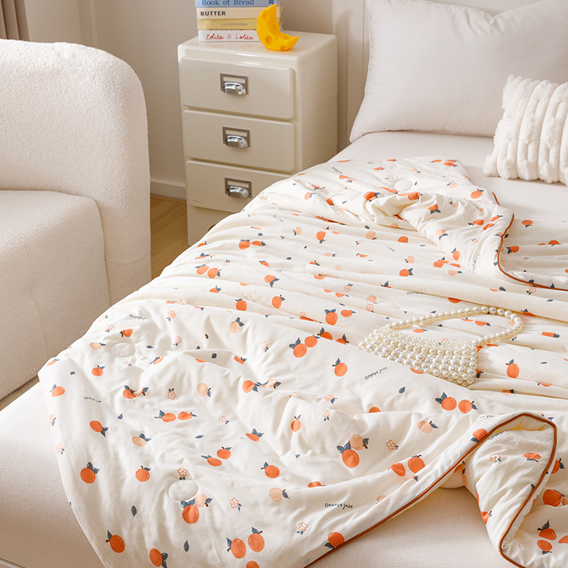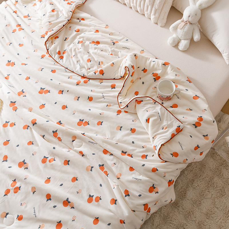 商品名称:优被业 2025新款A类牛奶丝针织棉夏被20%大豆(四周踩棉)软糯夏凉被空调被 甜橙气泡