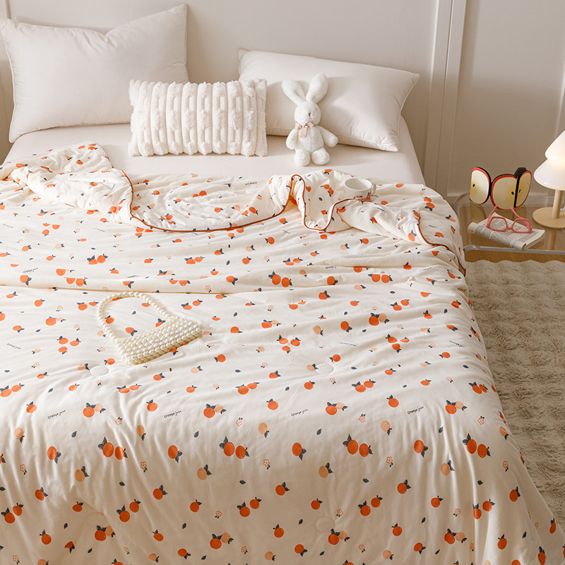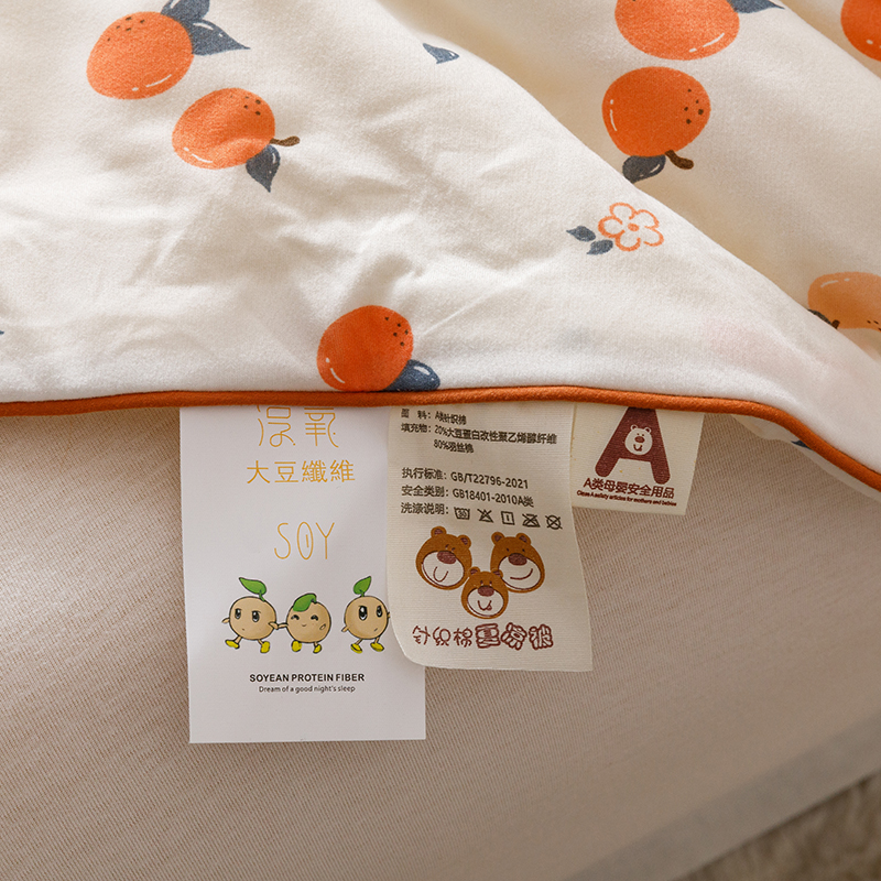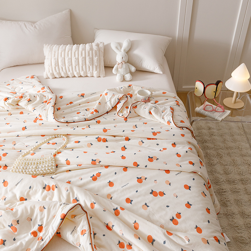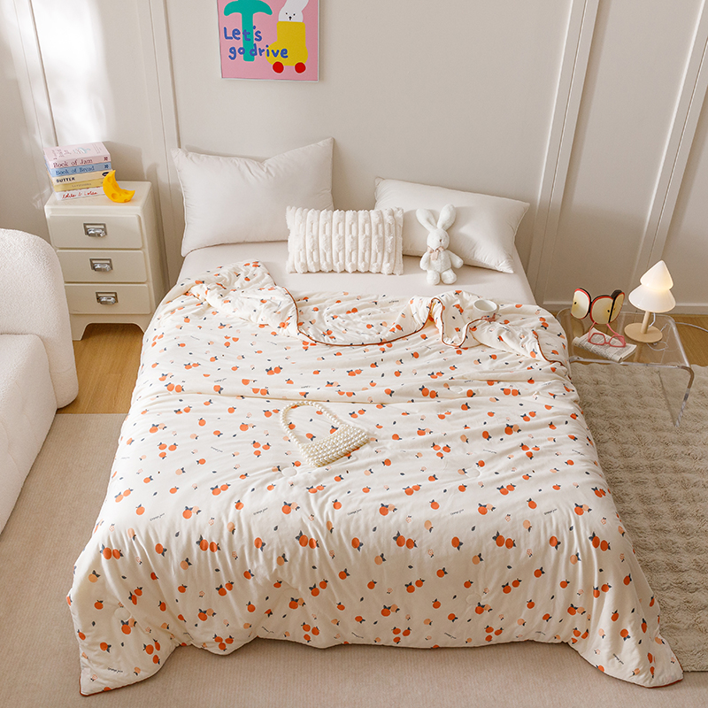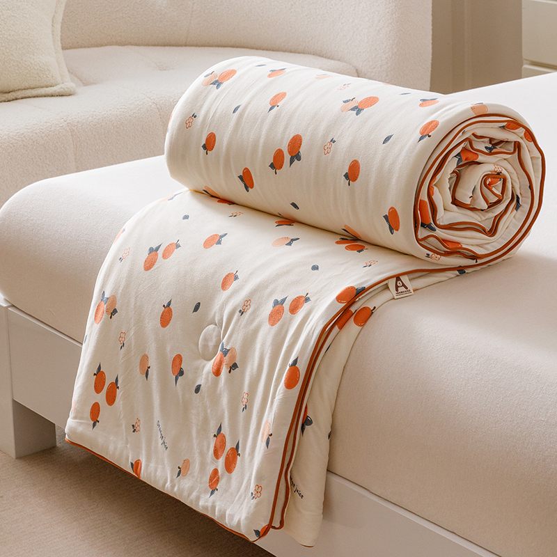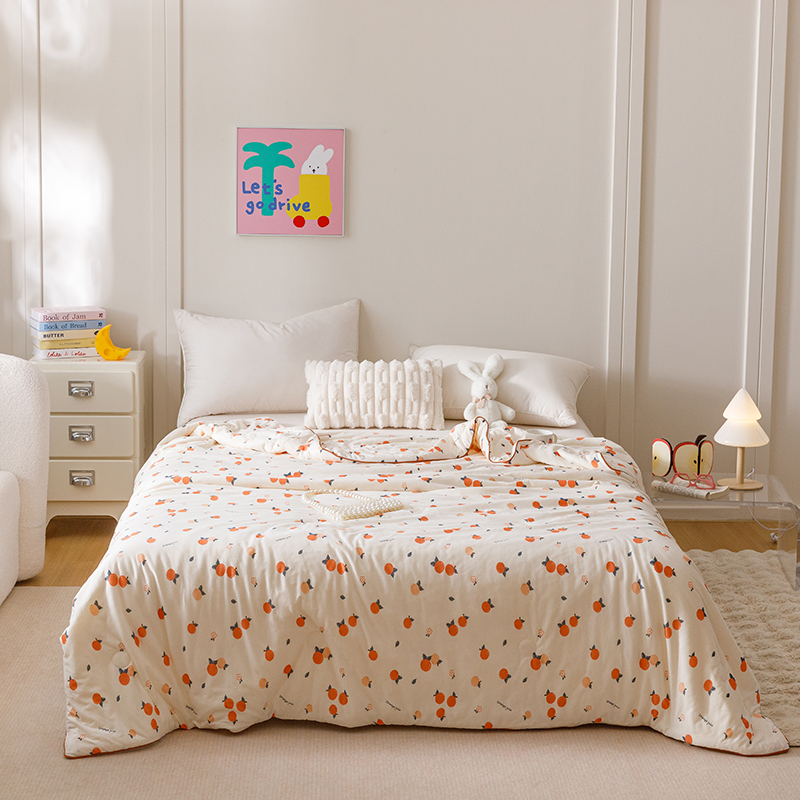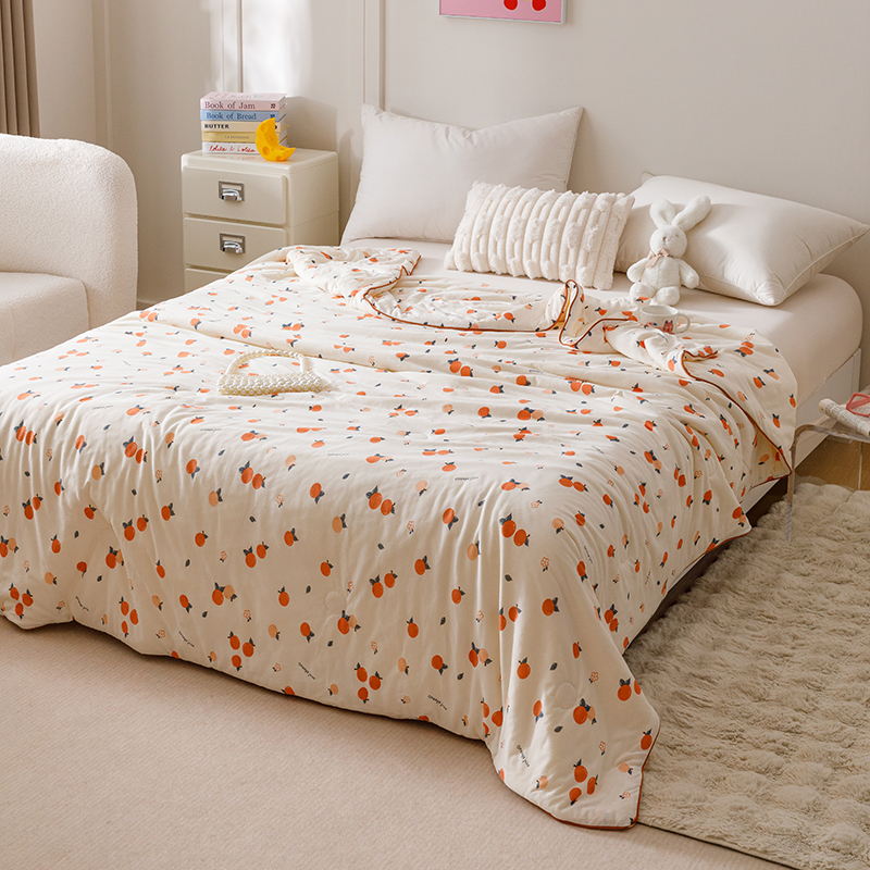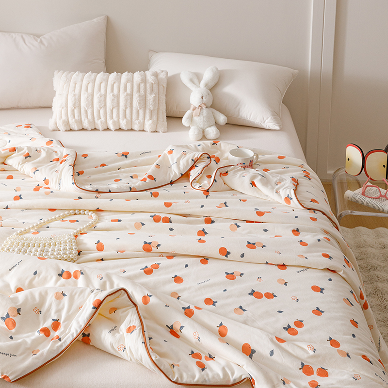 商品名称:优被业 2025新款A类牛奶丝针织棉夏被20%大豆(四周踩棉)软糯夏凉被空调被 甜橙气泡