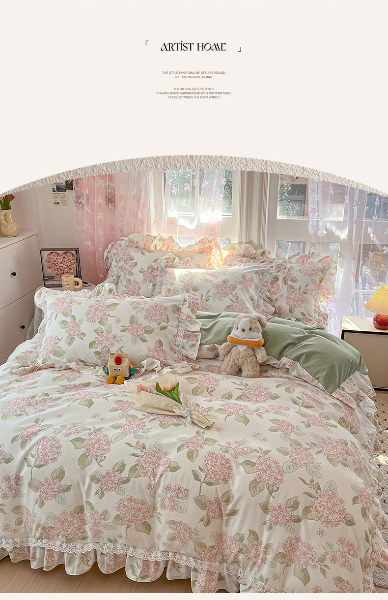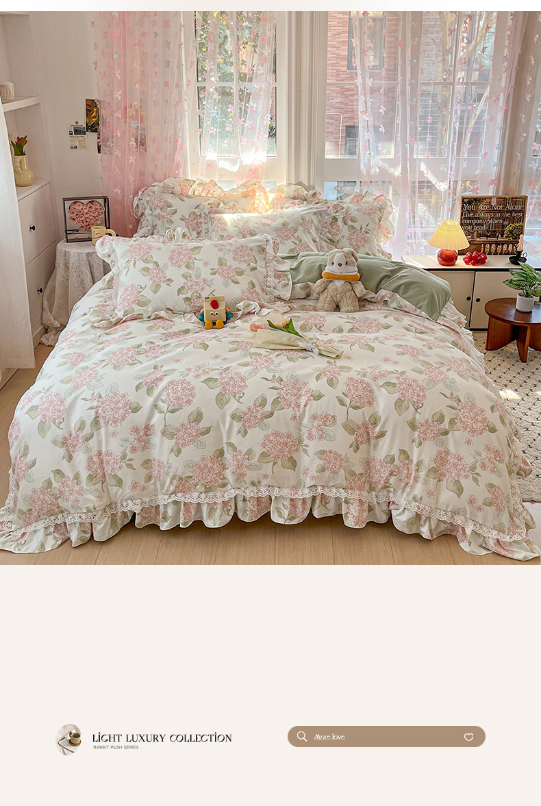 喜梦缘家纺 2025公主风云柔棉工艺款四件套 粉樱轻舞
