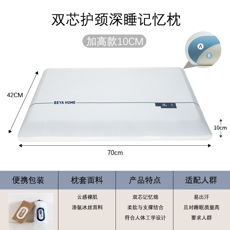 商品名称:(总)2025新款深睡零压pro记忆棉枕头升级双芯慢回弹记忆枕芯护颈酒店同款亚\\\\云朵