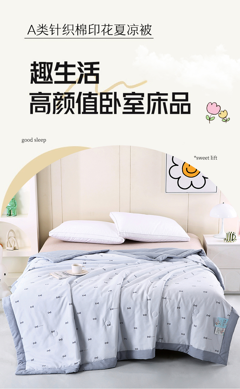 商品名称:欧朵家纺 2025新款A类针织棉印花夏被子被芯 蝴蝶结蓝