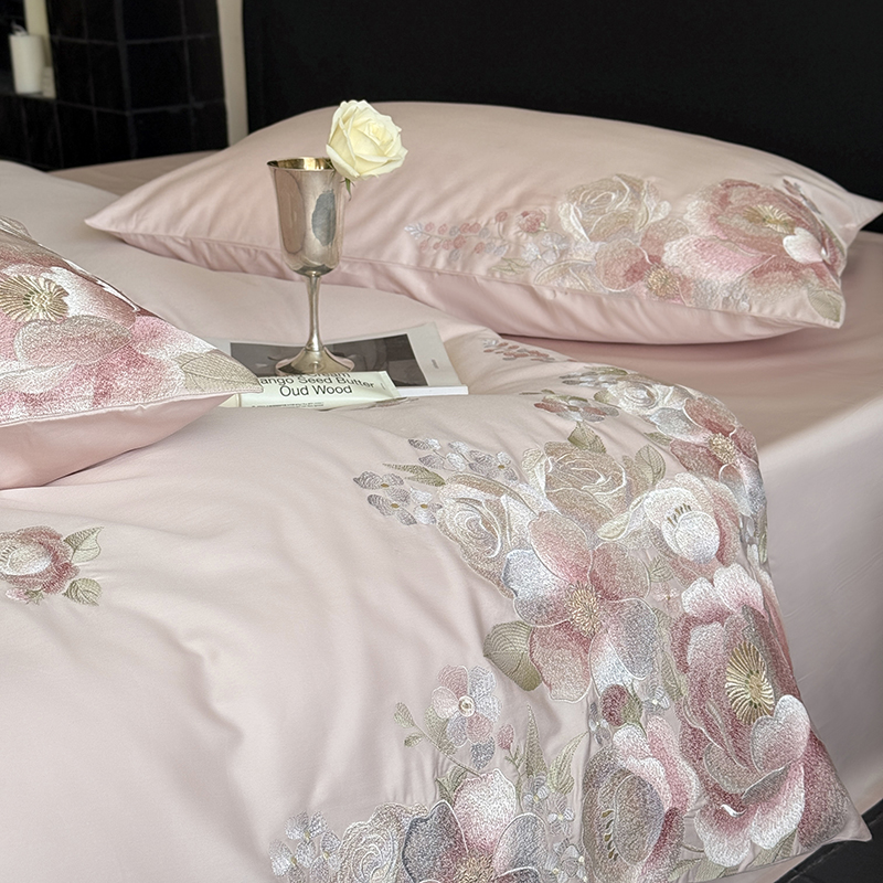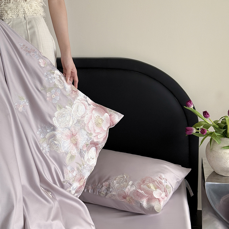 (总)鹿班家居 2026新款100S长绒棉纯棉精密刺绣系列四件套-花影摇曳(标准会员-20元),花影摇曳-粉色,花影摇曳-紫色