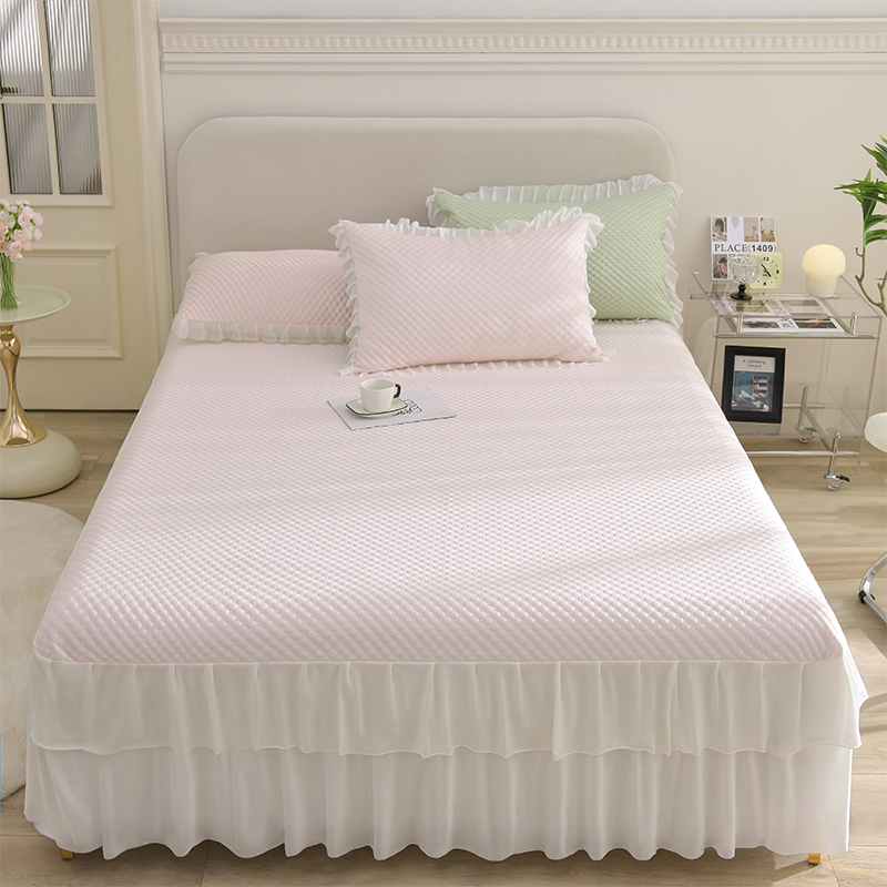 当前位置: 91家纺网 > 商品网购 > 床上用品 > 凉席 > 冰丝席 > 赛丽雅 2025爆款A类凉感豆豆凉席三件套床裙款冰丝软席子床笠款凉席 粉玉