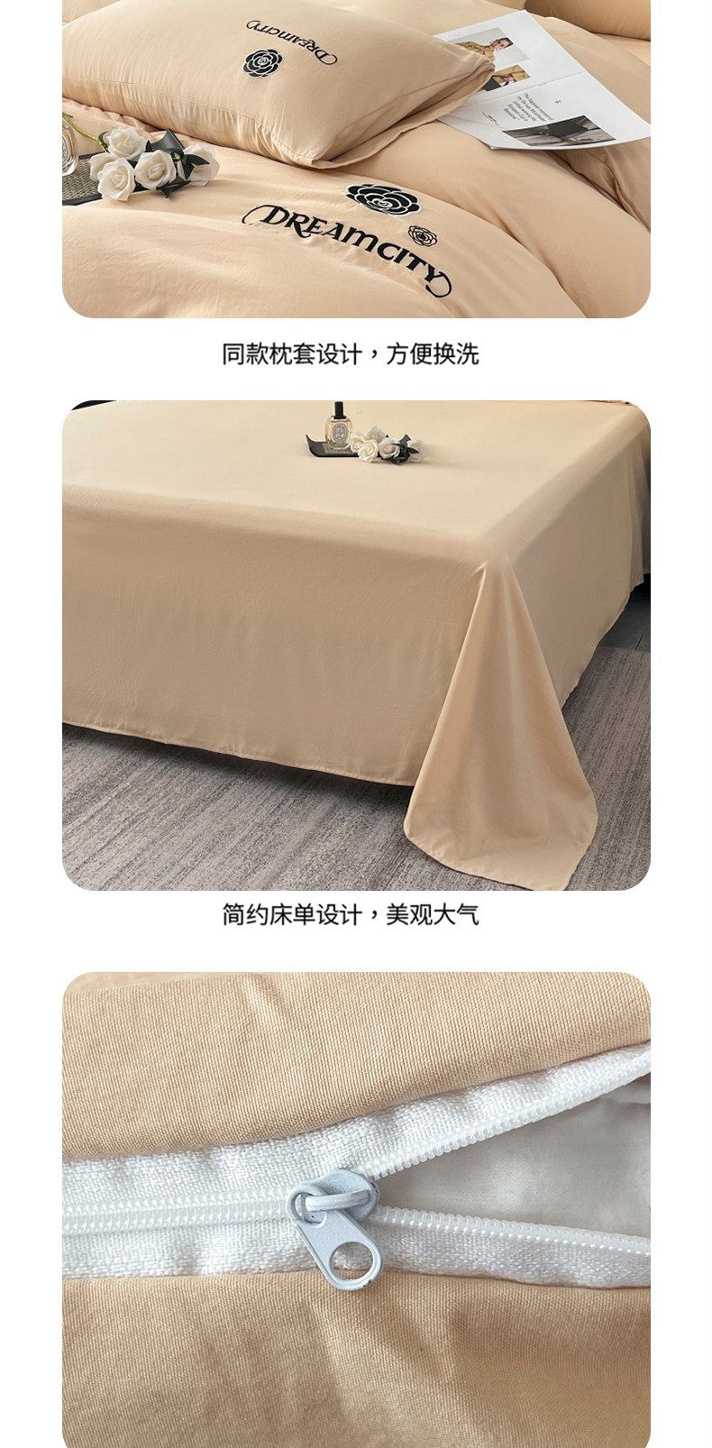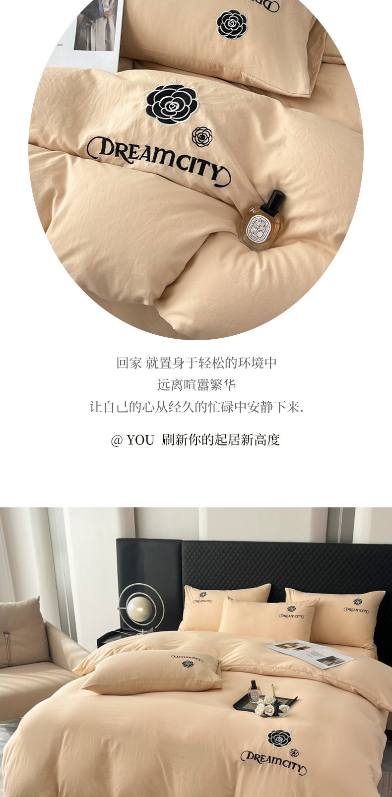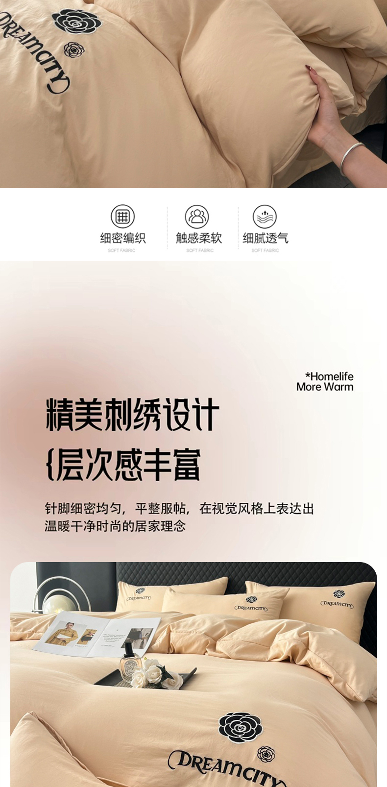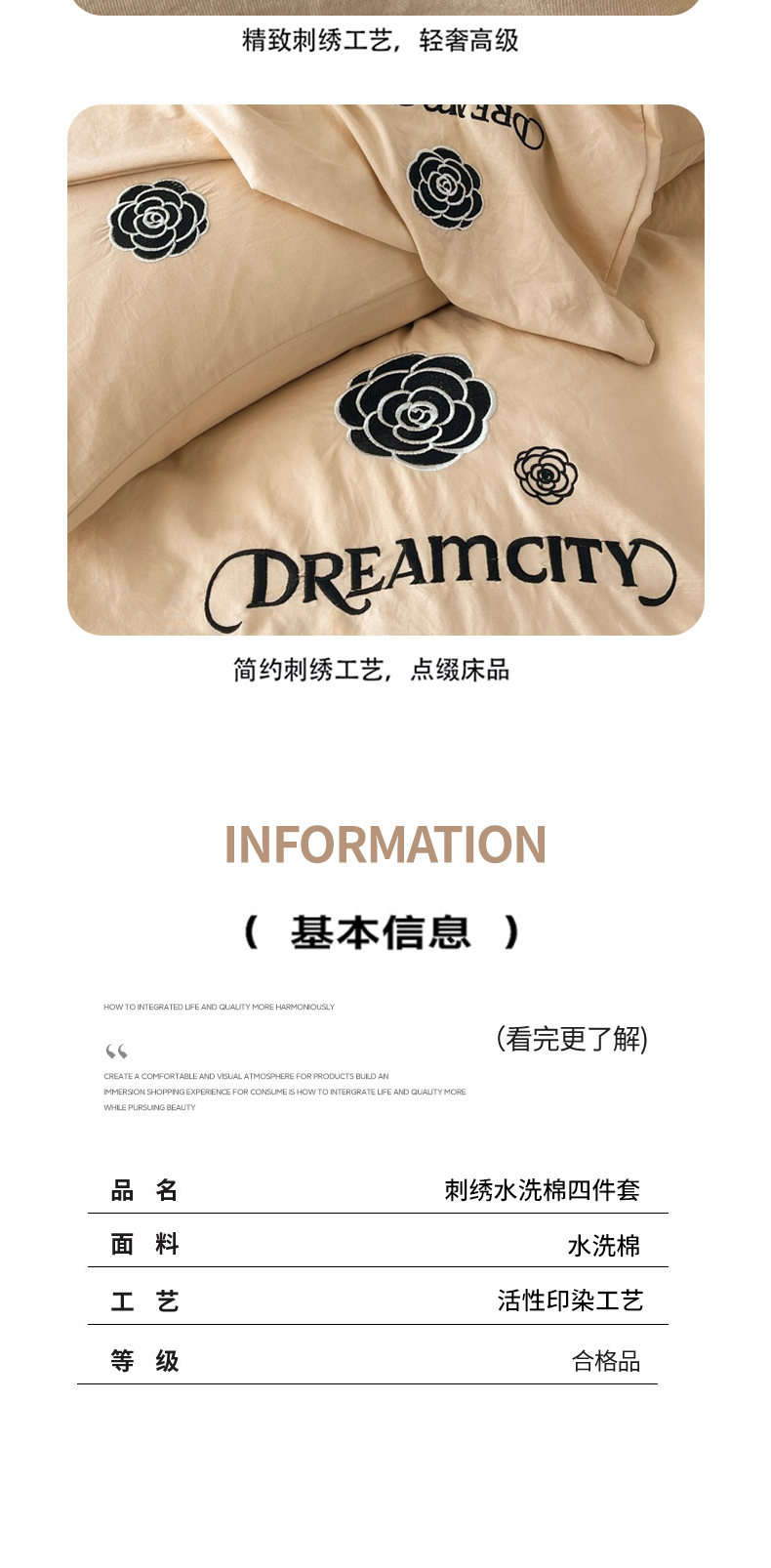 当前位置: 91家纺网 > 商品网购 > 床品套件 > 四件套 > 水洗棉四件套 > 麒东家纺 2025新款刺绣水洗棉四件套山茶花系列 咖色