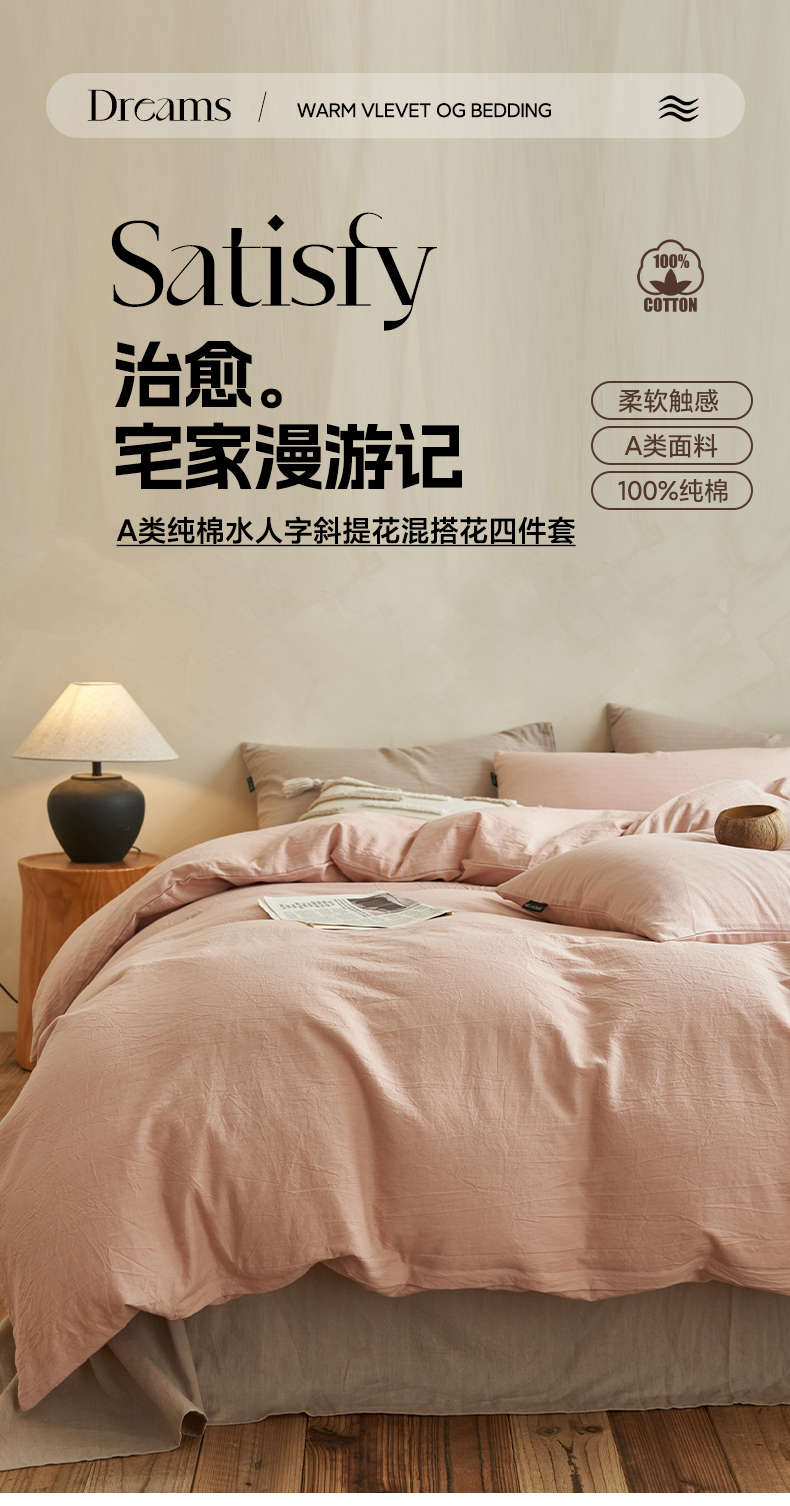 当前位置: 91家纺网 > 商品网购 > 床品套件 > 四件套 > 水洗棉四件套 > 2025新款色织水洗棉人字斜提花混搭四件套 人字斜四件套-驼色+浅灰