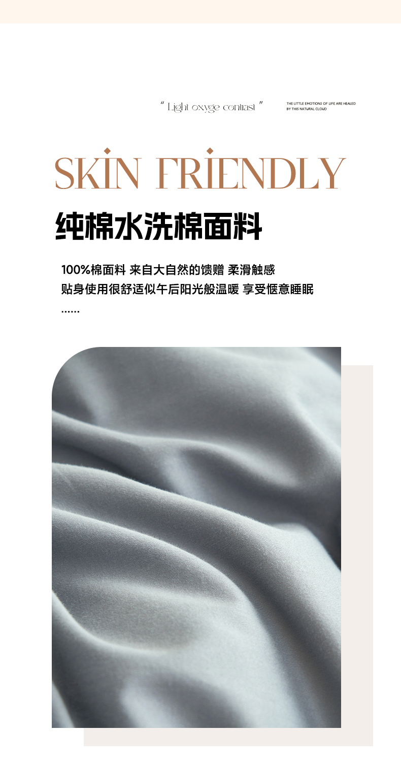 商品名称:2025新款全棉13372水洗棉双拼四件套(影棚亮光) 礁石灰+毛毯灰
