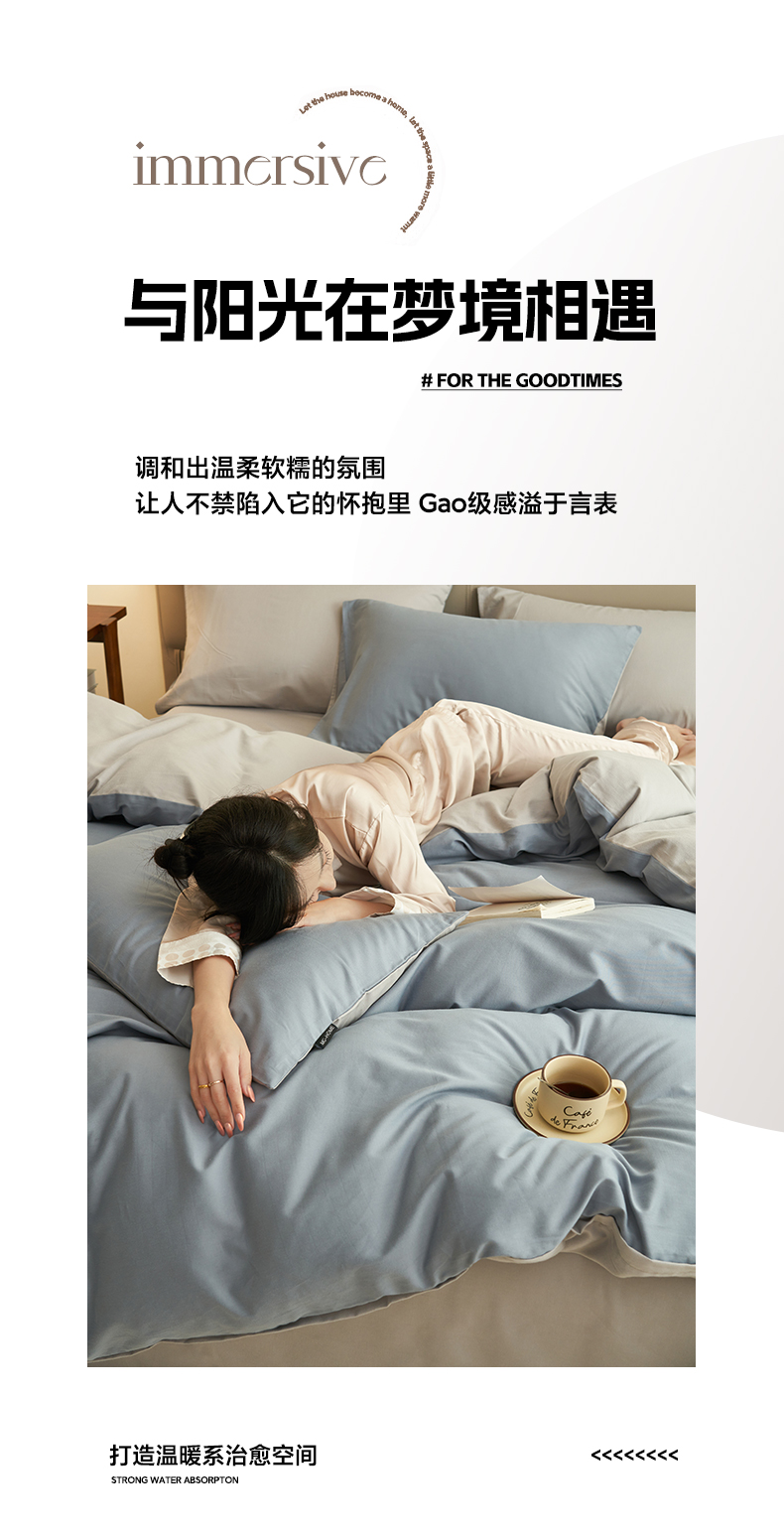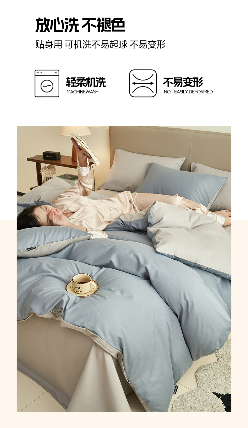 (总)寐绸家纺 2025新款纯棉水洗棉简约双拼大豆纤维夏被四件套,宾利蓝+浅灰,豆沙粉+浅灰,米白+青绿,牛仔蓝+浅灰,浅灰+杏色,天蓝+米黄