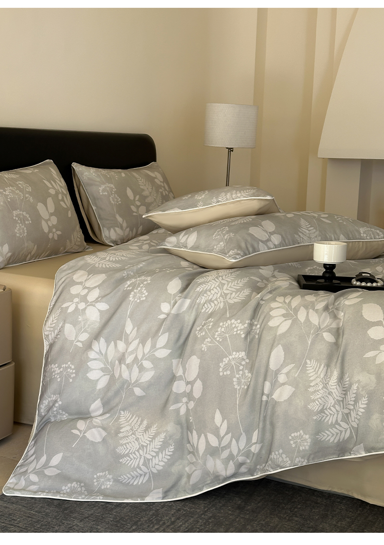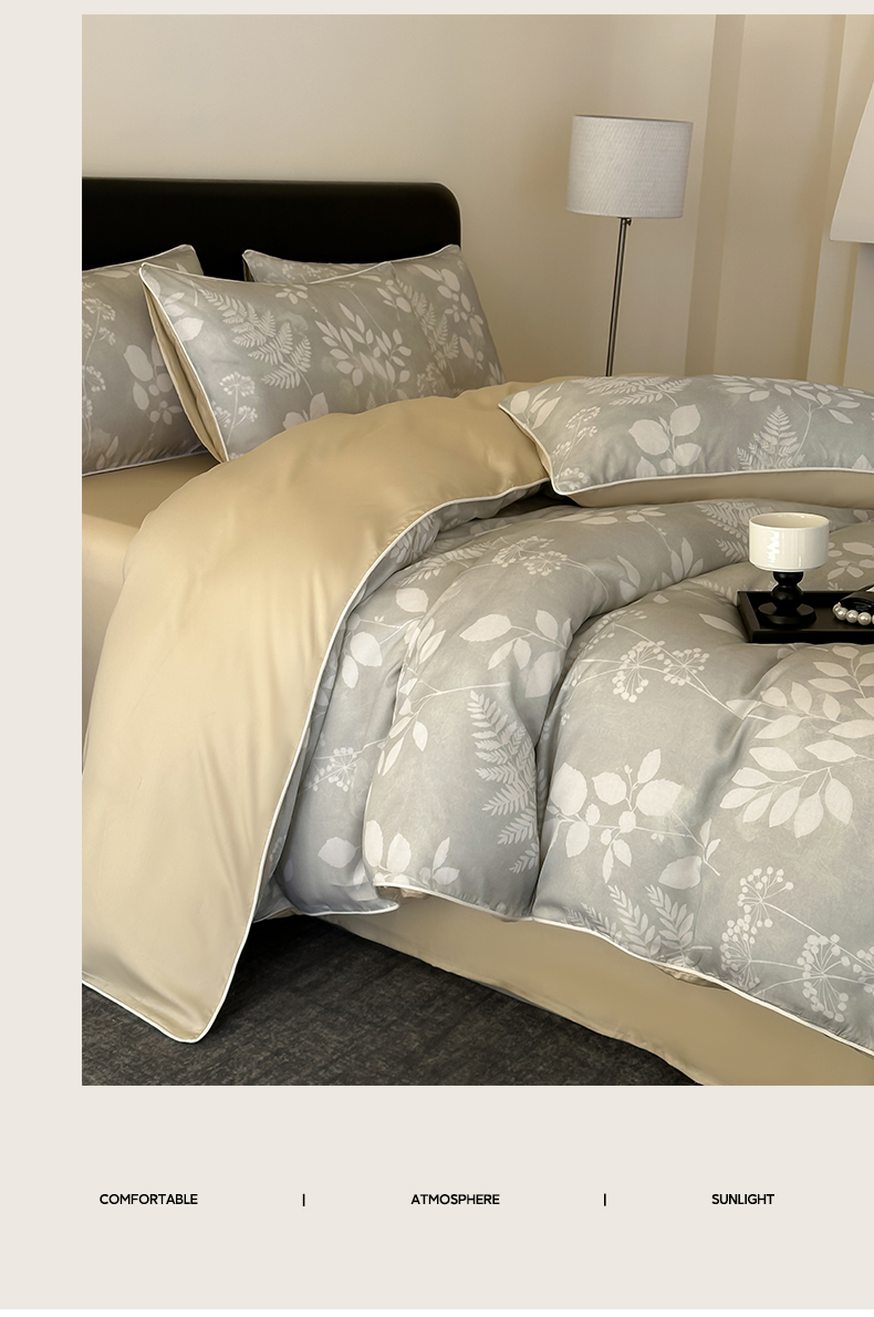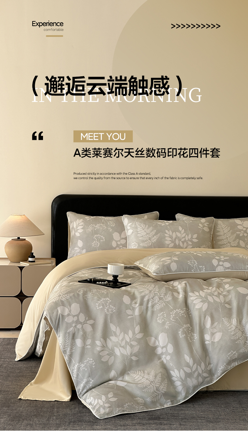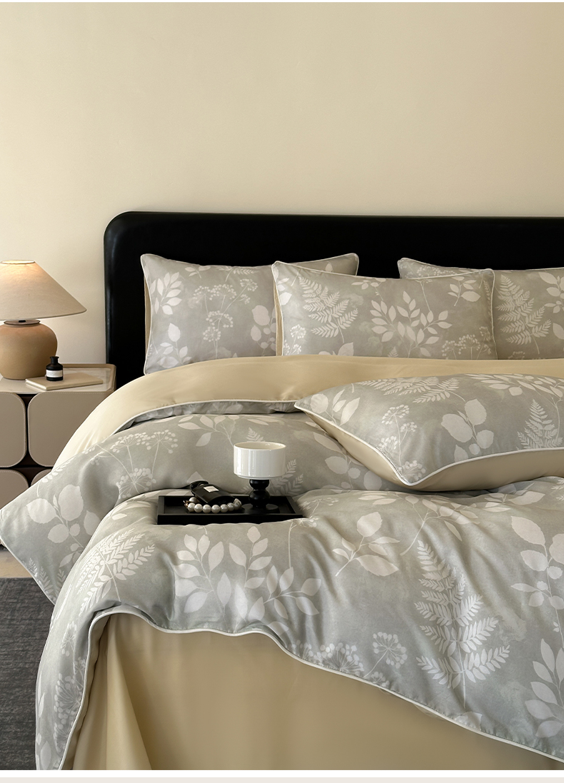 当前位置: 91家纺网 > 商品网购 > 床品套件 > 四件套 > 其它四件套 > 莱登卡奴 2025新款A类50支莱赛尔天丝数码印花麻绳款四件套 叶影