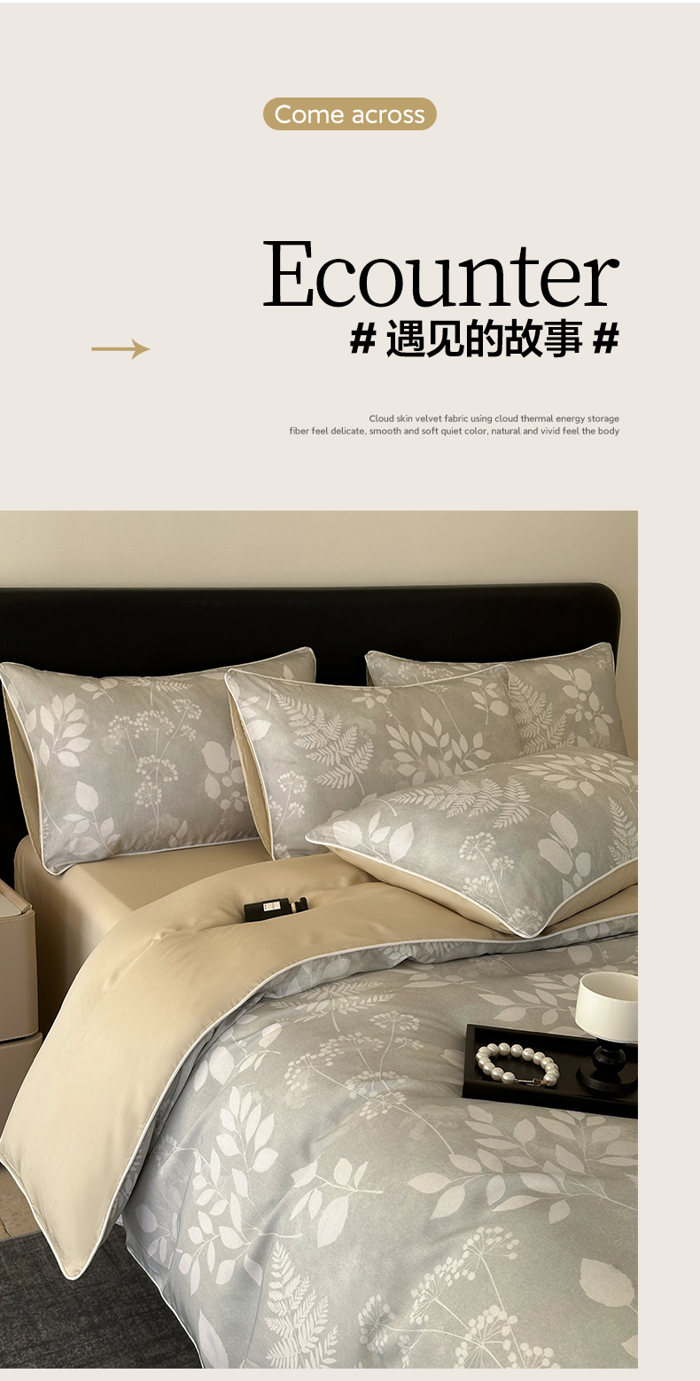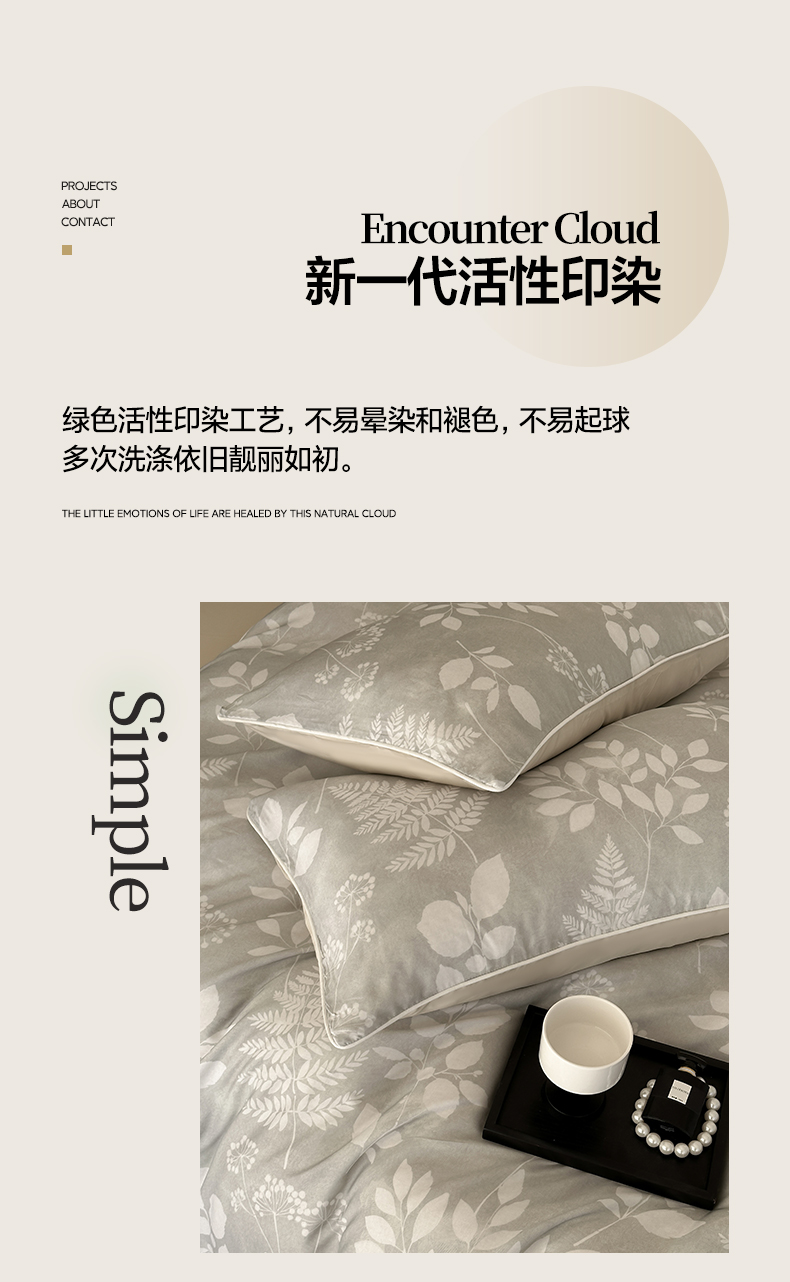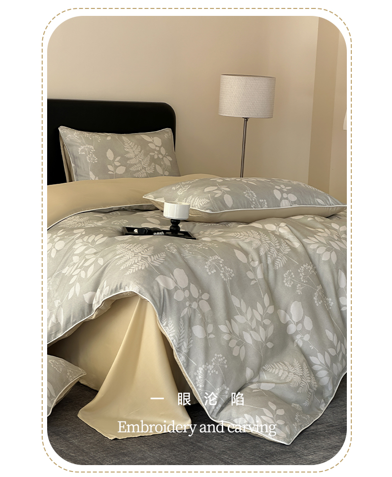 当前位置: 91家纺网 > 商品网购 > 床品套件 > 四件套 > 其它四件套 > 莱登卡奴 2025新款A类50支莱赛尔天丝数码印花麻绳款四件套 叶影