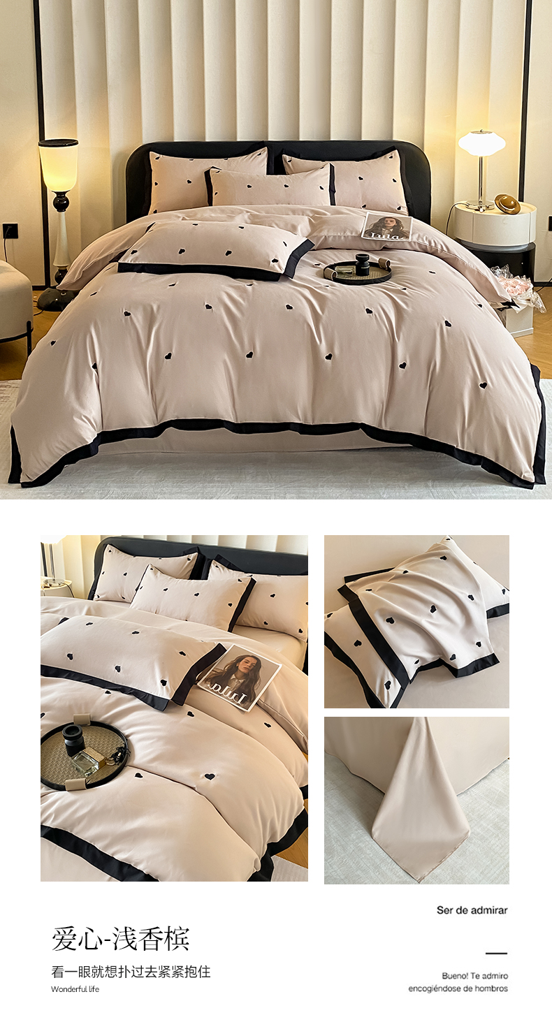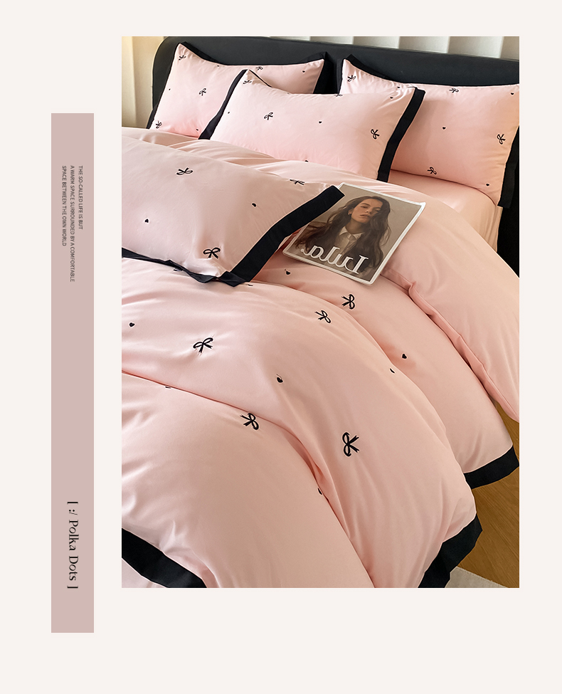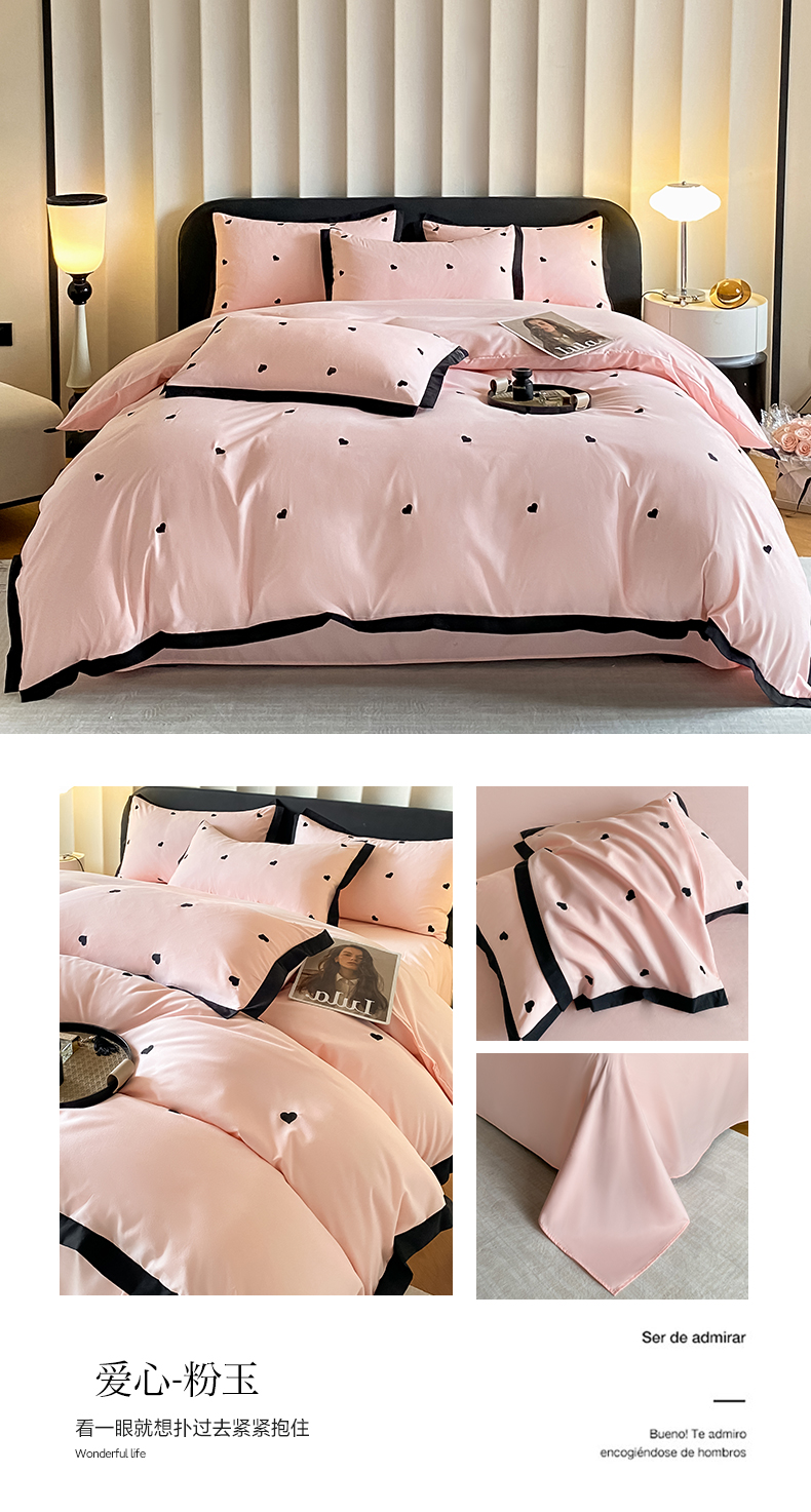 米彩家纺 2025新款水洗磨毛四件套-蝴蝶结爱心系列 爱心粉玉