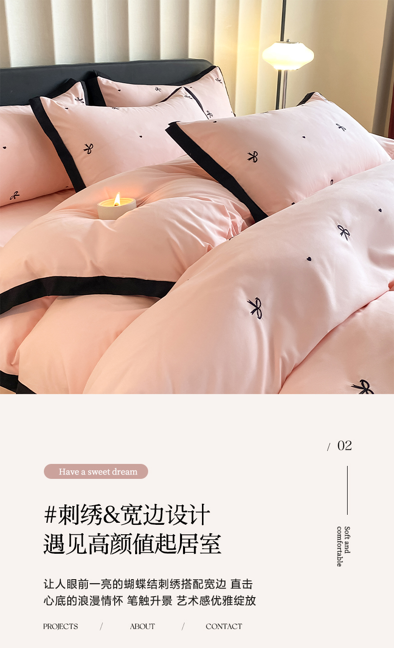 商品名称:米彩家纺 2025新款水洗磨毛四件套-蝴蝶结爱心系列 爱心粉玉