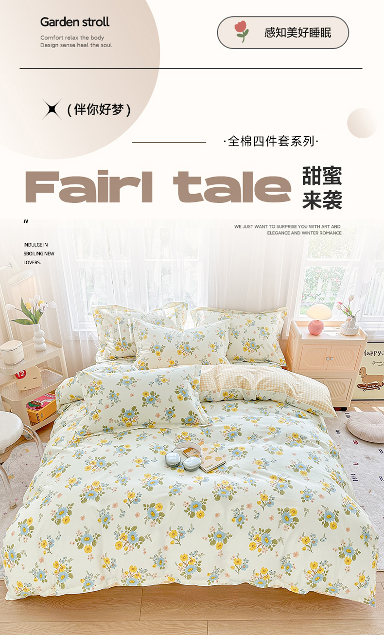 当前位置: 91家纺网 > 商品网购 > 床品套件 > 四件套 > 全棉普通四件套 > 金盛纺 2025新款13372全棉系列四件套 冷露金桂