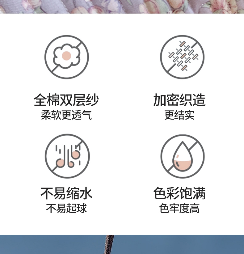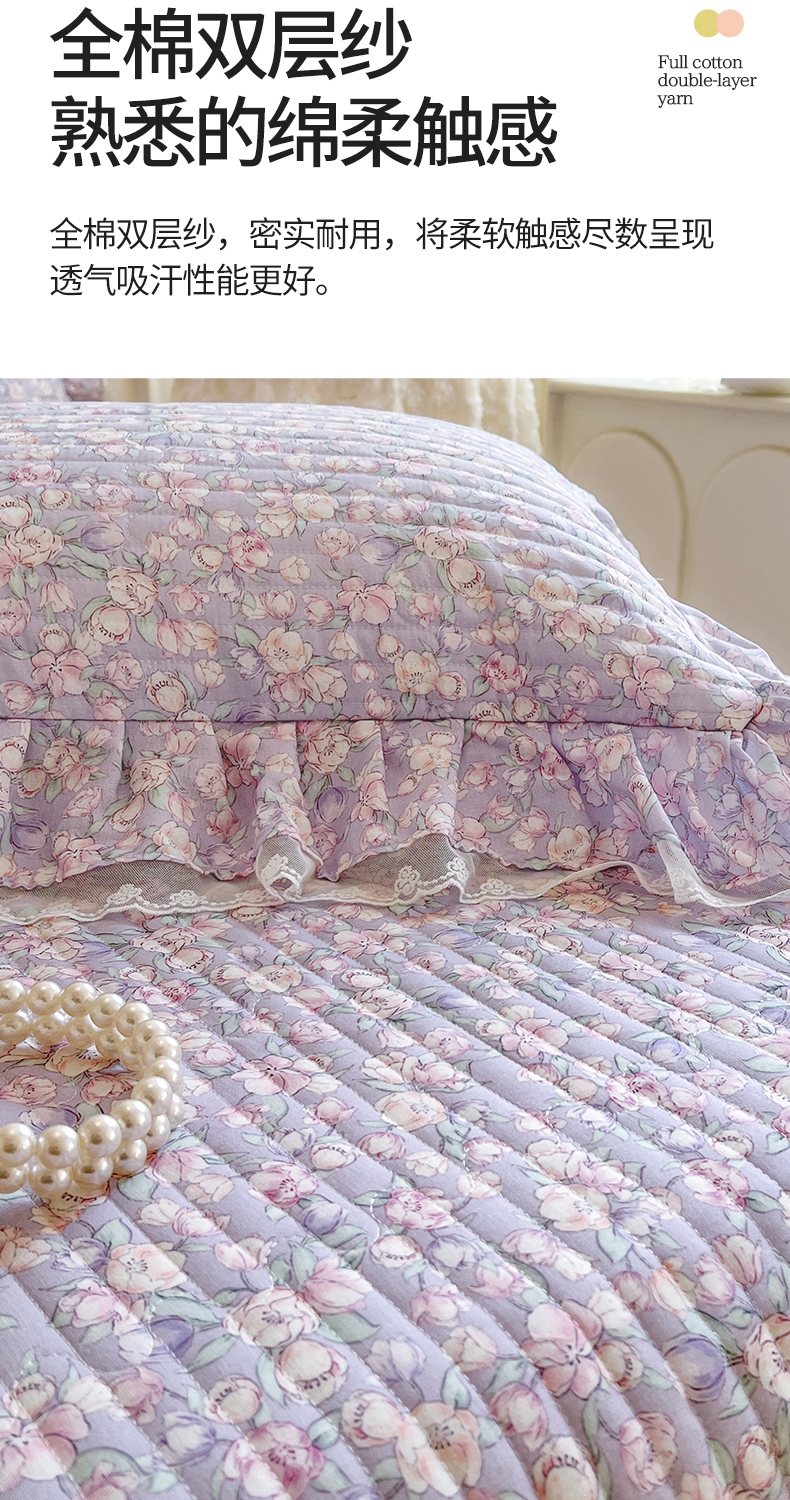 商品名称:麒豆豆 2025新款全棉印花双层纱床盖 芳草悠悠