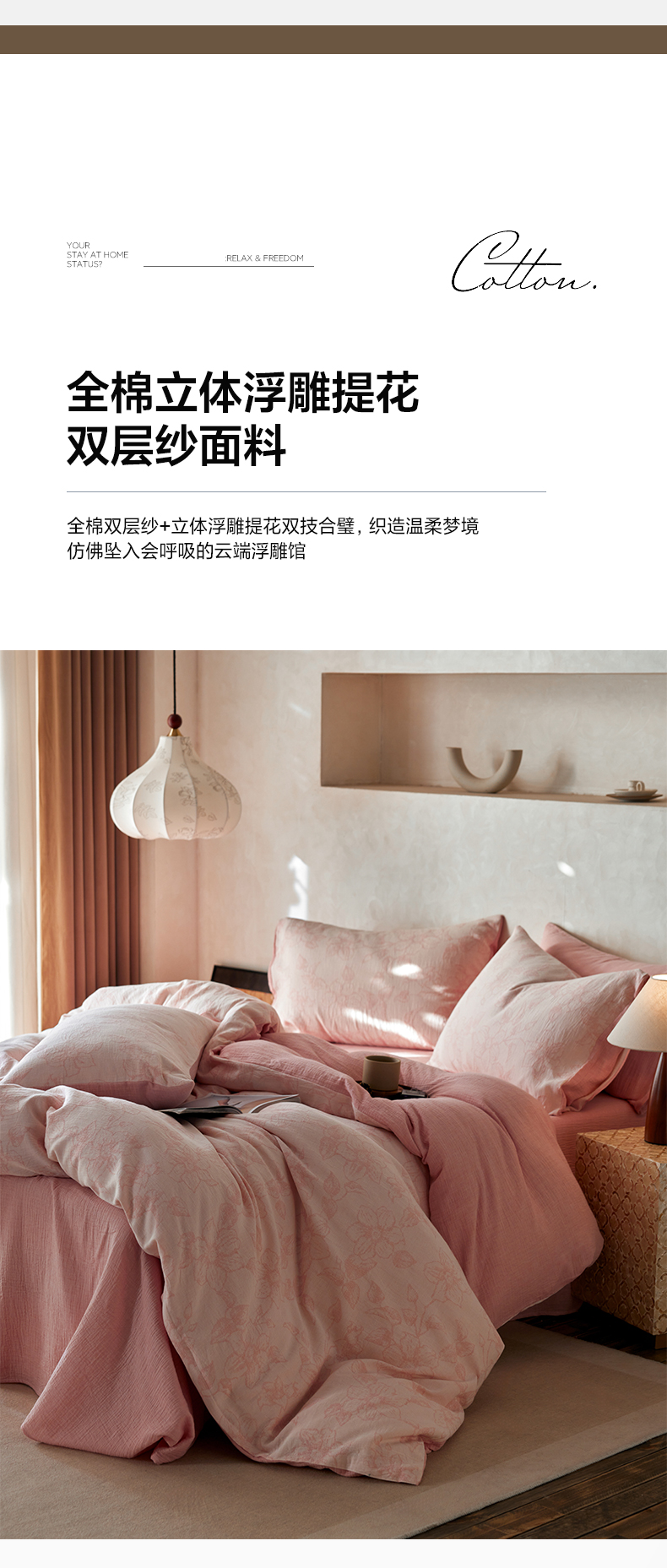 当前位置: 91家纺网 > 商品网购 > 床品套件 > 四件套 > 双层纱四件套 > 艾咪 新款全棉立体浮雕提花双层纱四件套 莫尼特-粉