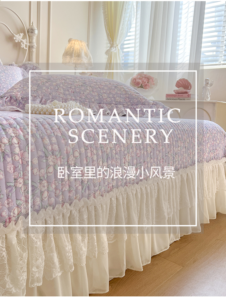 (总)网红馆(ck家纺) 2025新款亲肤舒适牛奶绒蕾丝边床裙四件套-秘密花园,秘密花园-粉色,秘密花园-卡其,秘密花园-米色,秘密花园-紫色