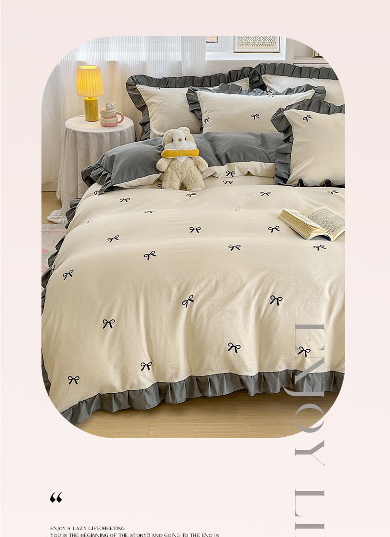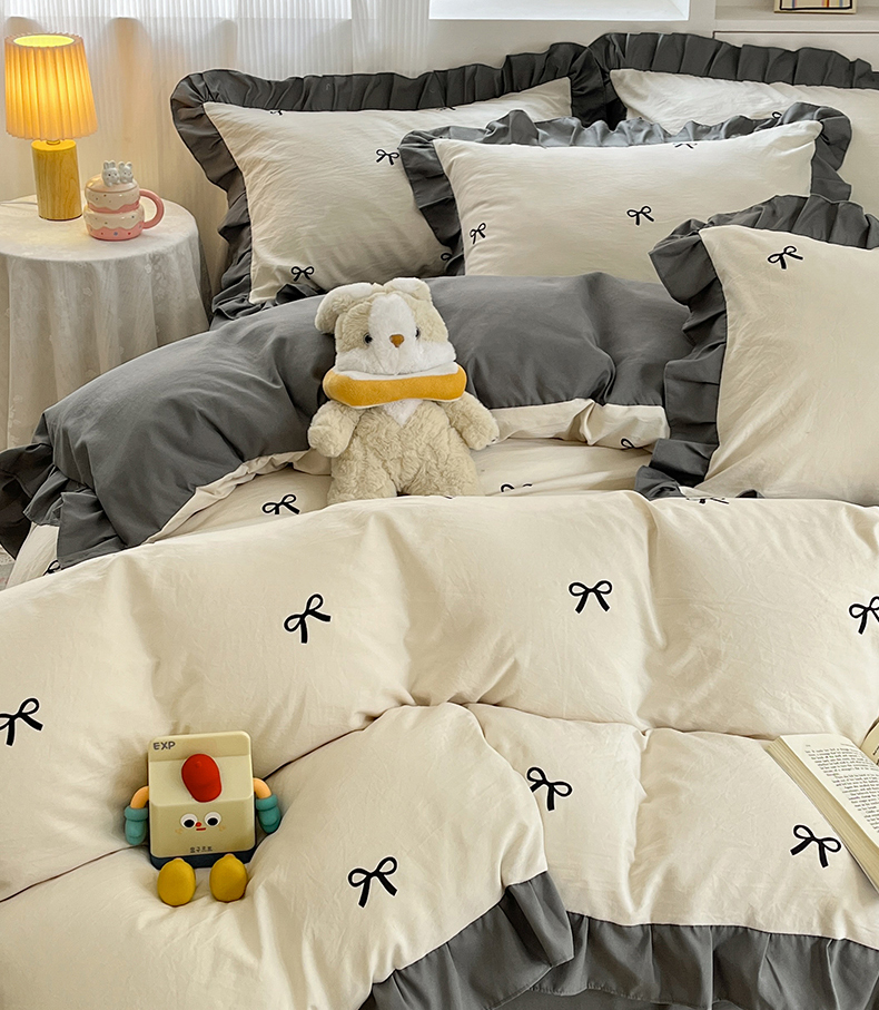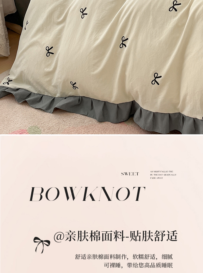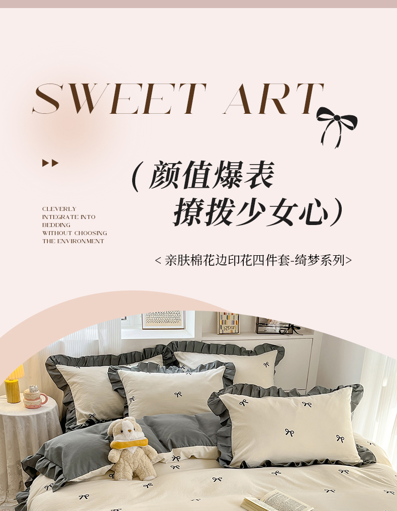 当前位置: 91家纺网 > 商品网购 > 床品套件 > 四件套 > 普通磨毛四件套 > 苏源家纺2025新款 公主风荷叶边亲肤棉磨毛四件套 绮梦-米白+灰