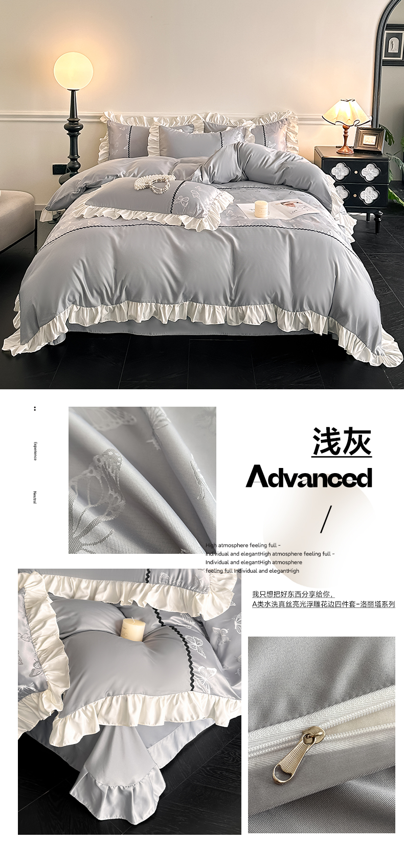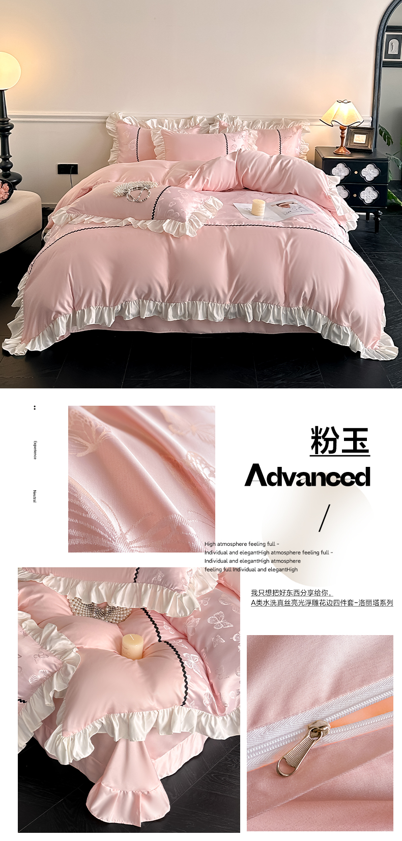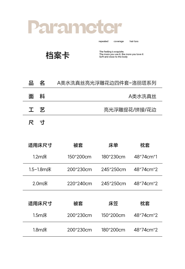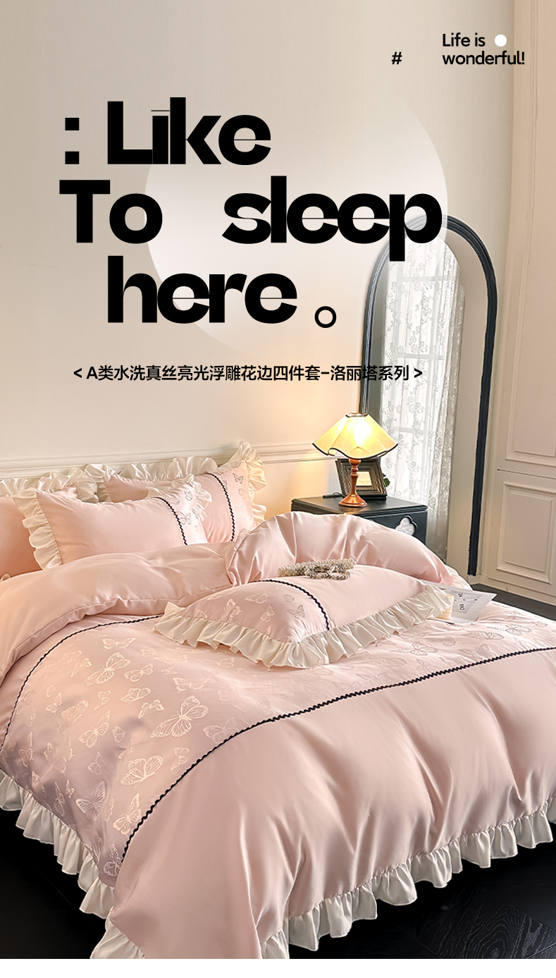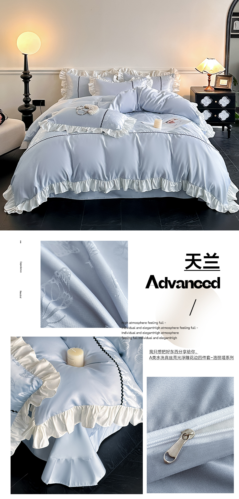 商品名称:(总)米彩家纺 2025新款A类水洗真丝亮光浮雕花边四件套