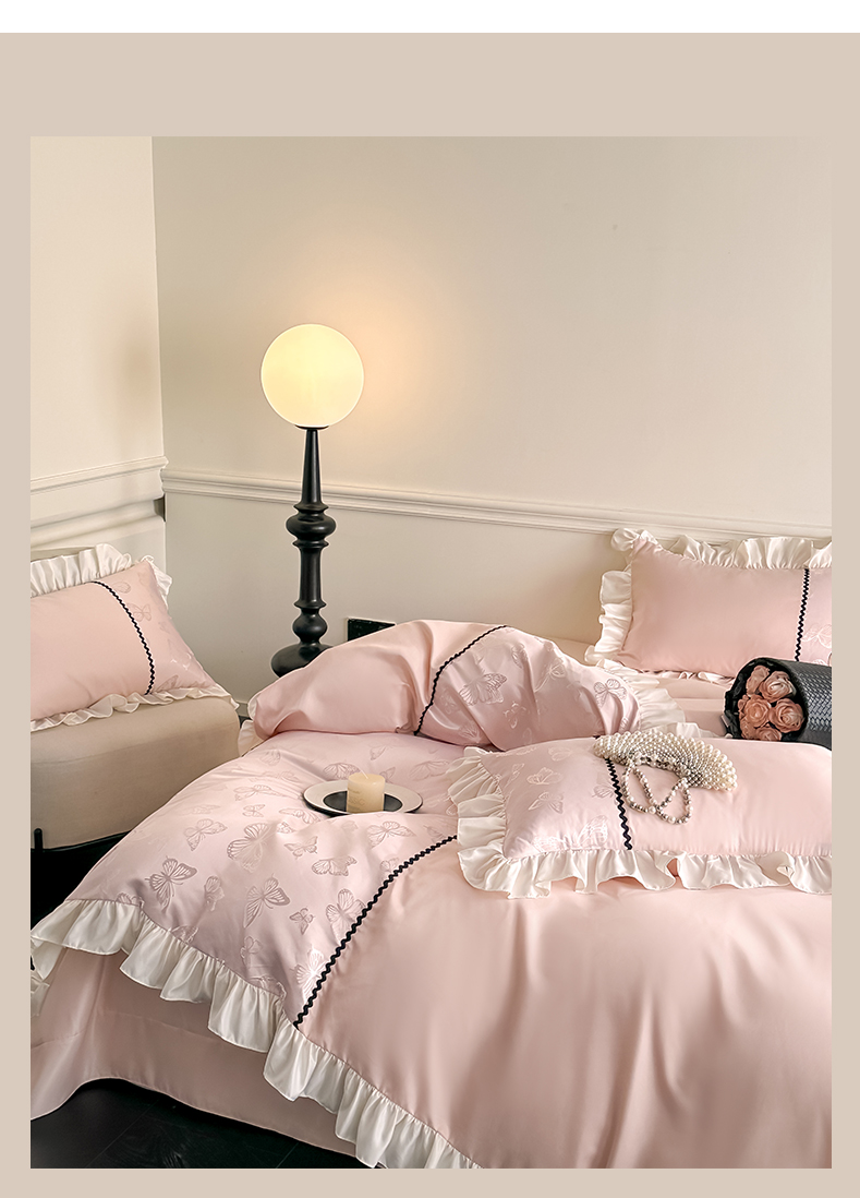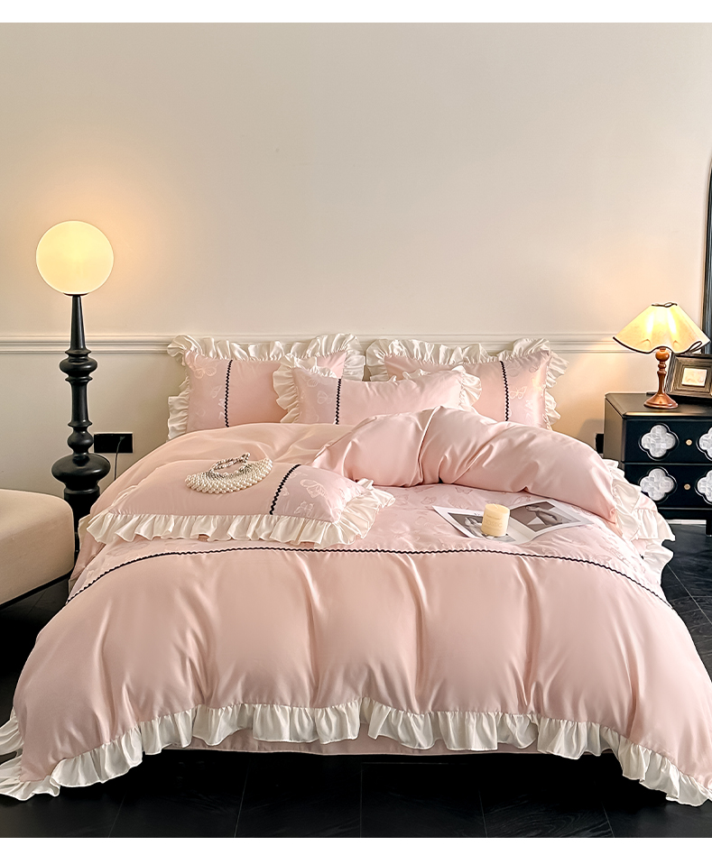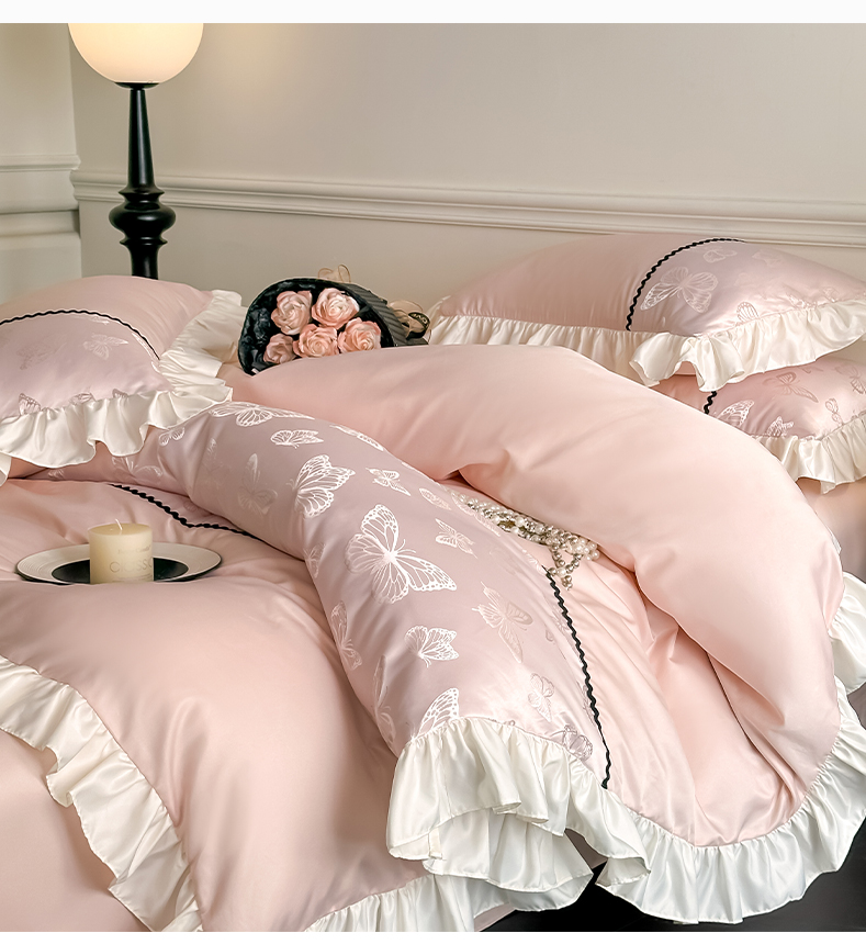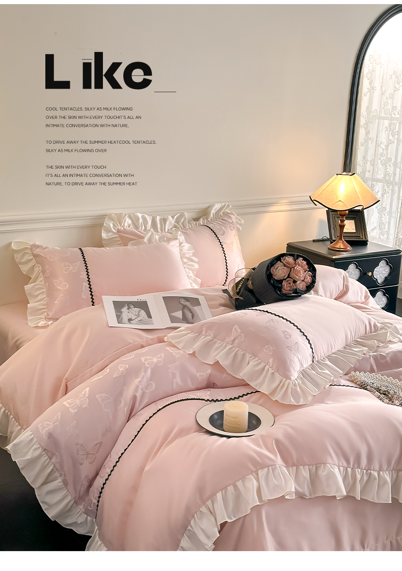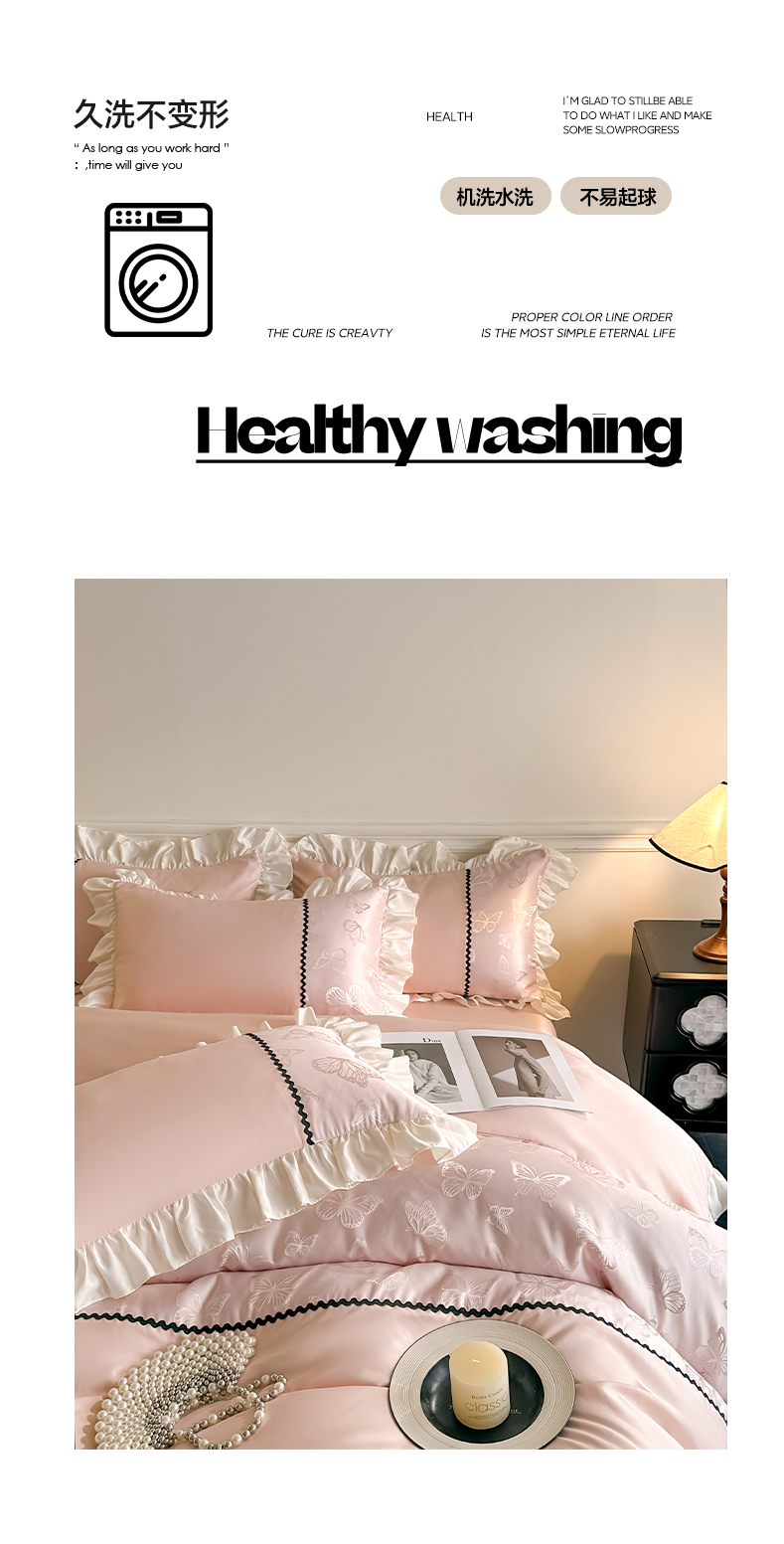 商品名称:(总)米彩家纺 2025新款A类水洗真丝亮光浮雕花边四件套