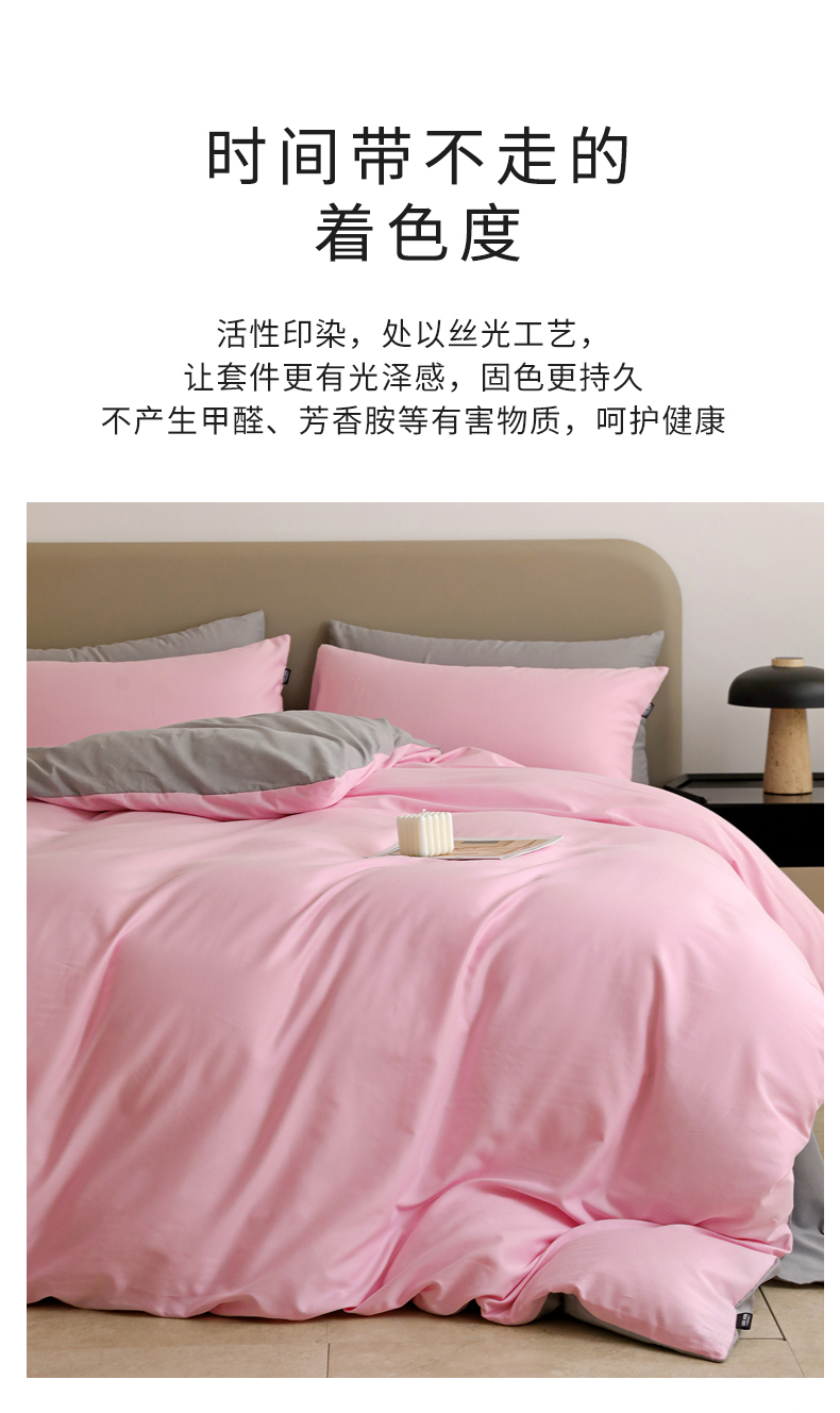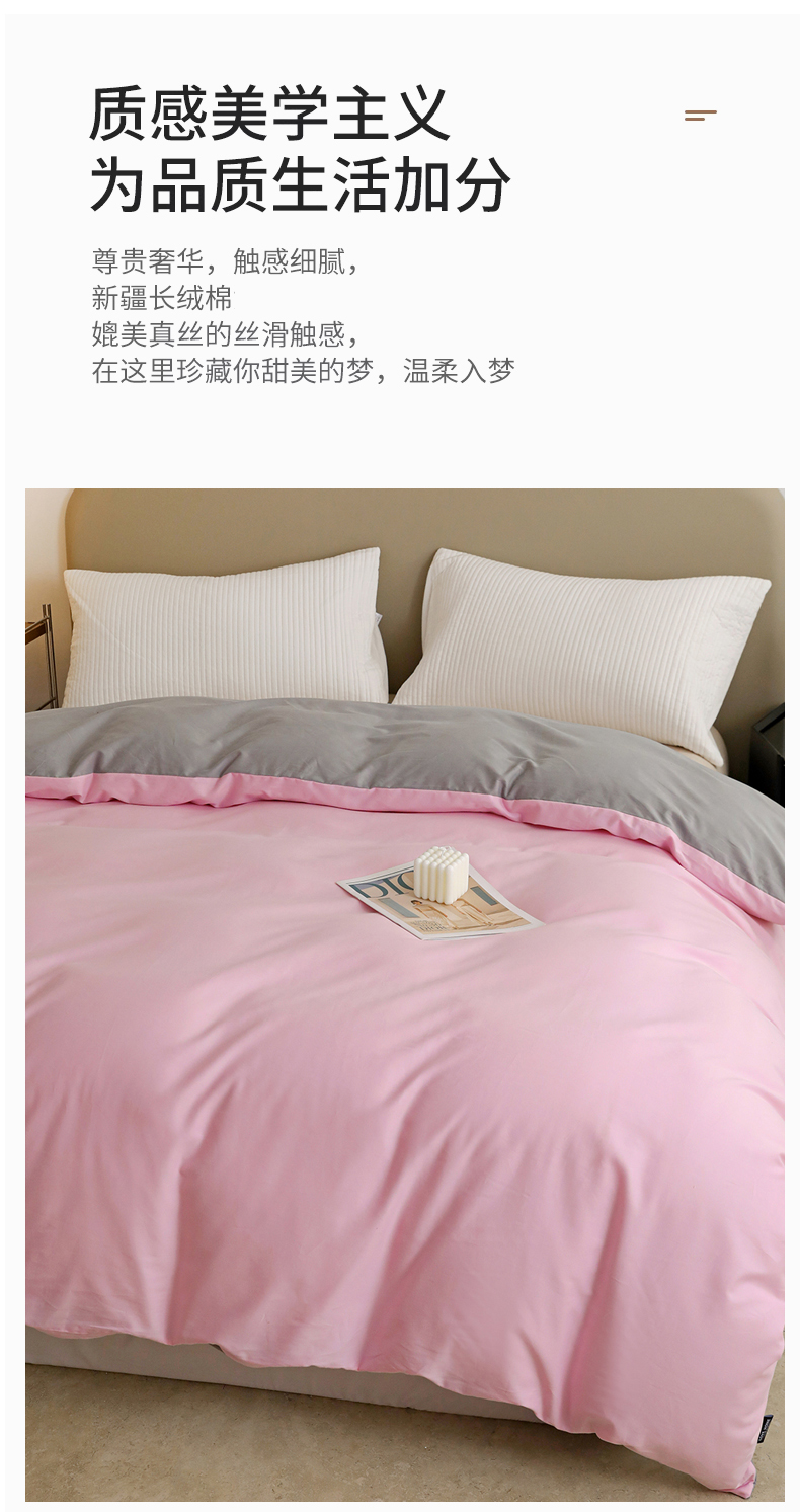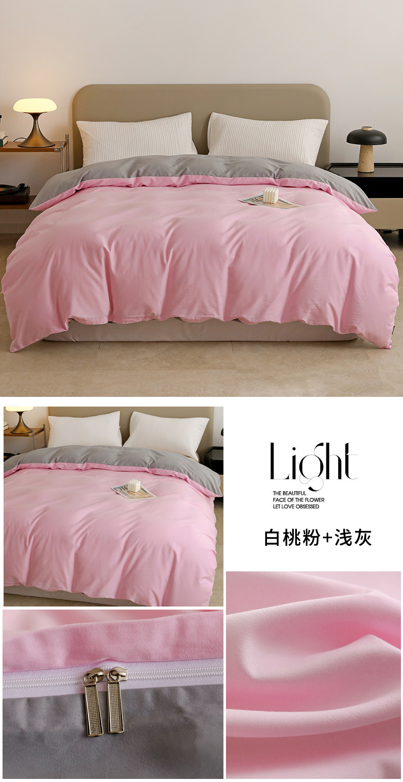 2025年纯色双拼60支纯棉被套 白桃粉+浅灰