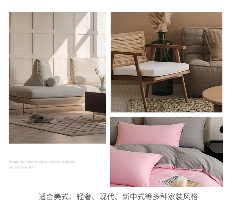 • 91家纺网 家纺一手货源 找家纺 2025年纯色双拼60支纯棉被套 白桃粉+浅灰