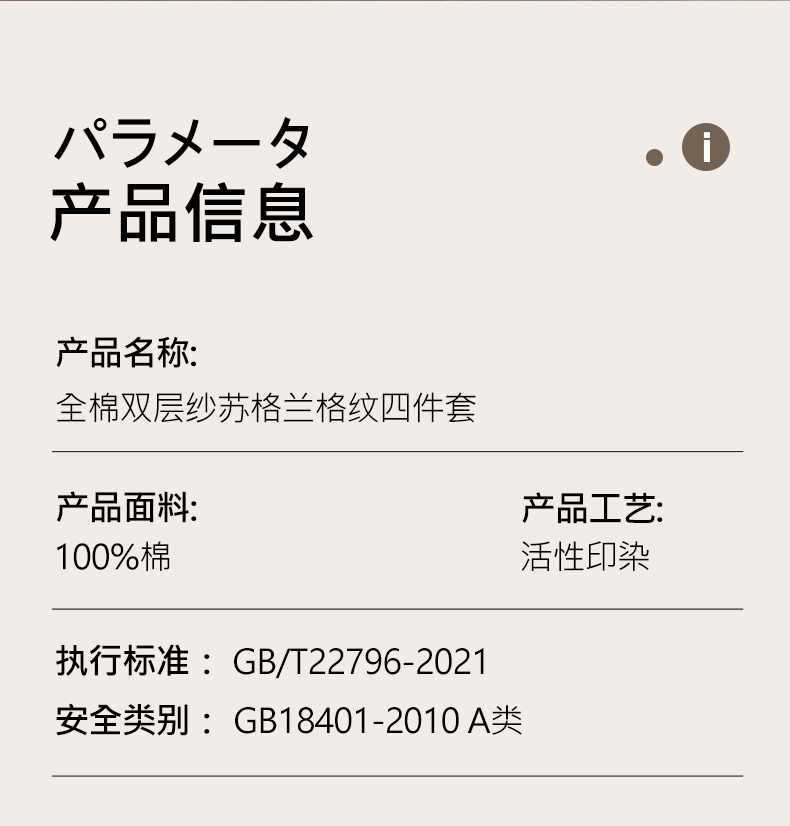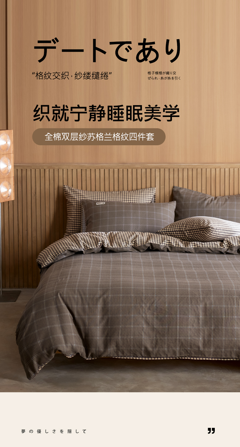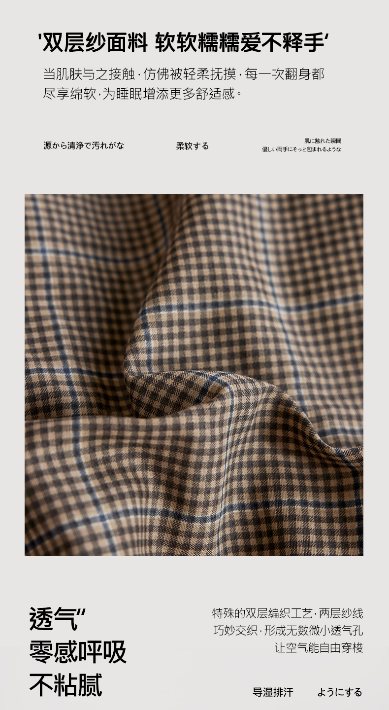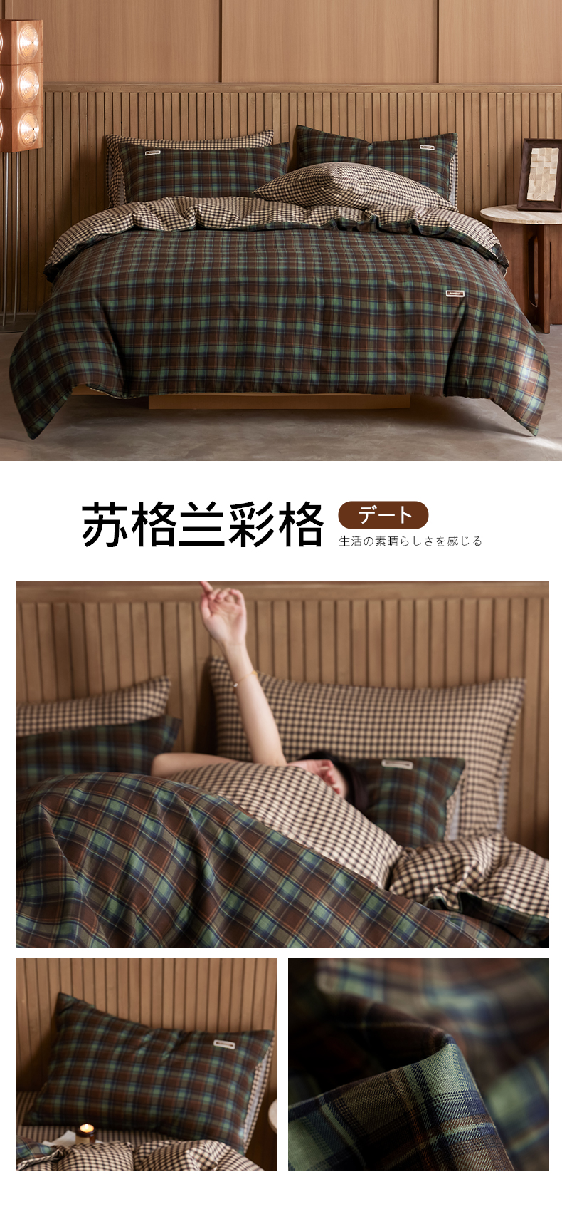 商品名称:安莱生活 2025 全棉双层纱苏格兰格纹系列四件套 格林格