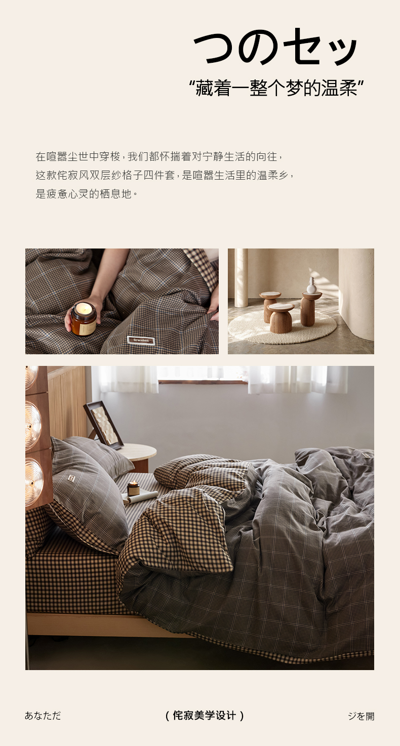 安莱生活 2025 全棉双层纱苏格兰格纹系列四件套 格林格