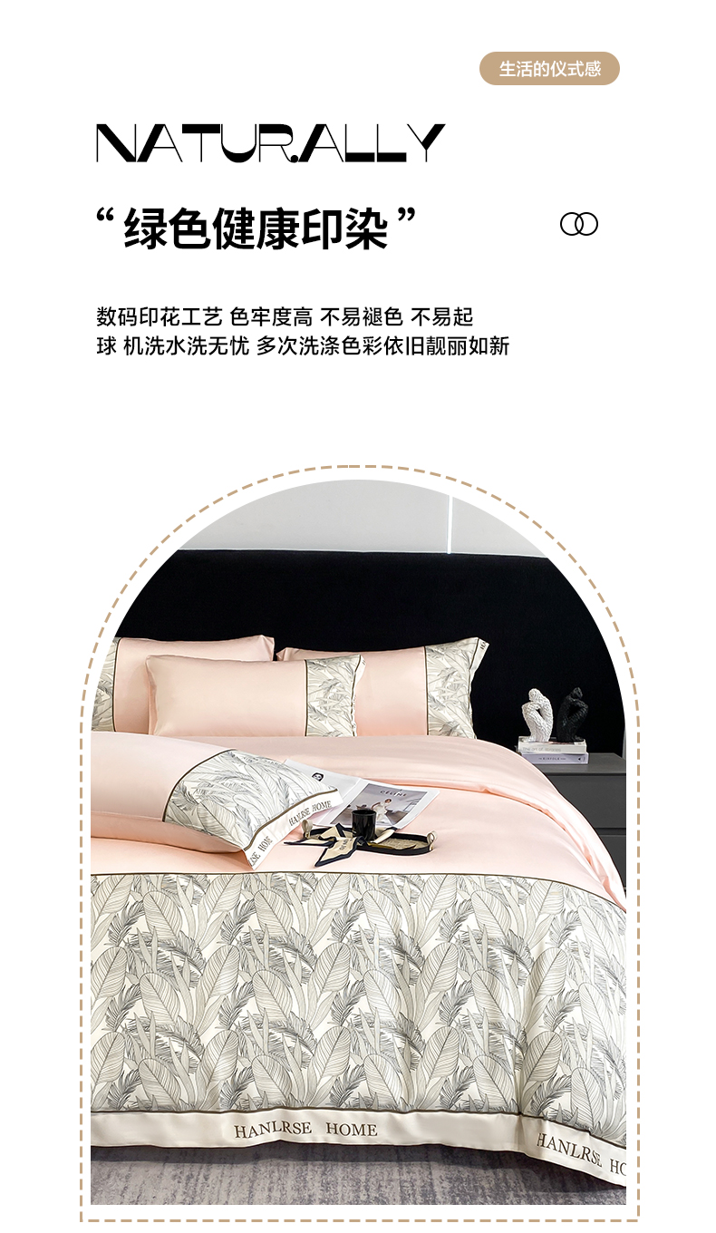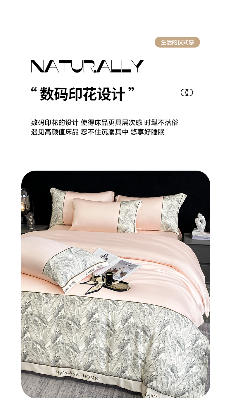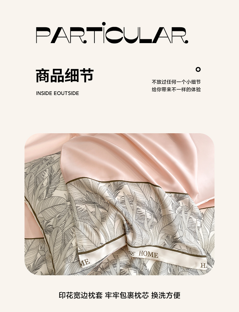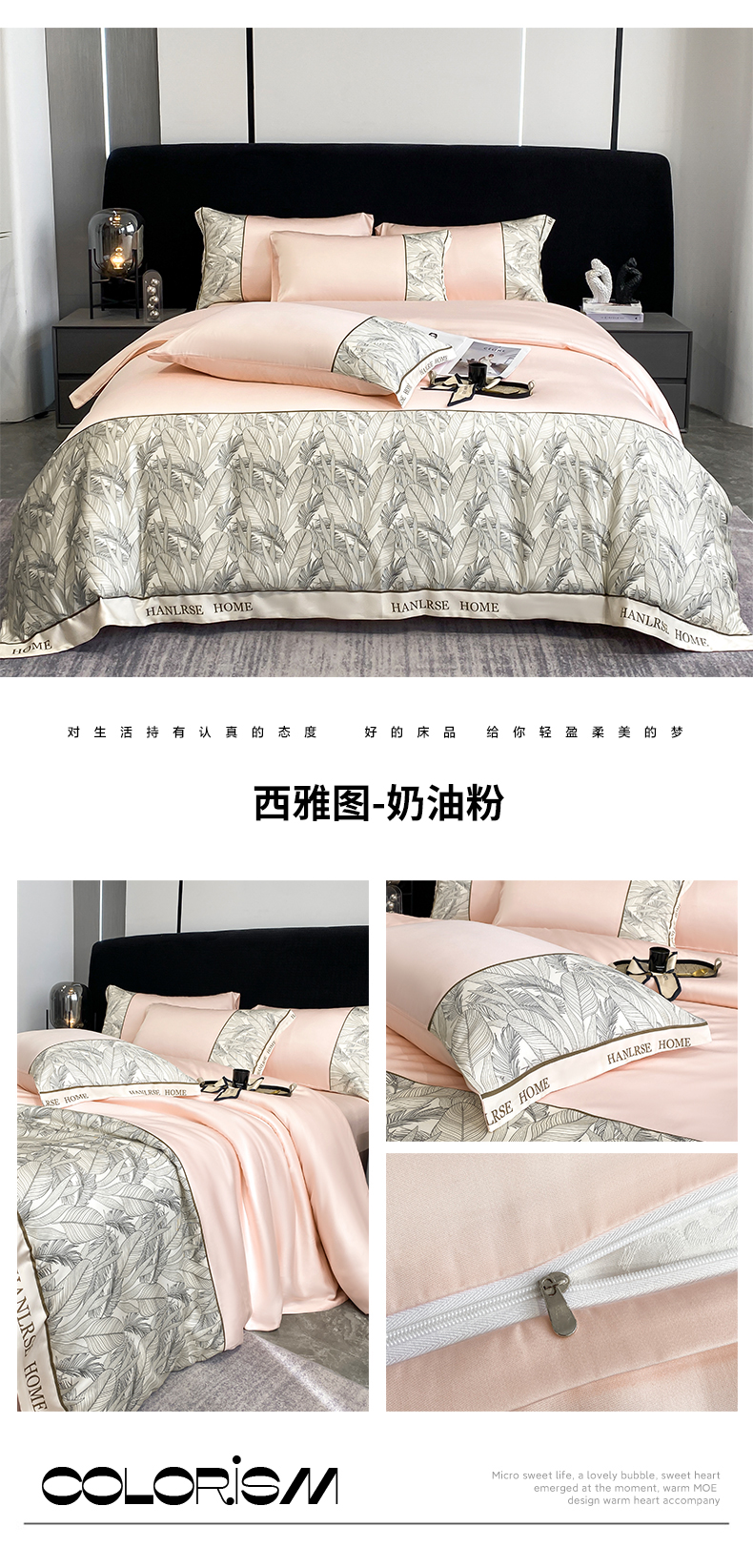商品名称:花愿(原花纪) 2025新款水洗冰丝印花四件套 西雅图 奶油粉