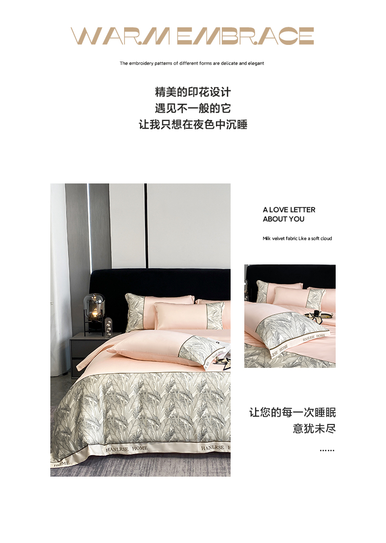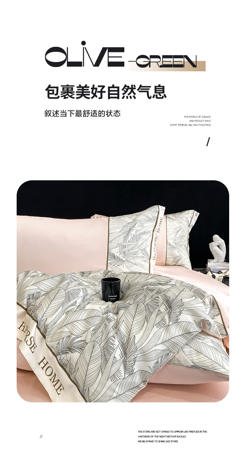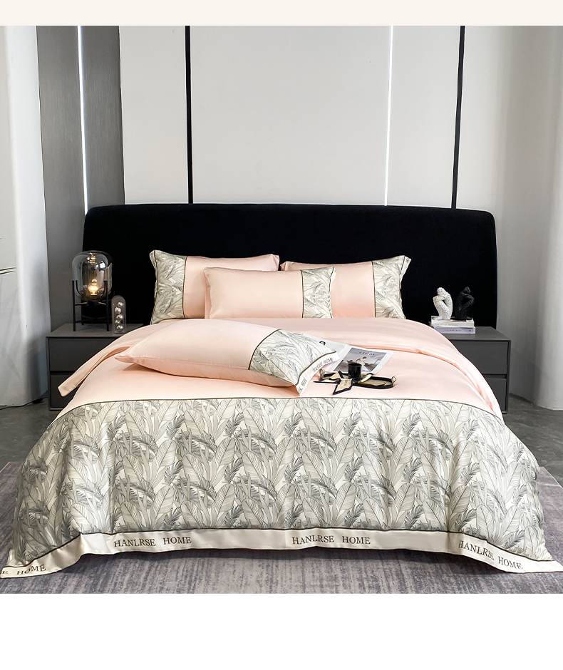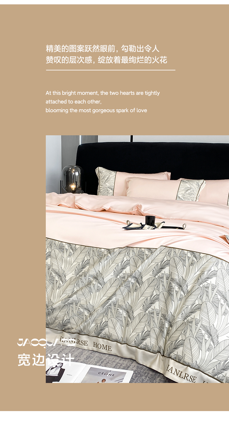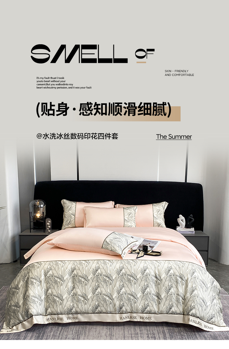 商品名称:花愿(原花纪) 2025新款水洗冰丝印花四件套 西雅图 奶油粉