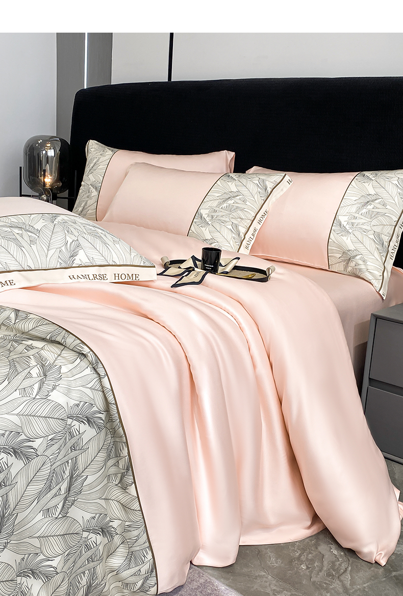花愿(原花纪) 2025新款水洗冰丝印花四件套 西雅图 奶油粉