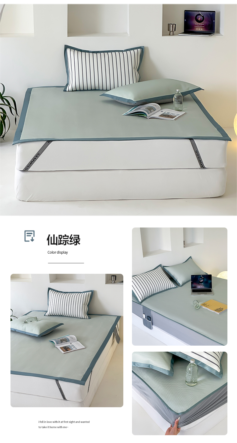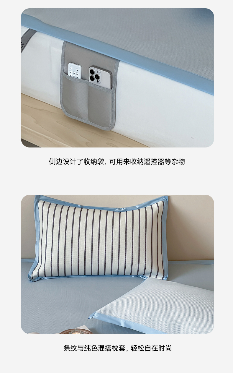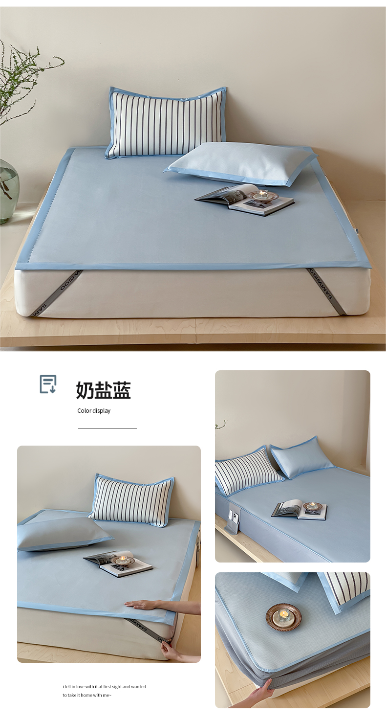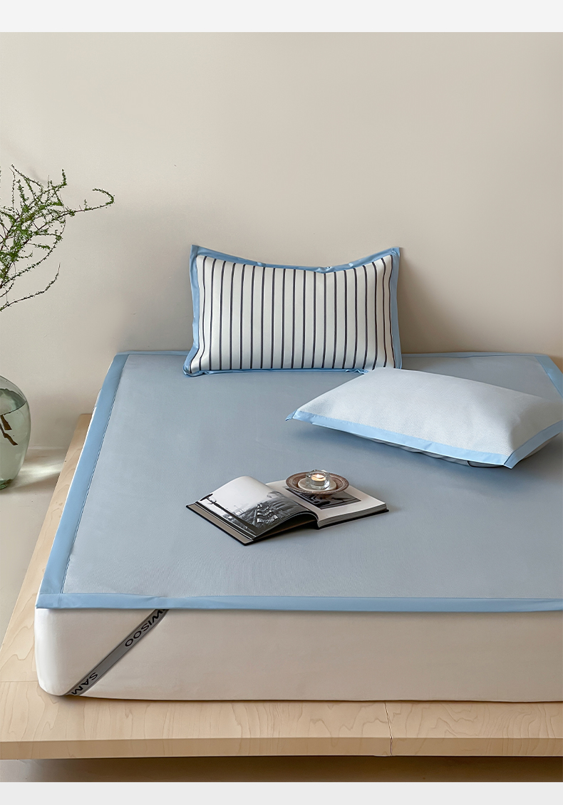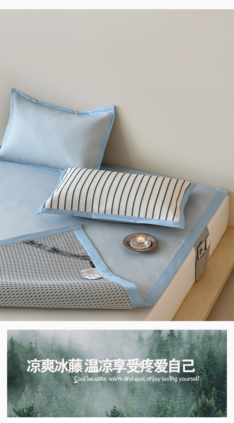 商品名称:三味舒屋 2025新款韩风简约抗菌防螨900D高端养生冰藤席 床笠 奶盐蓝