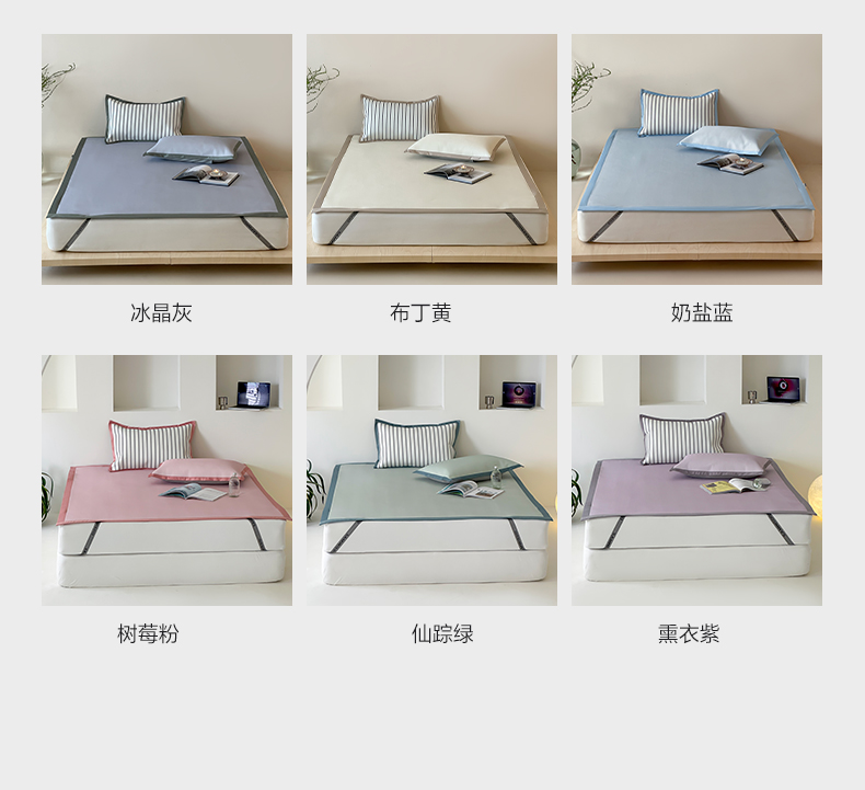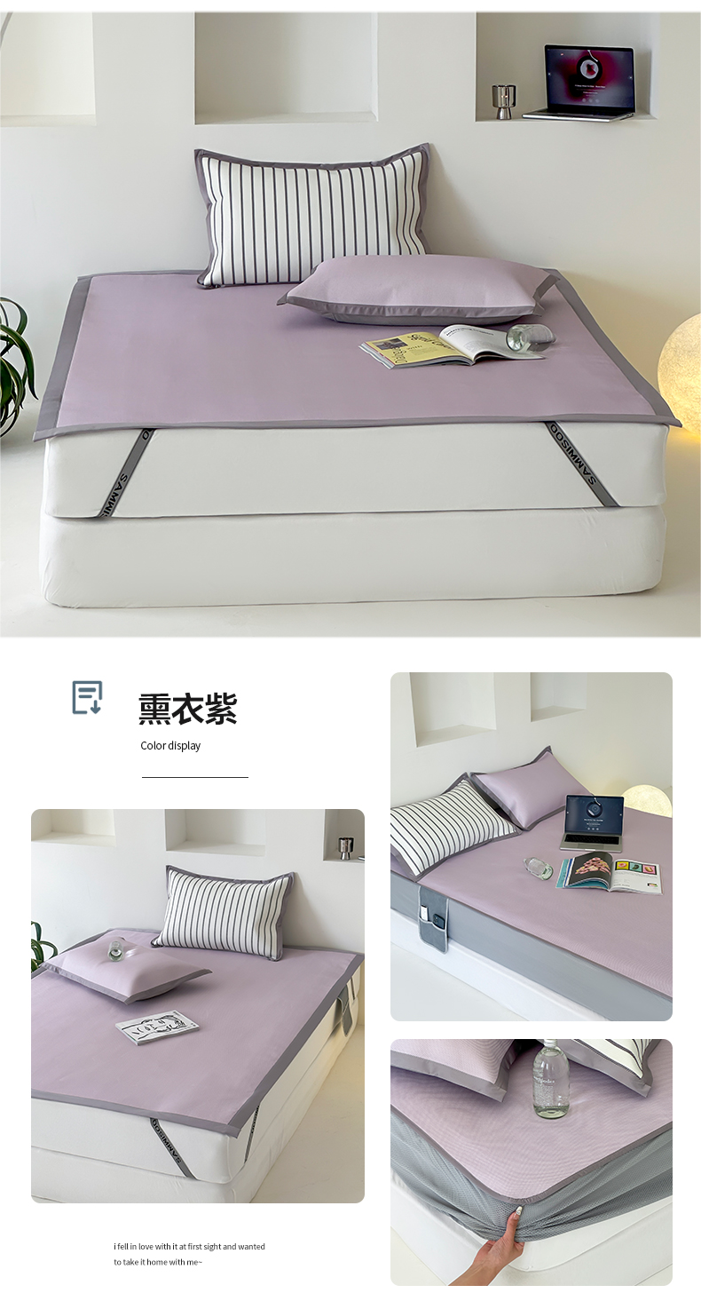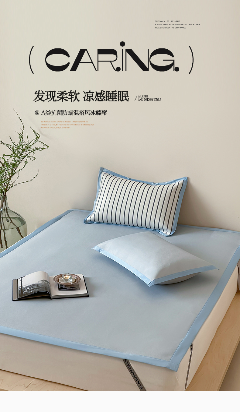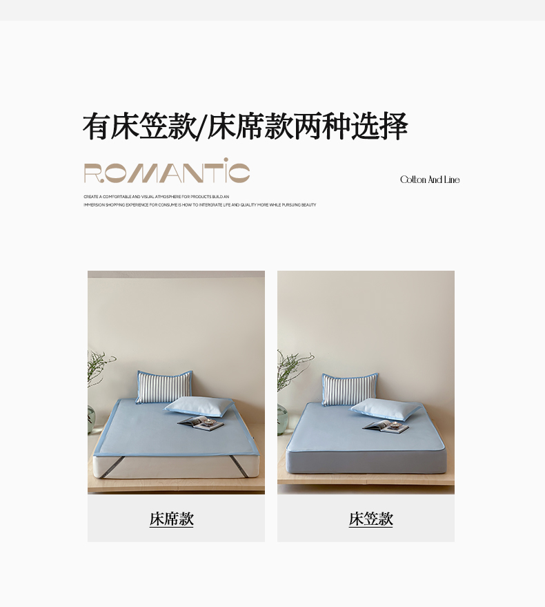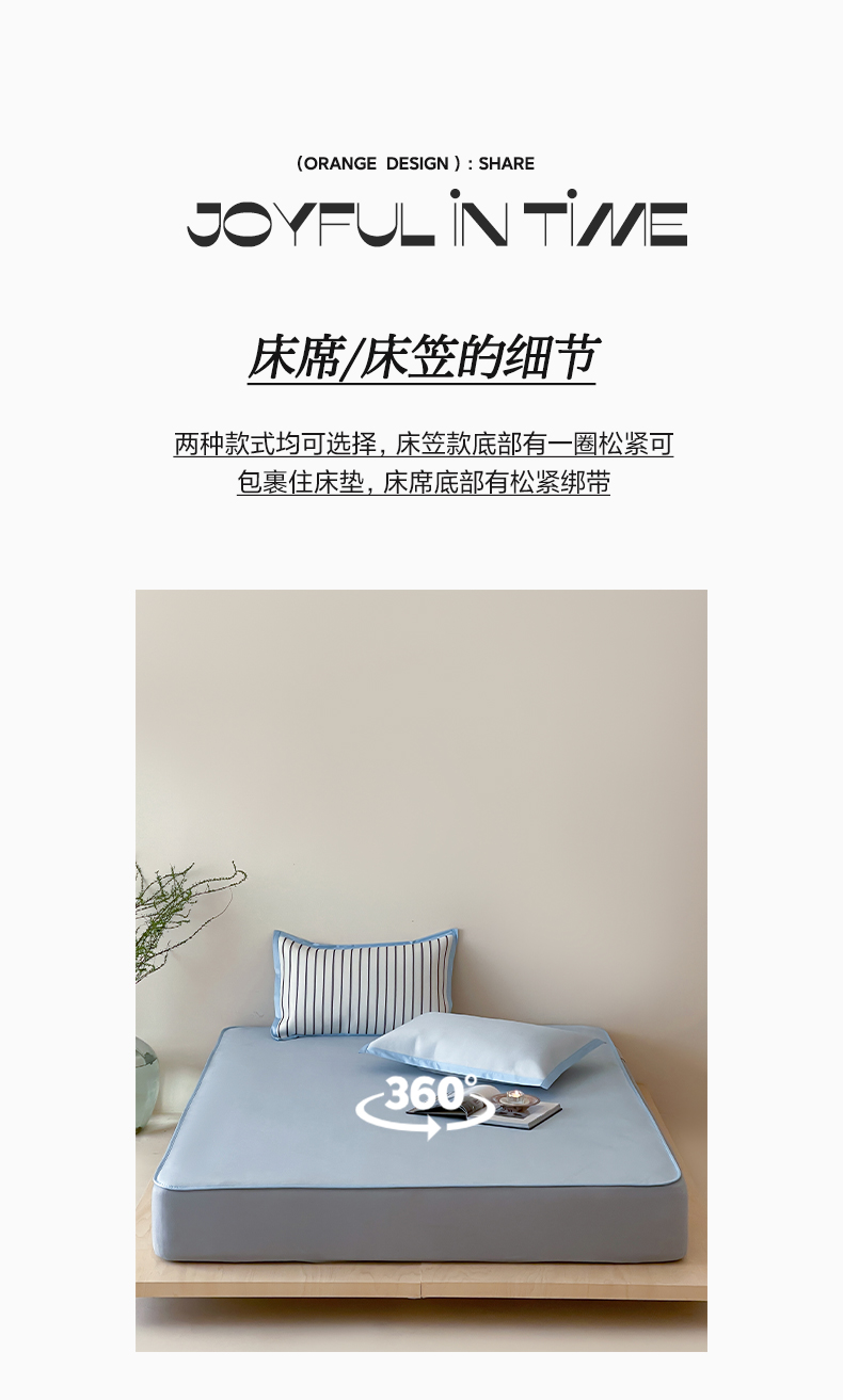 商品名称:三味舒屋 2025新款韩风简约抗菌防螨900D高端养生冰藤席 床笠 奶盐蓝