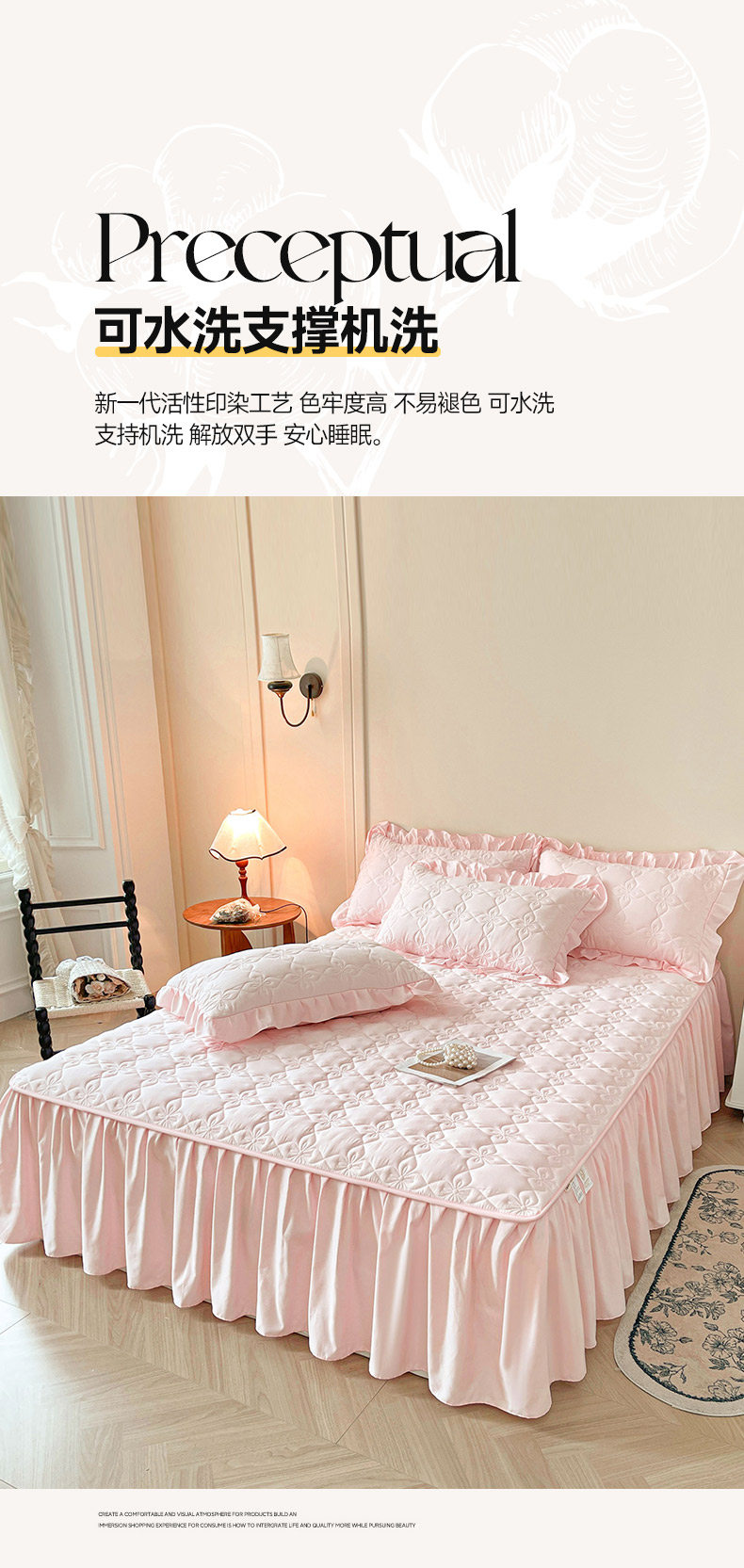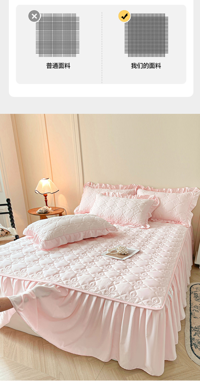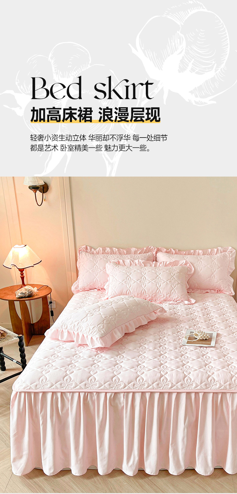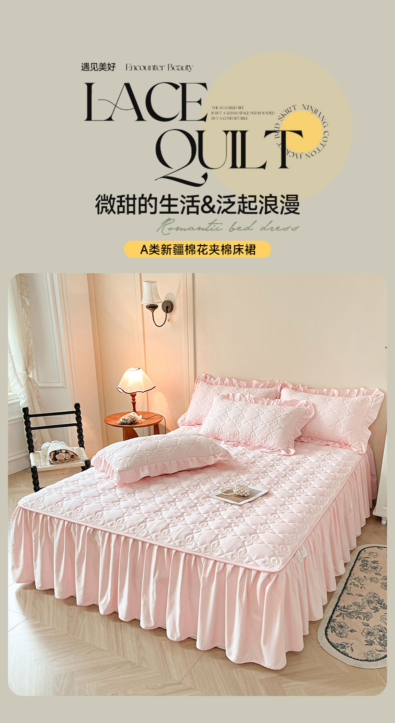 予梦家纺 2025新款A类100%新疆棉花夹棉床裙 100%新疆棉花床裙-桃花粉