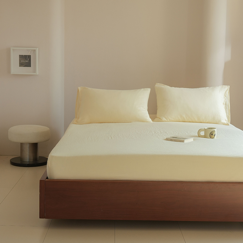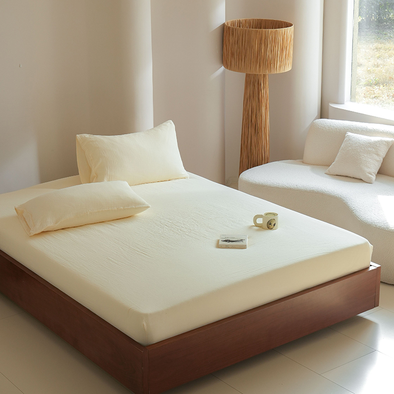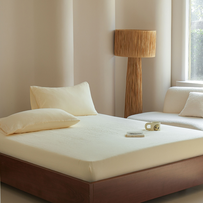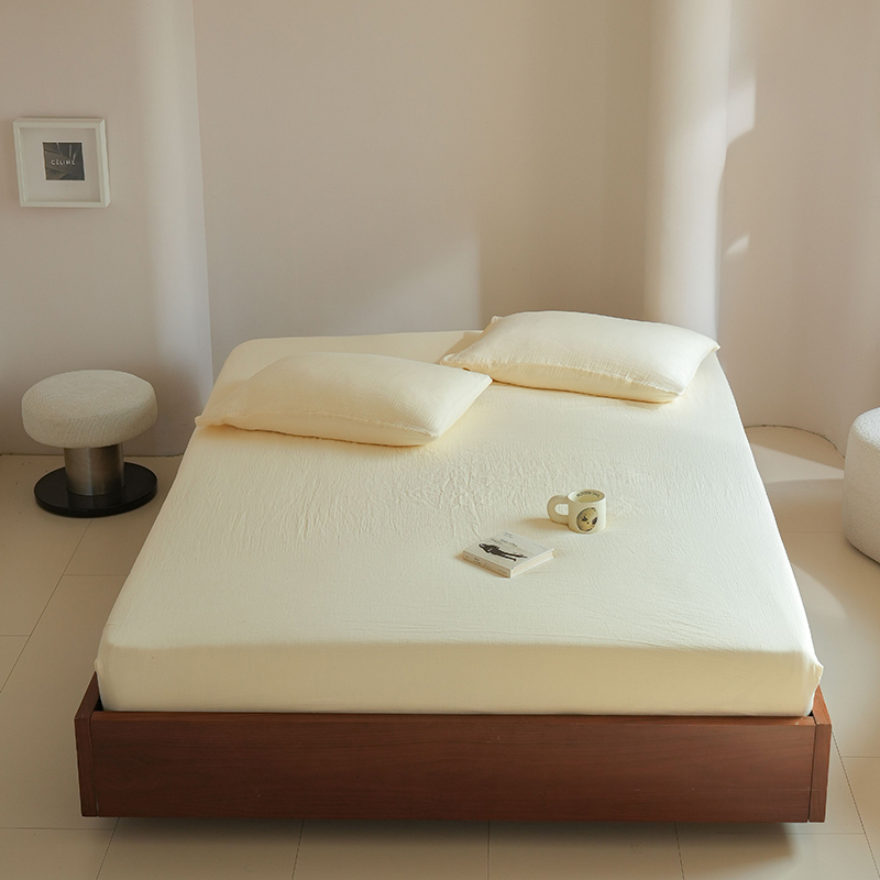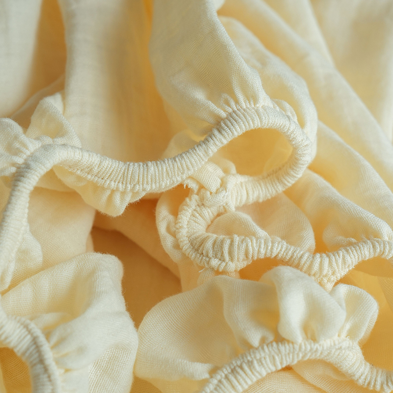 简纯主义 2025新款全棉有机雾感纱双层皱皱纱系列单床笠奶酪